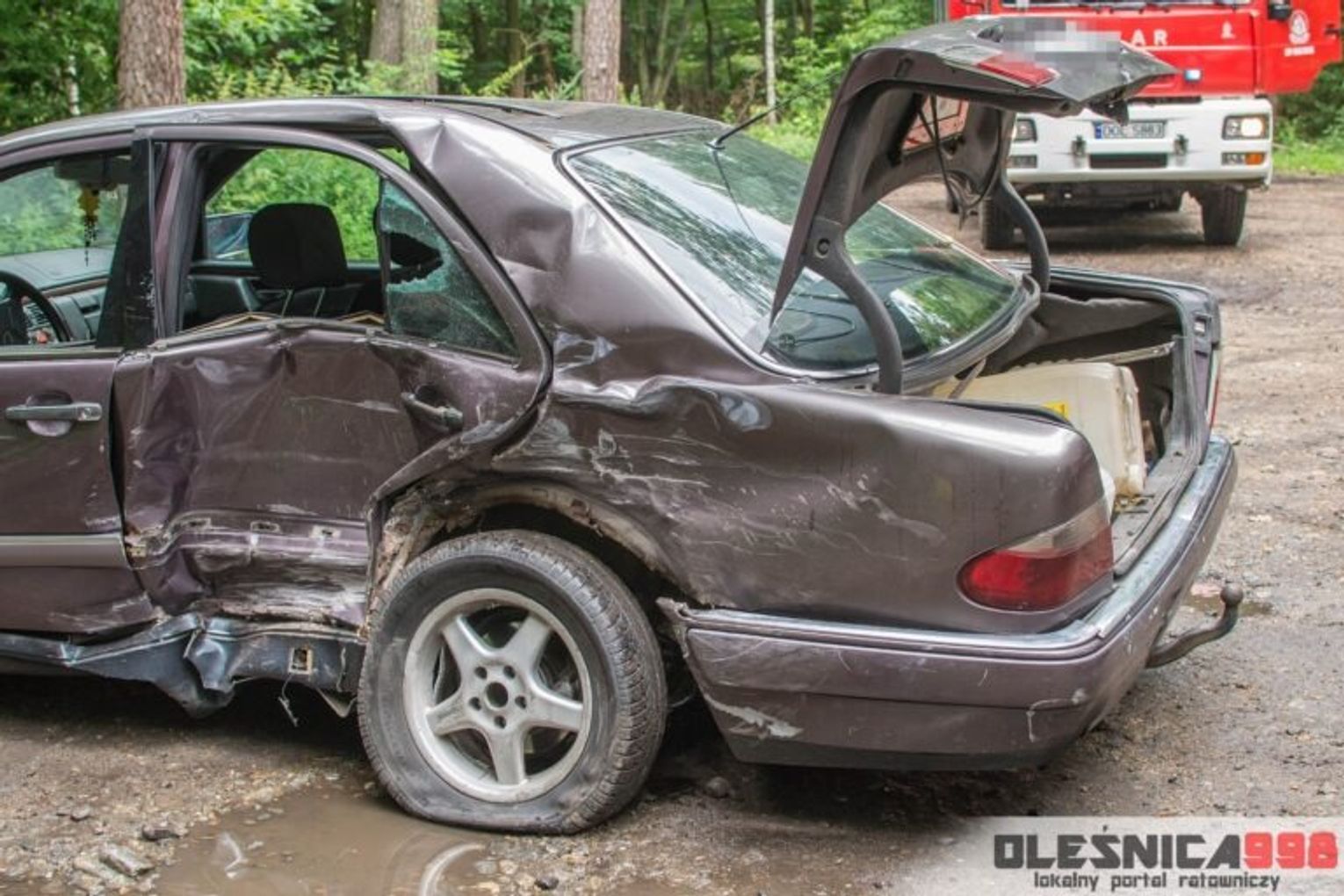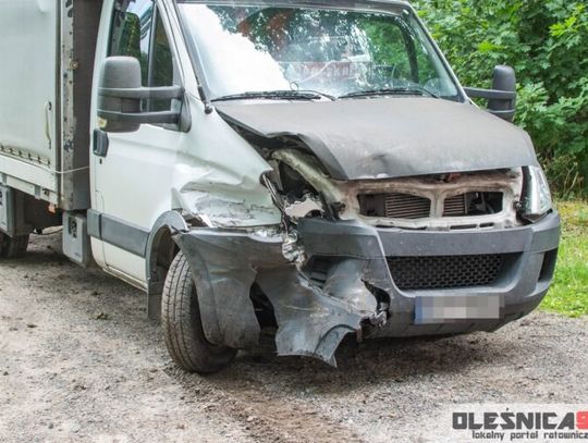 Jak podaje olesnica998.pl, 40-letni kierowca mercedesa nie zachował ostrożności podczas skrętu w lewo, w drogę leśną, w wyniku czego doprowadził do zderzenia bocznego z wyprzedzającym go iveco. Został ukarany mandatem.