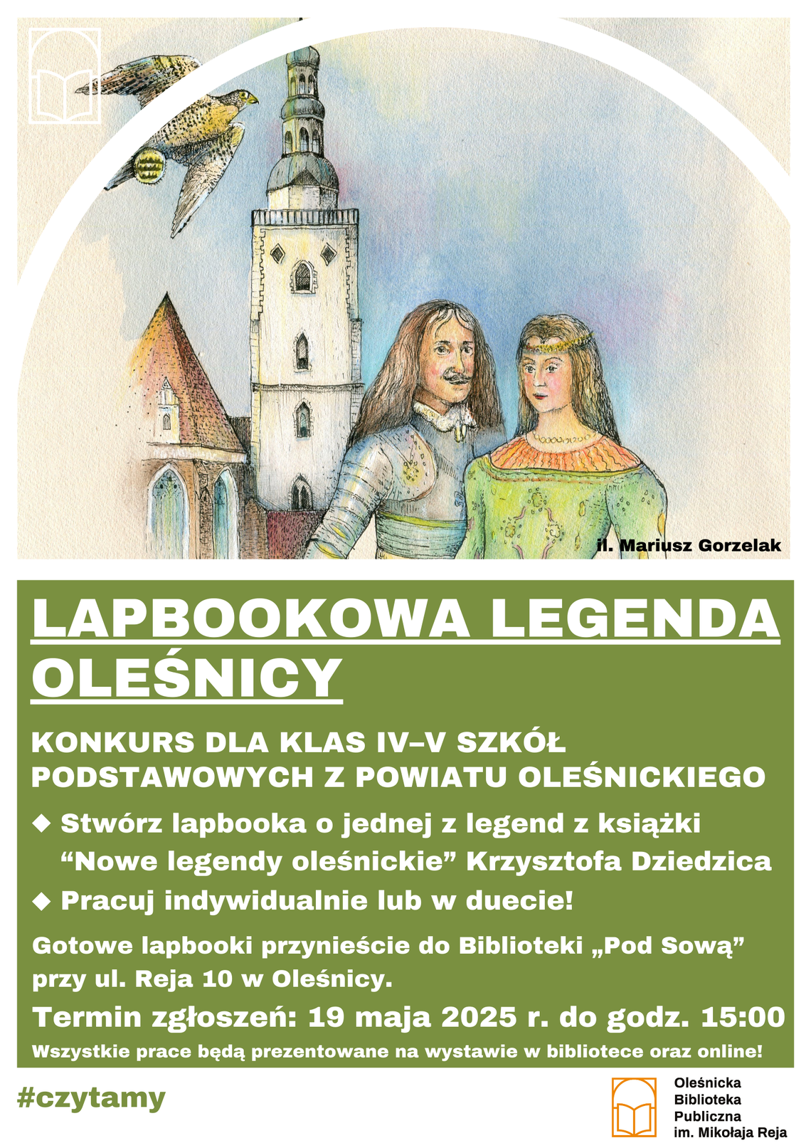 Zapraszamy do udziału w konkursie dla klas IV i V szkół podstawowych z powiatu oleśnickiego "Lapbookowa Legenda Oleśnicy" - Twórcza podróż do świata legend Krzysztofa Dziedzica.