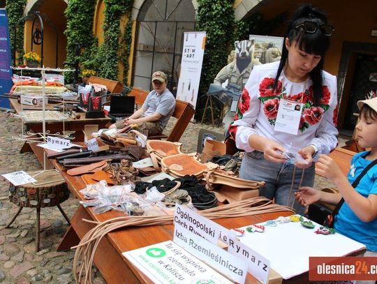 Na dziedzińcu zamkowym ustawiono około 10 rzemieślniczych stoisk. Jest właściciel Młyna Dobra Ireneusz Grela, jest dyplomowany oleśnicki rusznikarz Maciej Śmitkowski, jest stanowisko kowalskie, jest unikalny warsztat haftu artystycznego Krystyny Duchniak z Radomia.