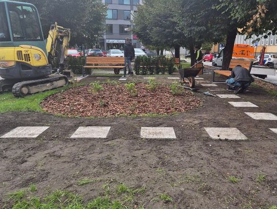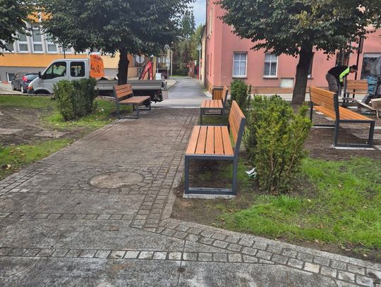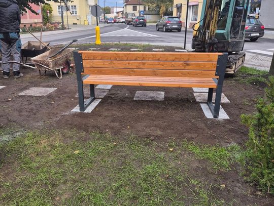 Aktualnie na małym skwerku trwa montaż długo oczekiwanych przez mieszkańców ławek i koszy na śmieci.