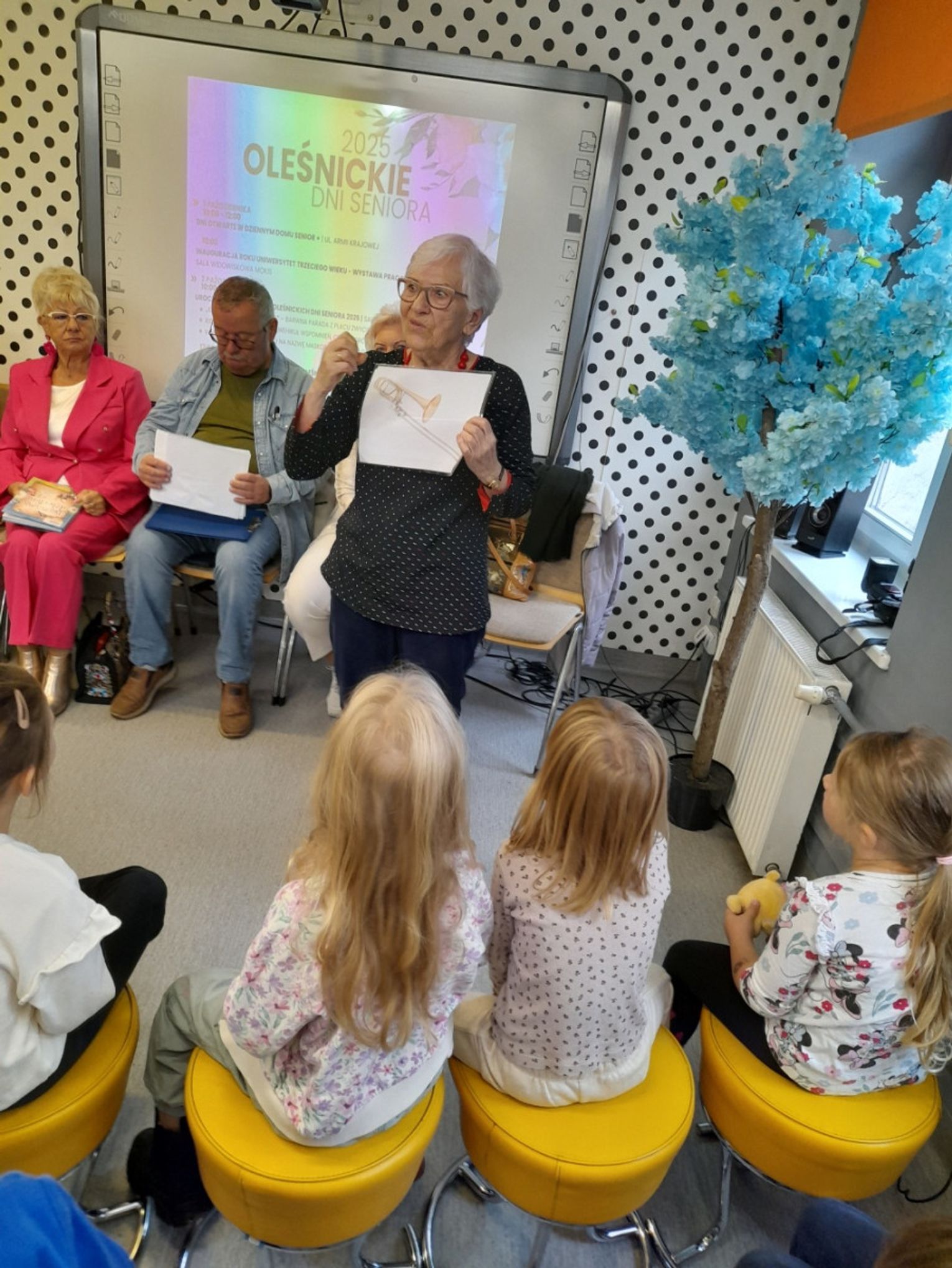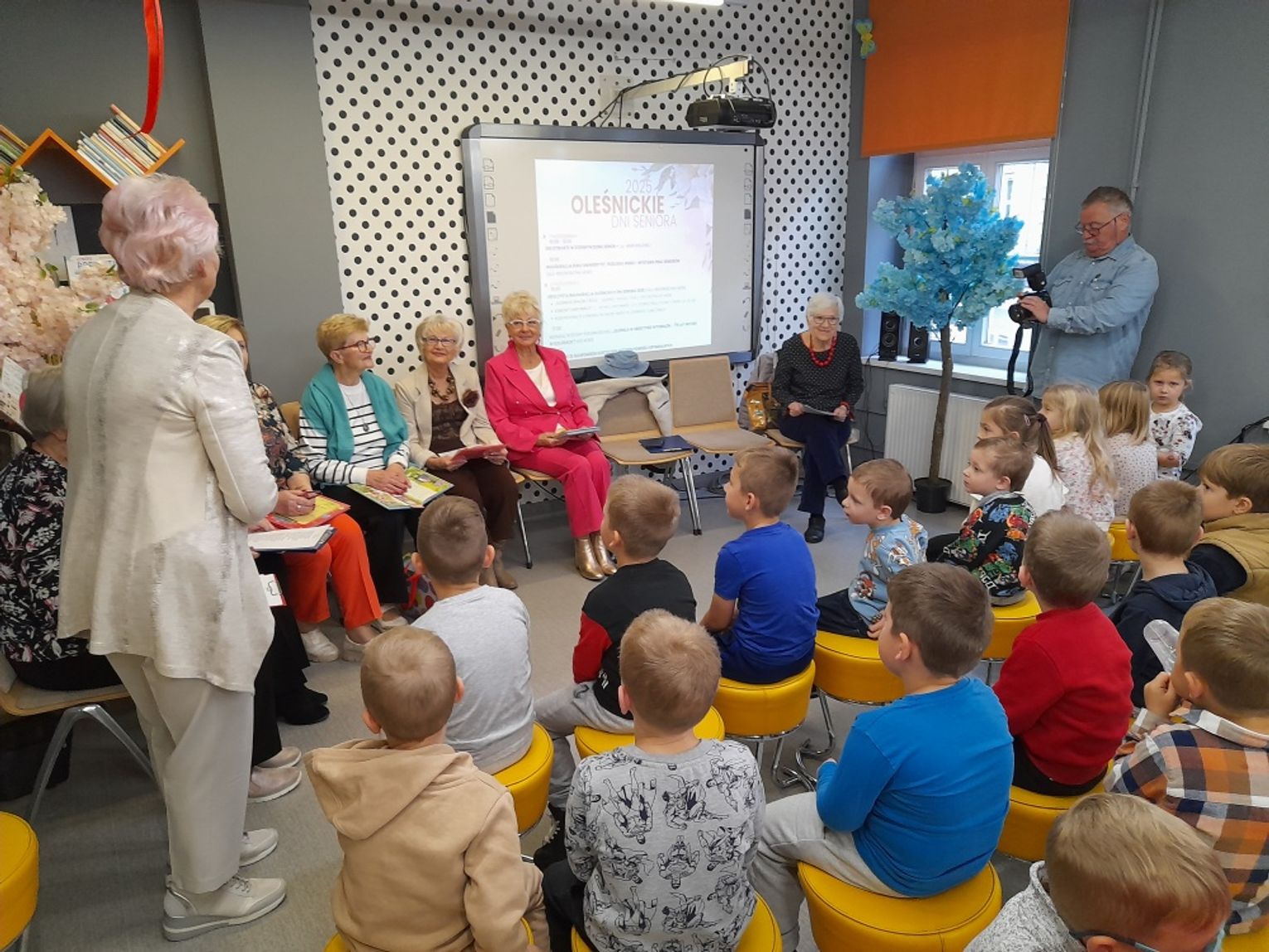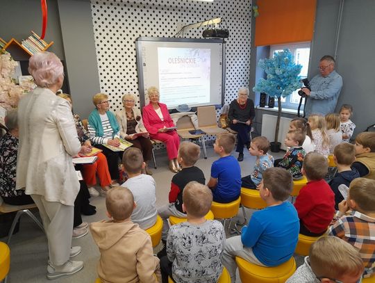 W ramach Oleśnickich Dni Seniora 2025 w Bibliotece dla Dzieci i Młodzieży "Pod Sową" odbyło się spotkanie czytelnicze seniorów z Oleśnickiego Uniwersytetu Trzeciego Wieku z przedszkolakami.
