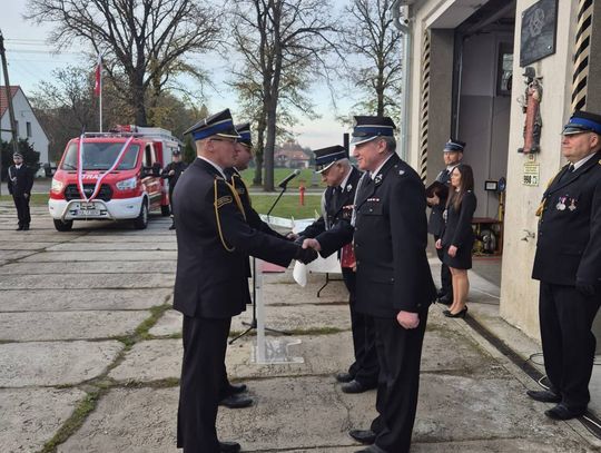 W uroczystości uczestniczyli także komendant powiatowy oraz zastępca lomendanta powiatowego PSP w Oleśnicy, burmistrz Miasta i Gminy Bierutów, przedstawiciele władz samorządowych, druhowie OSP i MDP.