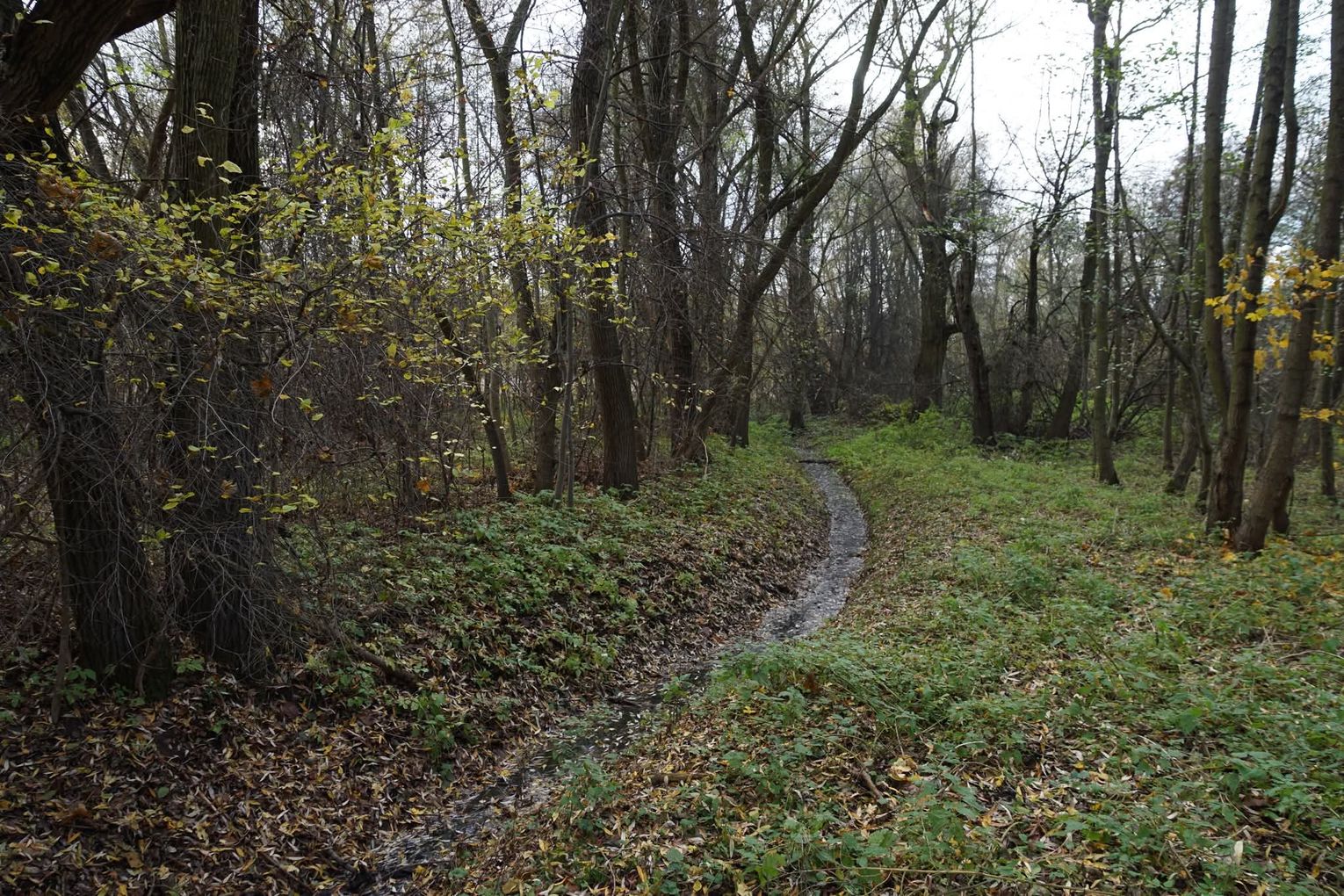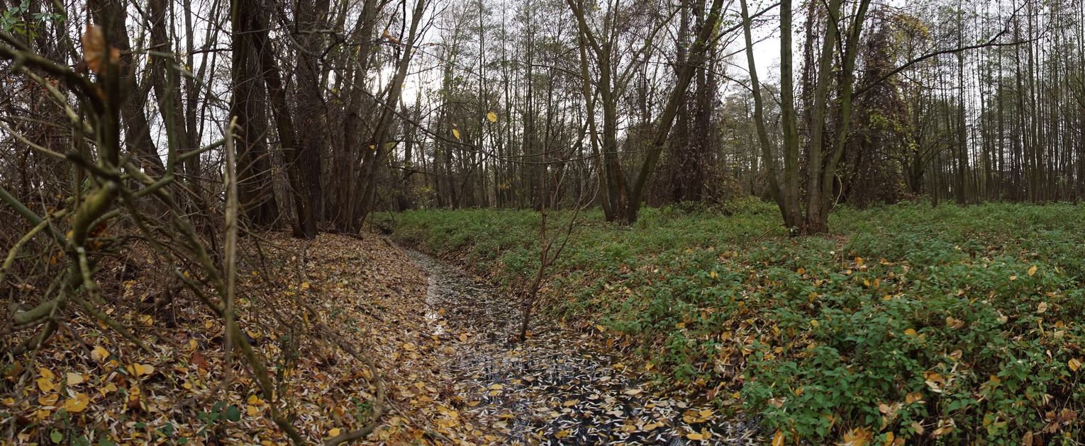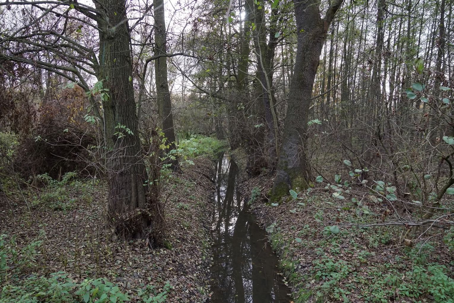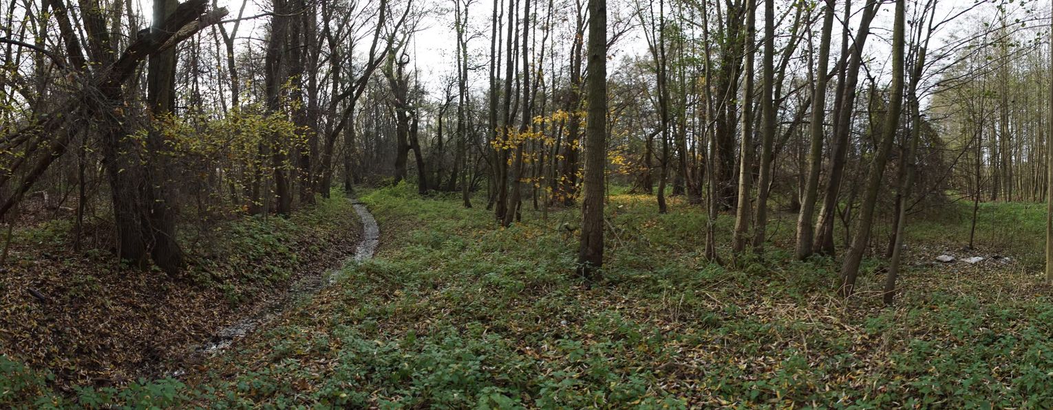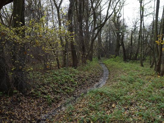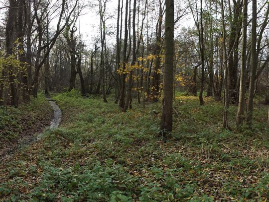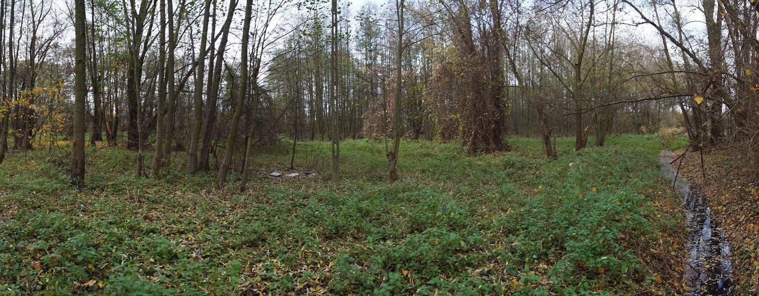Obszar zlokalizowany jest pomiędzy stawem przy ulicy Kruczej, a marketem „Biedronka” i nową zabudową przy rzece. Natomiast od strony północnej, od rzeki, po zabudowania przy ulicy Wałowej. Na planach miejskich ww. obszar obejmuje działki nr. 38, nr. 33/2, nr. 1, oraz część działki nr. 37/1. Łącznie to teren o powierzchni ok. 2.5 ha. Miejsce podmokłe, z dwoma otwartymi kanałami burzowymi. Gęsto porośnięte zielenią nieuporządkowaną, zaśmiecone z okazałymi drzewami. Rosną tam olchy czarne, lipy i kilka dębów.