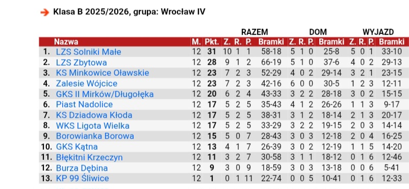 KP 99 Śliwice – LZS Solniki Małe 2:11