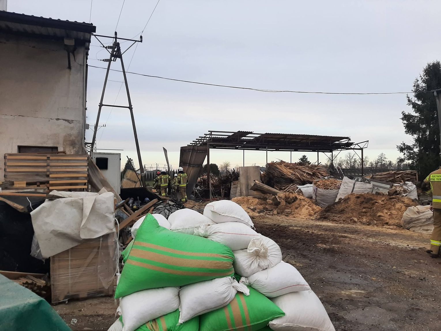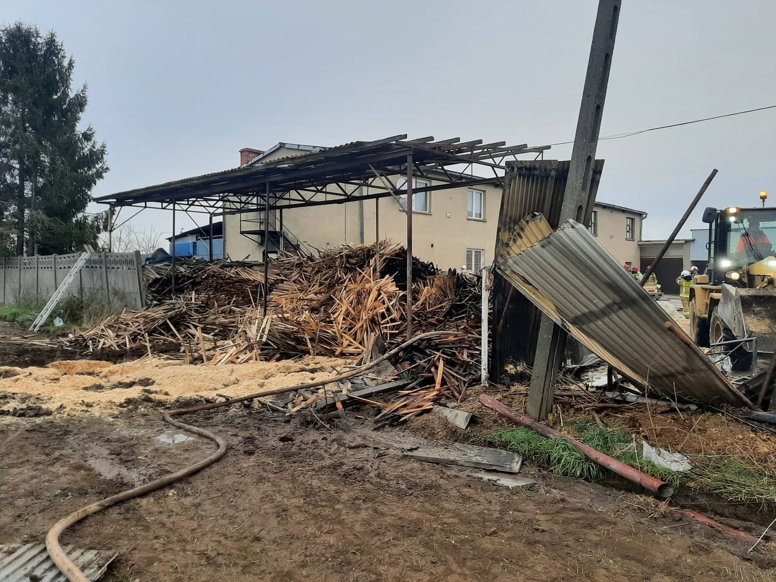 Dzisiaj nad ranem zastępy PSP i OSP z naszego powiatu zadysponowano do pożaru trocin i hali magazynowej w Działoszy. W wyniku pożaru spaleniu uległa część hali produkcyjnej, kotłownia oraz trociny magazynowane w pobliżu hali.