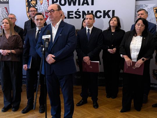 Wiceminister rozwoju i technologii Michał Jaros oraz Jolanta Niezgodzka Posłanka na Sejm RP uczestniczyli dziś w konferencji prasowej poświęconej ochronie ludności i obronie cywilnej, która odbyła się w Starostwie Powiatowym w Oleśnicy z udziałem przedstawicieli lokalnych samorządów.