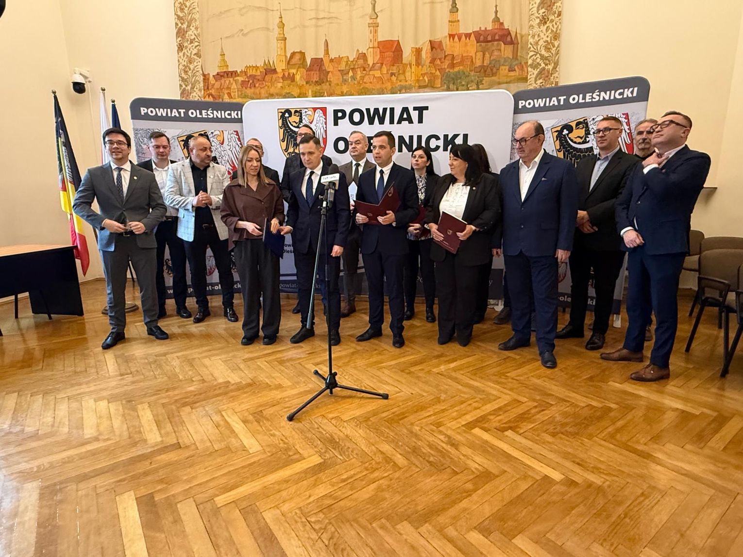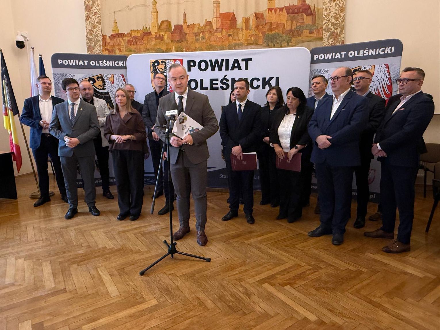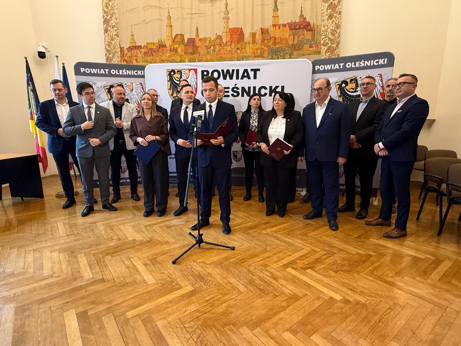 Władze Powiatu Oleśnickiego reprezentowali: starosta Wioletta Efinowicz, przewodniczący Rady Jan Bronś, wicestarosta Sławomir Kapica oraz członkowie Zarządu: Maria Susidko, Wojciech Paszkowski i Marcin Gręda. Konferencję prowadził Wojciech Paszkowski.