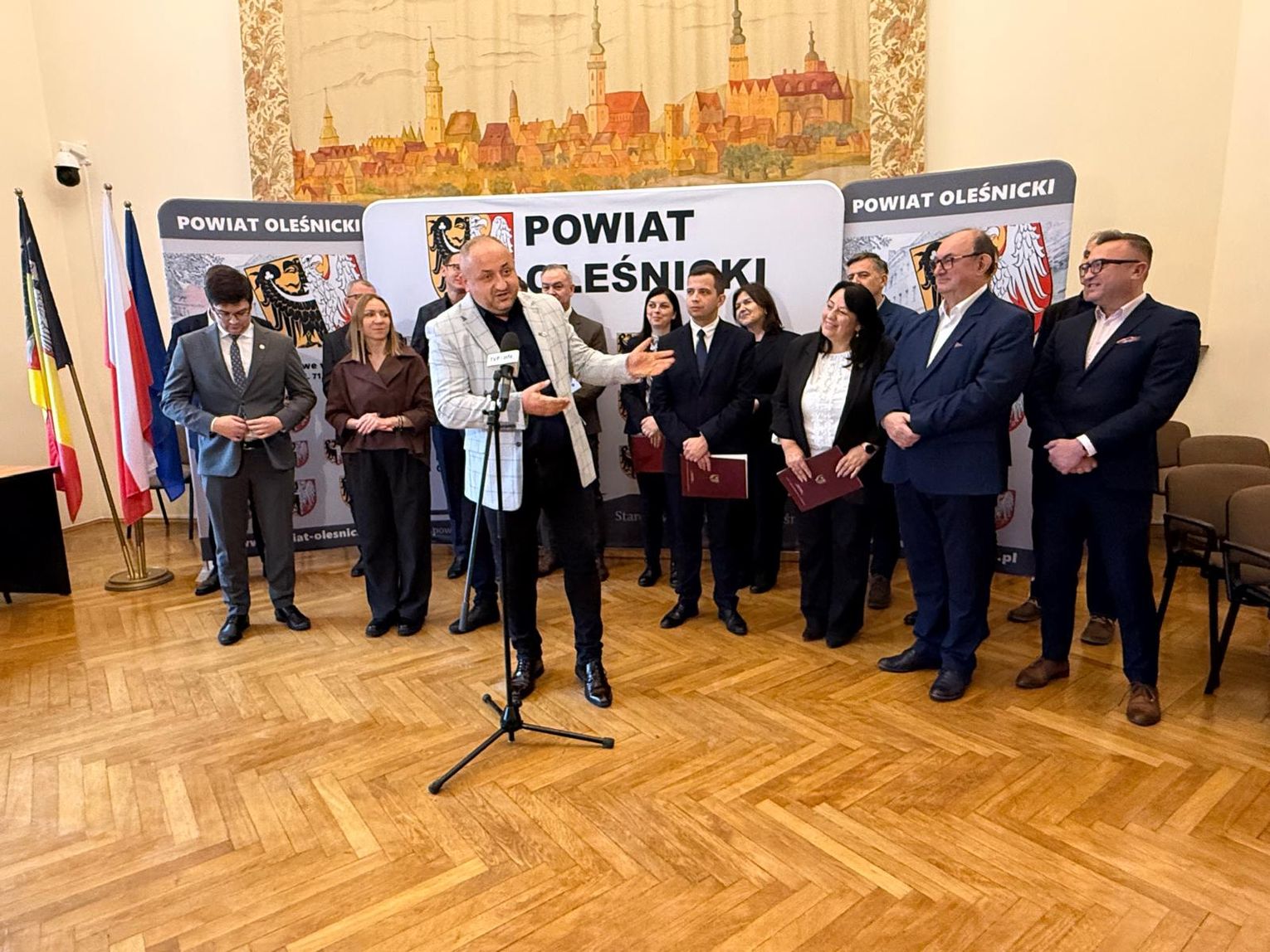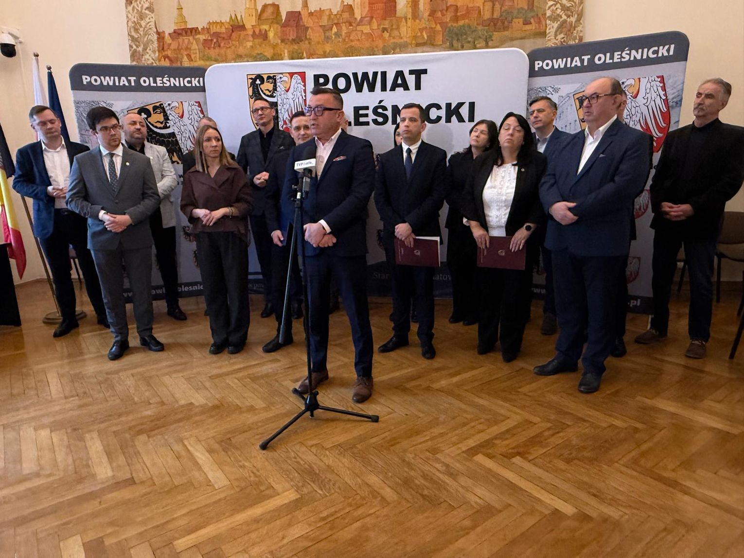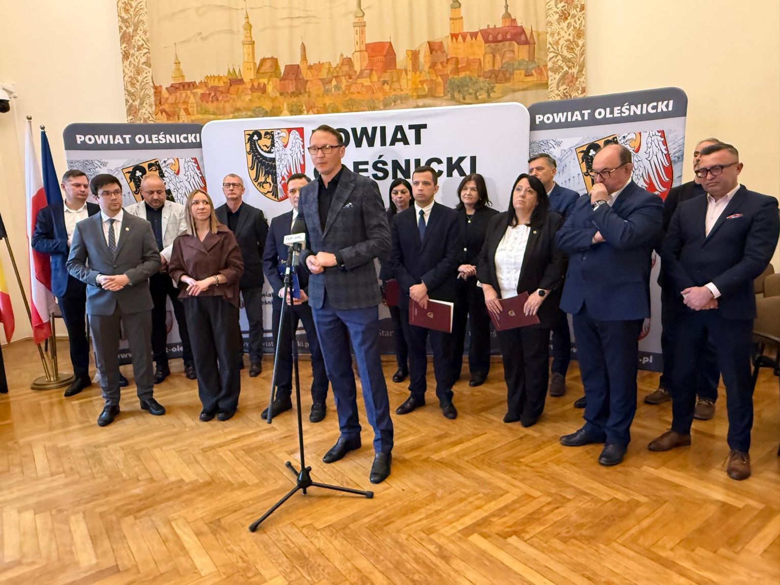 Władze Powiatu Oleśnickiego reprezentowali: starosta Wioletta Efinowicz, przewodniczący Rady Jan Bronś, wicestarosta Sławomir Kapica oraz członkowie Zarządu: Maria Susidko, Wojciech Paszkowski i Marcin Gręda. Konferencję prowadził Wojciech Paszkowski.