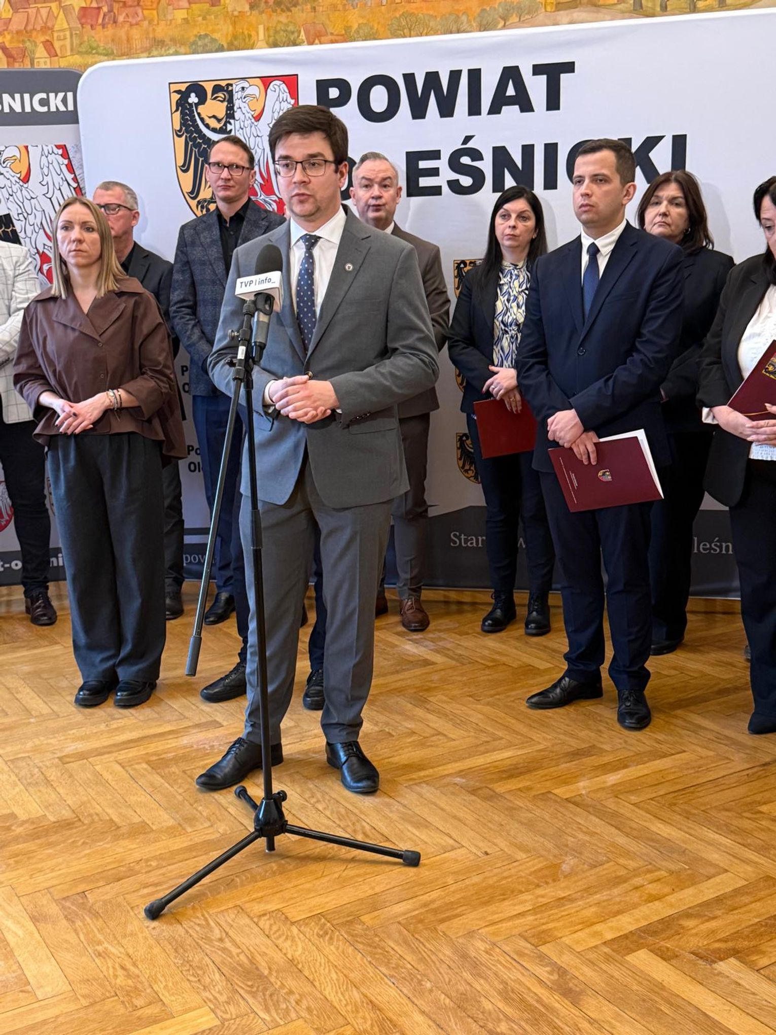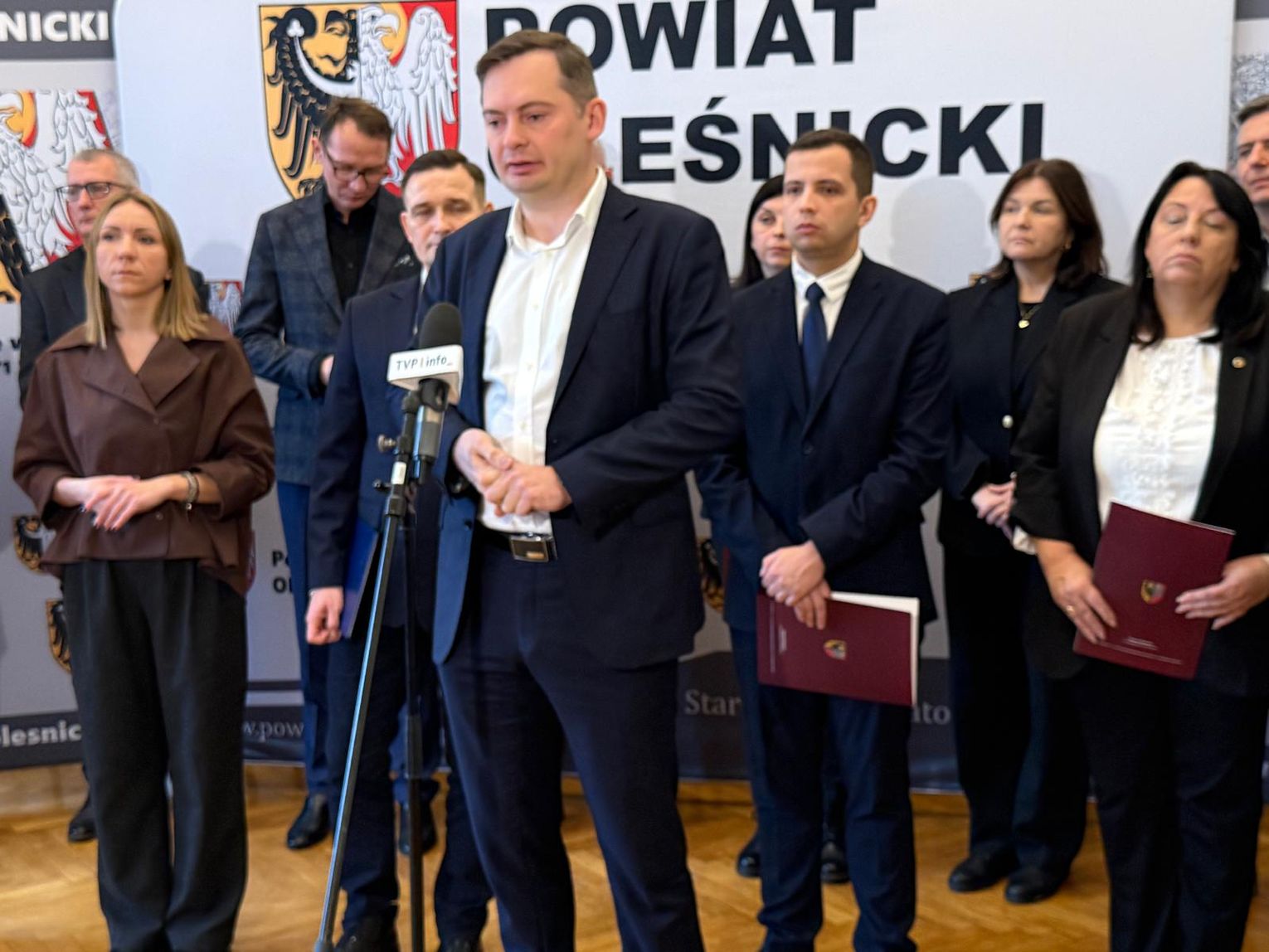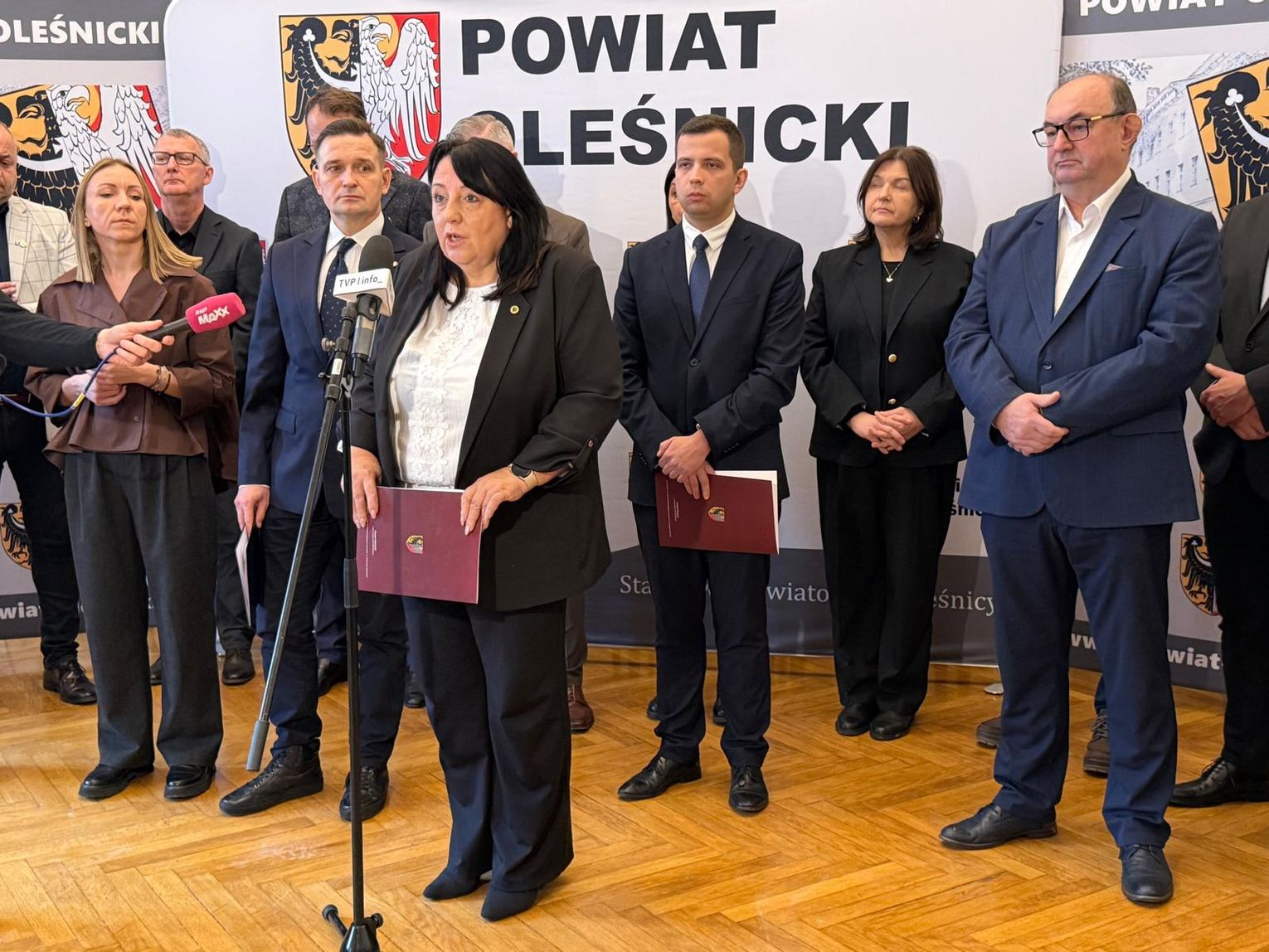 Starosta Wioletta Efinowicz odniosła się do przygotowań Powiatu Oleśnickiego, informując, że dotychczasowe działania zostały przeprowadzone kompleksowo i z dużą starannością. Powiat otrzymał ponad 3,3 mln zł, z czego 90% środków jest już rozdysponowanych. Starosta wymieniła najważniejsze zakupy, poinformowała o przeszkoleniu urzędników i zachęciła mieszkańców do posiadania radioodbiorników na baterie - jako podstawowego narzędzia komunikacji kryzysowej. Zaapelowała również o zachowanie spokoju, wskazując na bardzo dobrą współpracę z gminami w obszarze bezpieczeństwa.