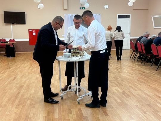 Nie zabrakło pysznego poczęstunku przygotowanego przez KGW „Wszechświętanki”, a słodkim akcentem spotkania był okazały tort, który pokroili wspólnie sołtys oraz – w imieniu wójta – dyrektor GOK Oleśnica.