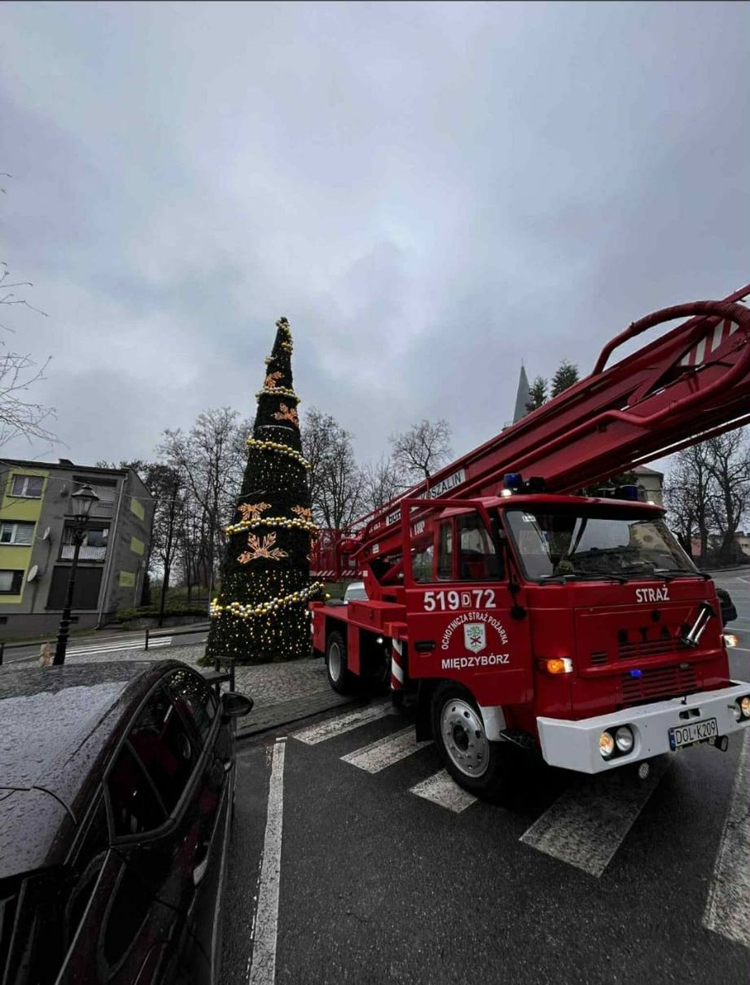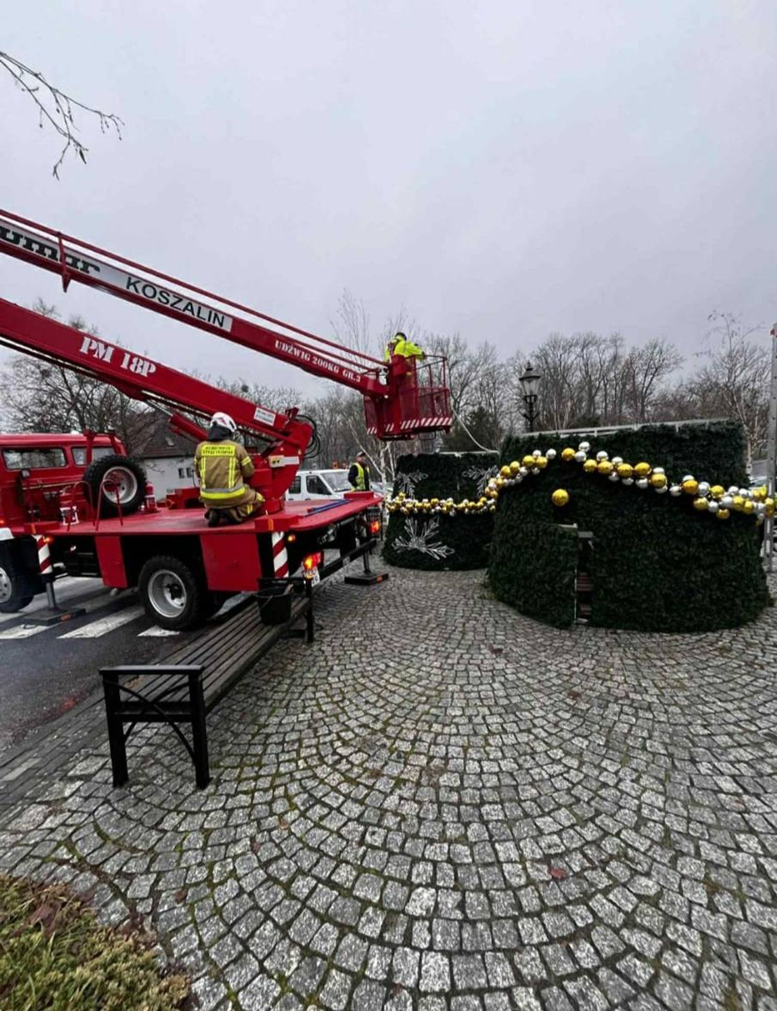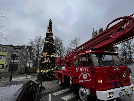Strażacy zamontowali choinkę w centrum miasta