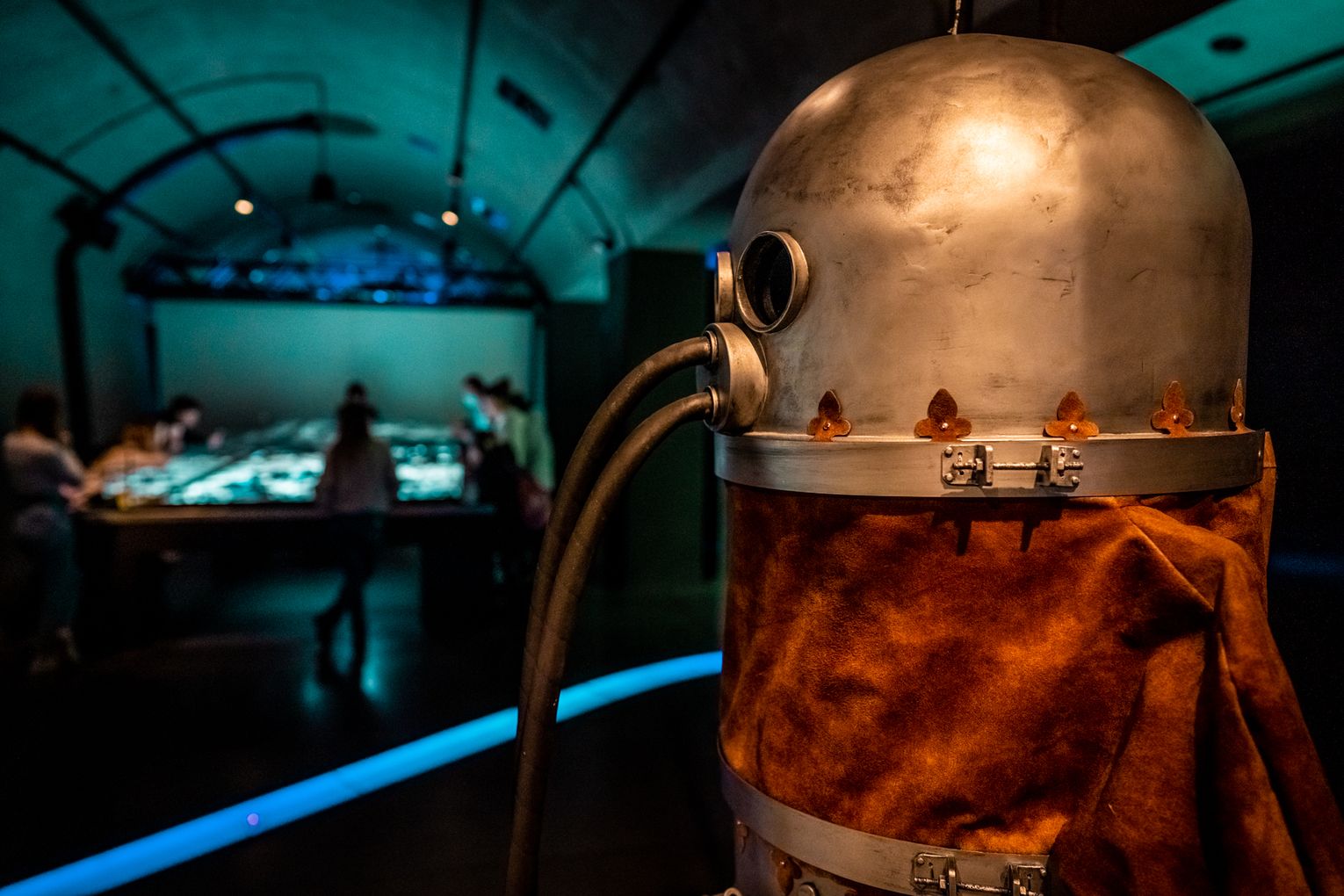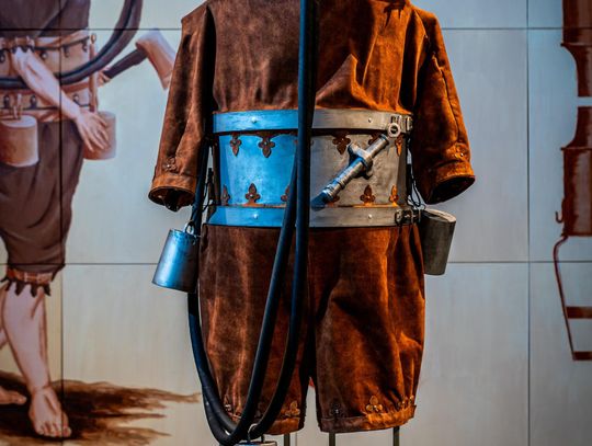– Skafander w kształcie cylindra wykonany był z blachy i obity skórą, aby nie przeciekał. Góra skafandra całkowicie osłaniała głowę, do ustnika przymocowany był wężyk, którym nurek zaciągał powietrze, a wydychał nosem. Strój miał służyć do oczyszczania dna rzecznego z konarów drzew, utrudniających wodną komunikację – mówi Monika Domaradzka, menedżerka Hydropolis.