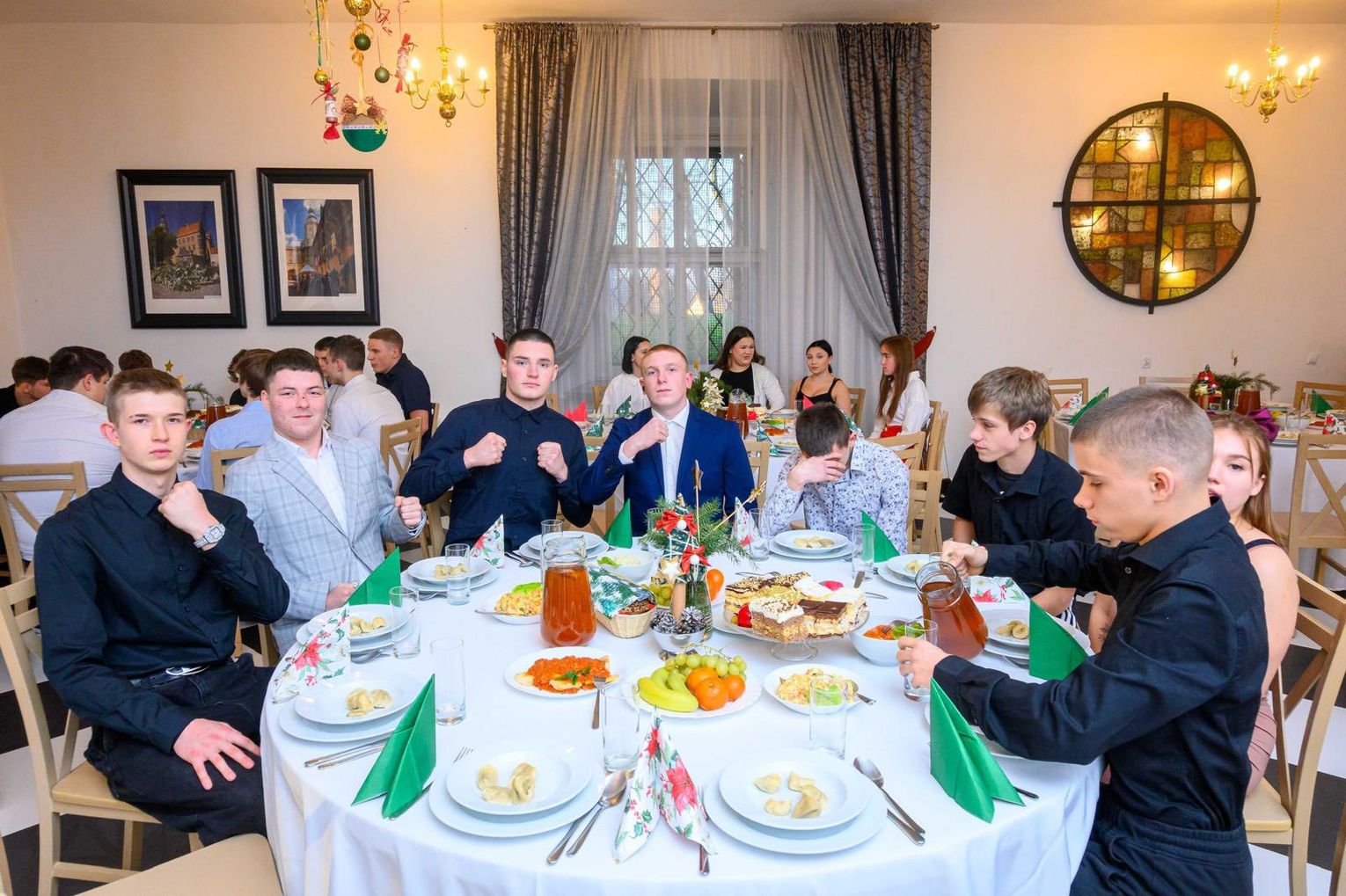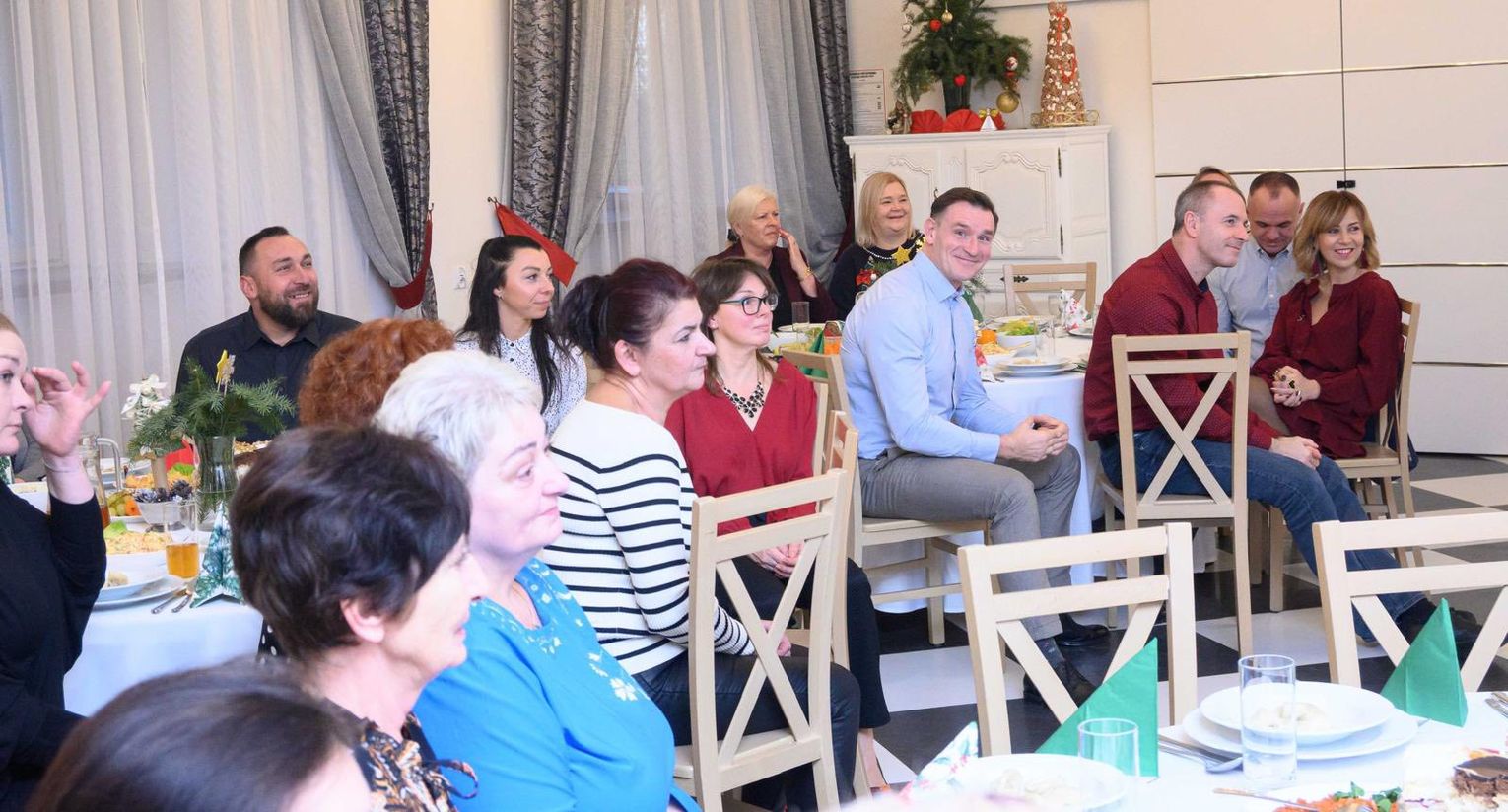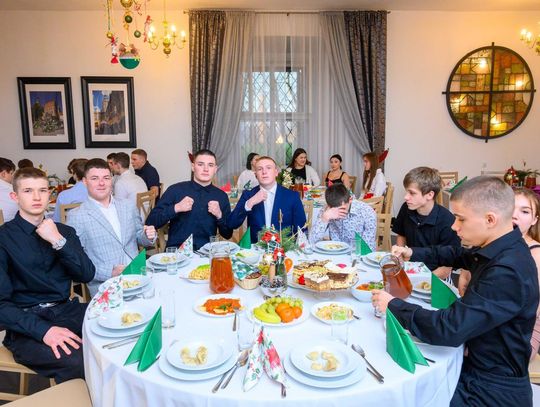 Po oficjalnej części wszyscy uczestnicy podzielili się opłatkiem, składając sobie serdeczne życzenia, a następnie zasiedli do wspólnego posiłku przy dźwiękach kolęd, ciesząc się atmosferą bliskości i świątecznej radości.