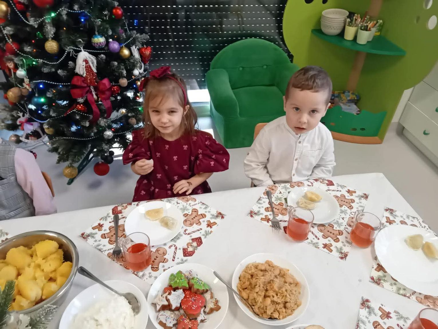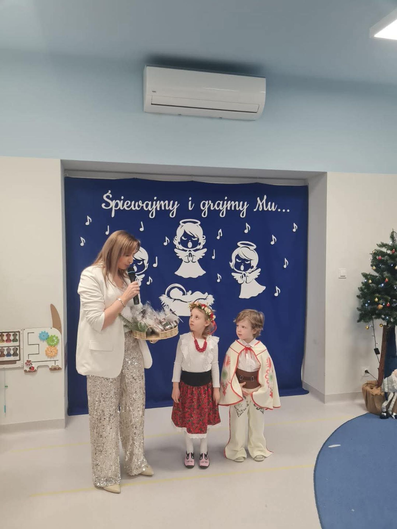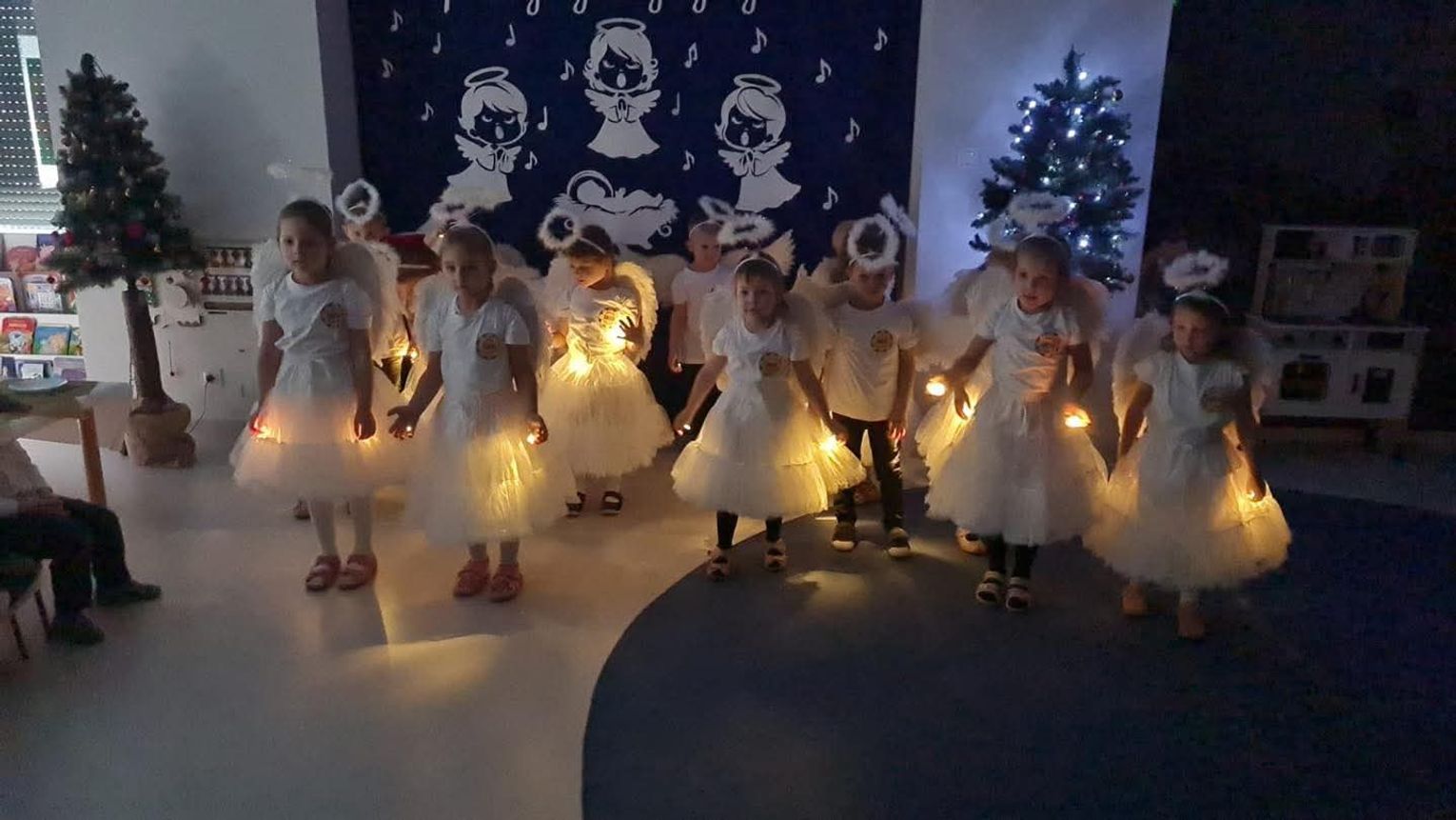 Gospodarzami wydarzenia były dzieci z grupy Biedronki, które recytowały wiersze oraz śpiewały kolędy i pastorałki. Następnie na scenie pojawiły się Krasnoludki, wykonując kolędę „Przybieżeli do Betlejem”. Publiczność mogła także podziwiać piękny taniec „Świąteczne światełka” w wykonaniu grupy Motylki, a potem wysłuchać kilku kolęd i pastorałek w ich interpretacji.