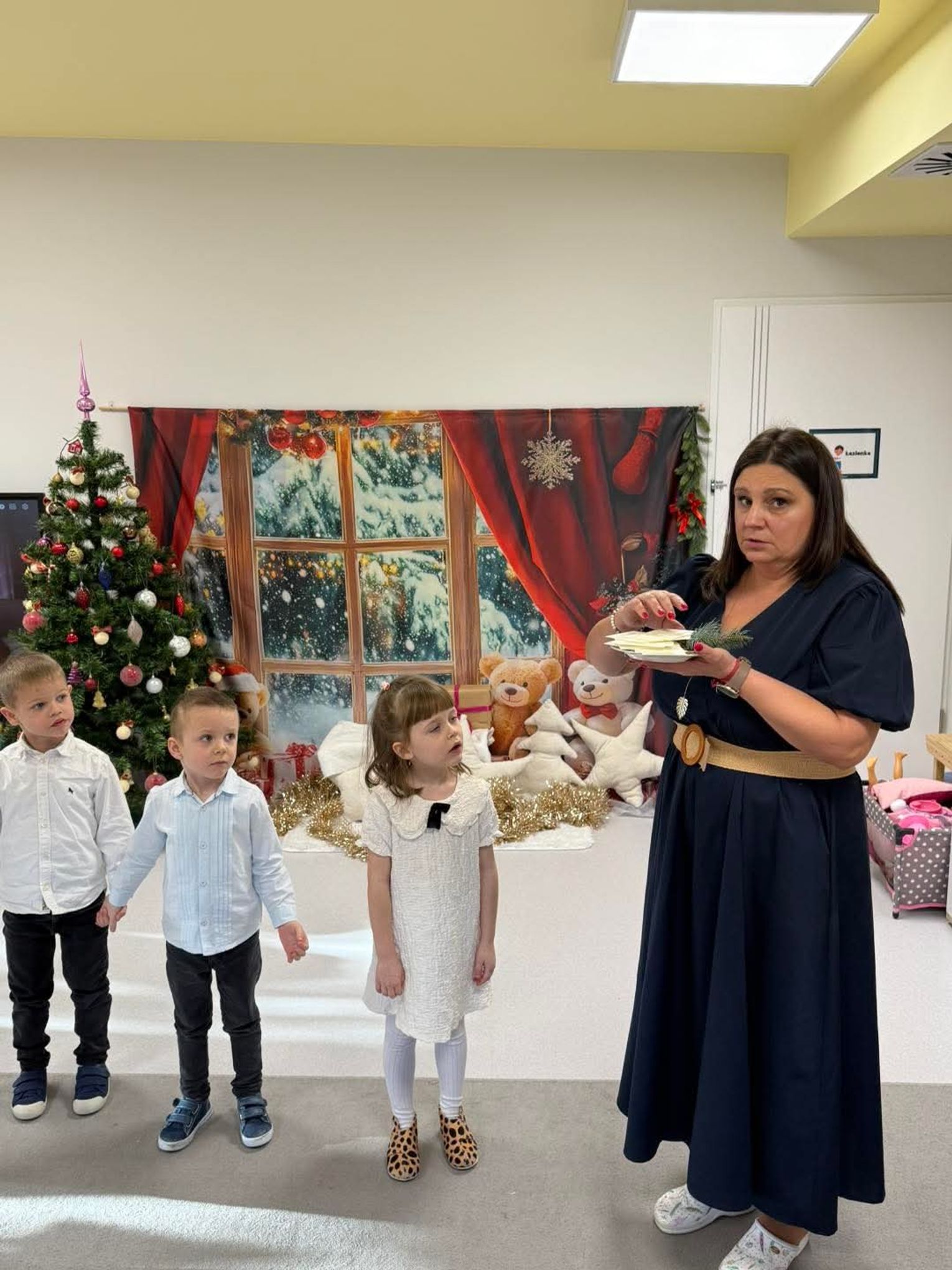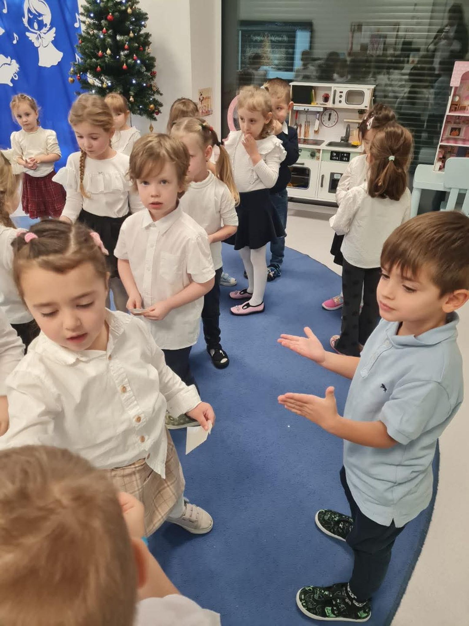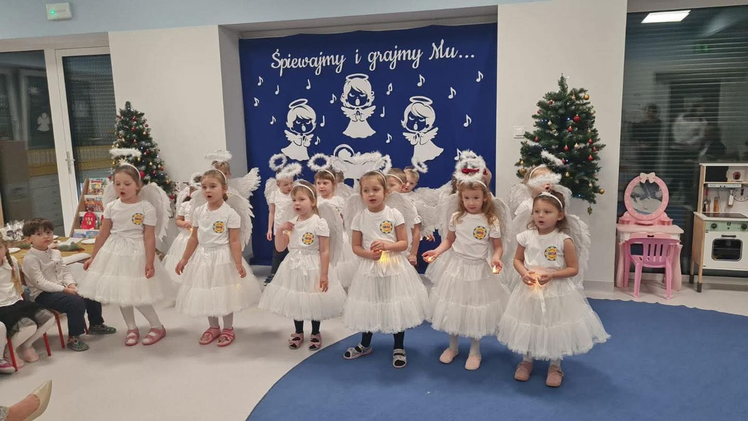 Gospodarzami wydarzenia były dzieci z grupy Biedronki, które recytowały wiersze oraz śpiewały kolędy i pastorałki. Następnie na scenie pojawiły się Krasnoludki, wykonując kolędę „Przybieżeli do Betlejem”. Publiczność mogła także podziwiać piękny taniec „Świąteczne światełka” w wykonaniu grupy Motylki, a potem wysłuchać kilku kolęd i pastorałek w ich interpretacji.