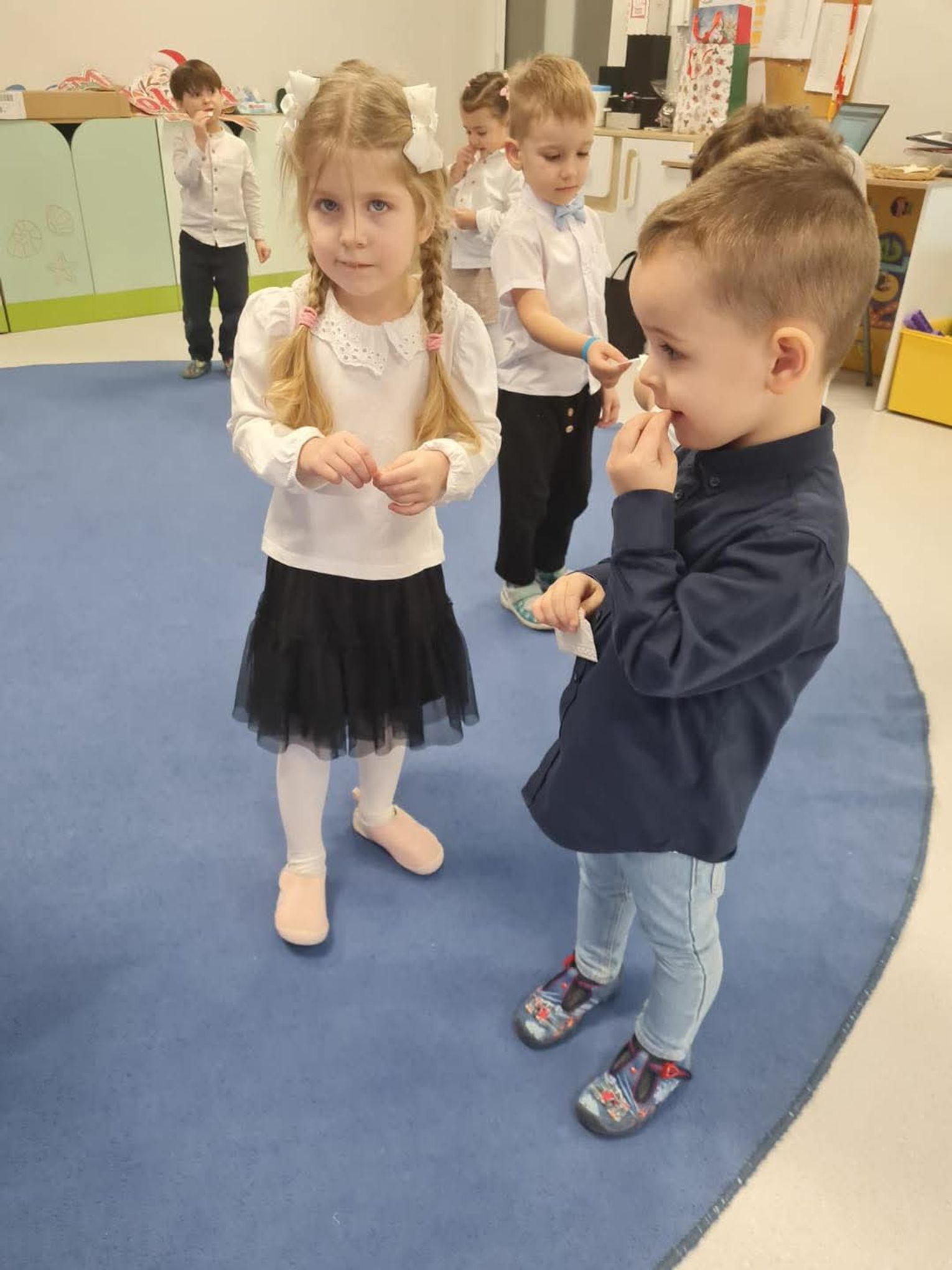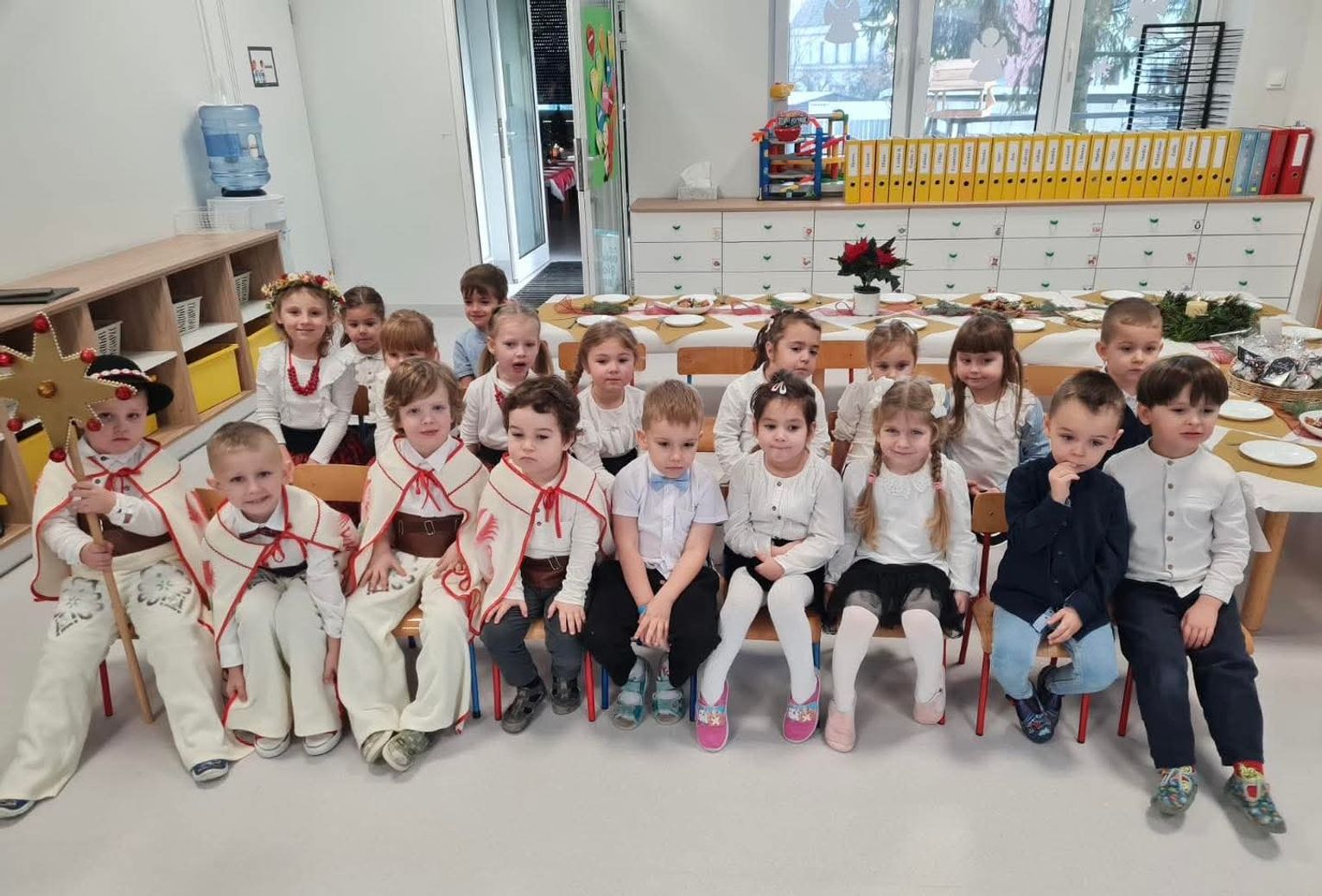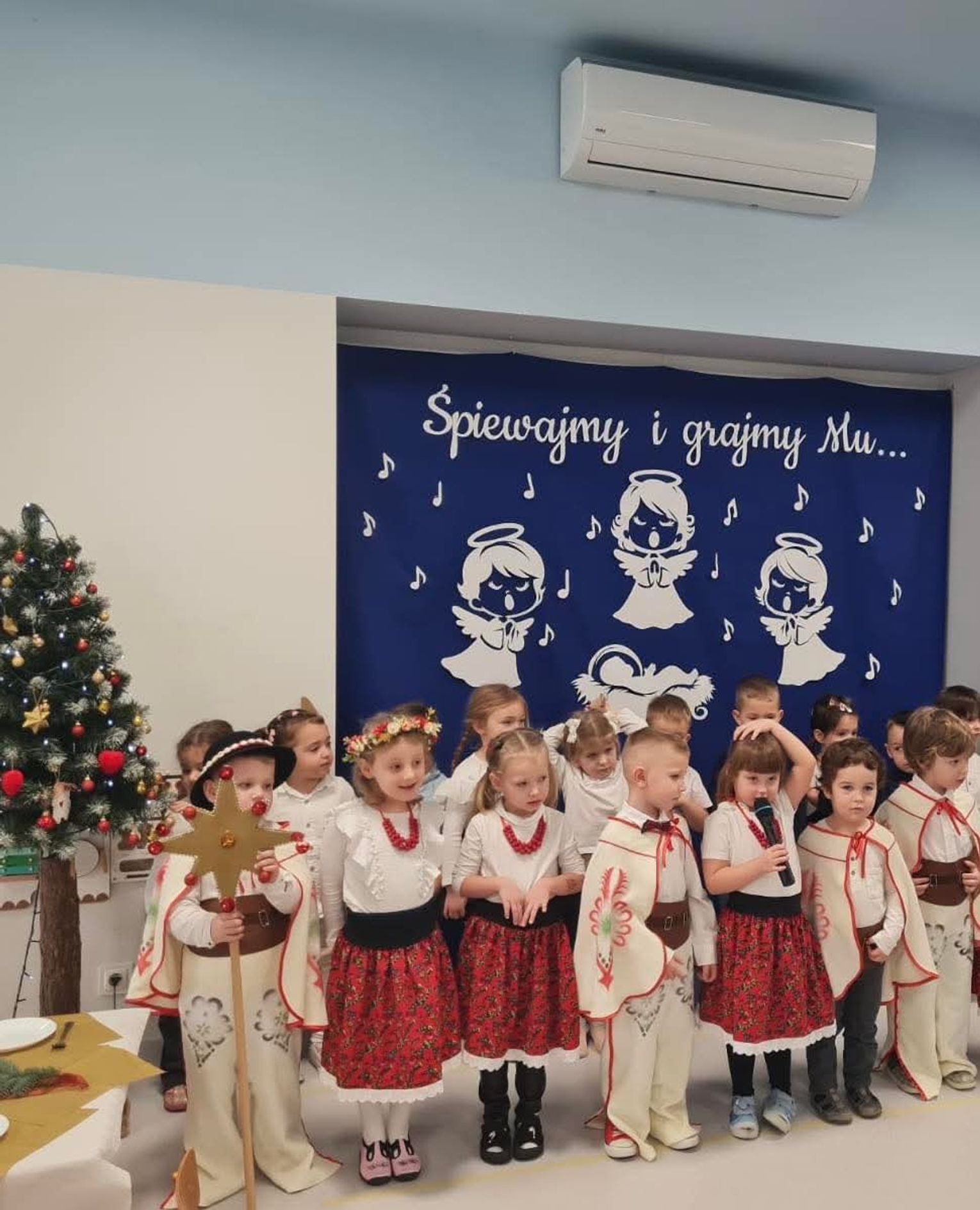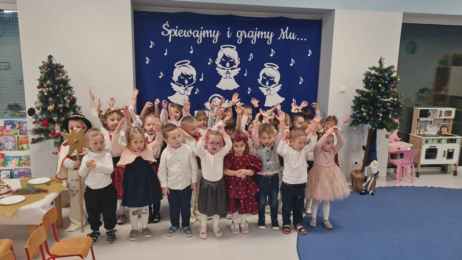 W Przedszkolu Publicznym „Bajka” w Międzyborzu zapanowała prawdziwie świąteczna atmosfera. Wszystkie grupy młodsze spotkały się na wspólnym kolędowaniu, podczas którego dzieci zaprezentowały swoje umiejętności wokalne i artystyczne.