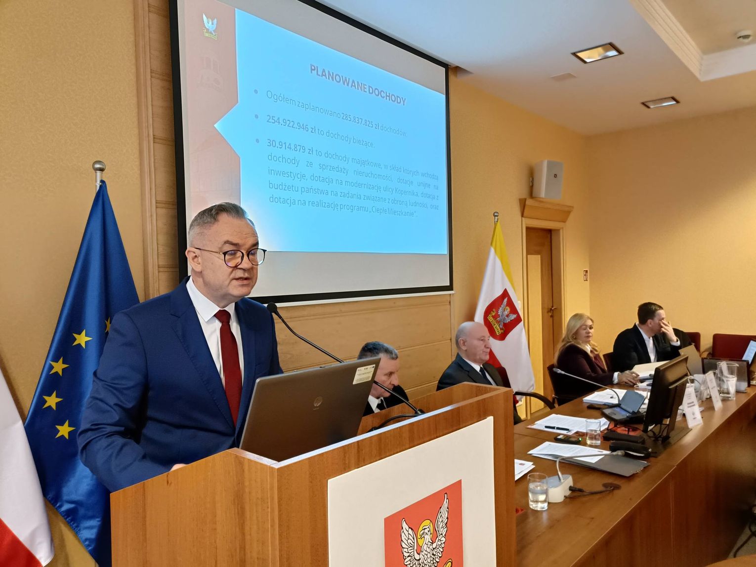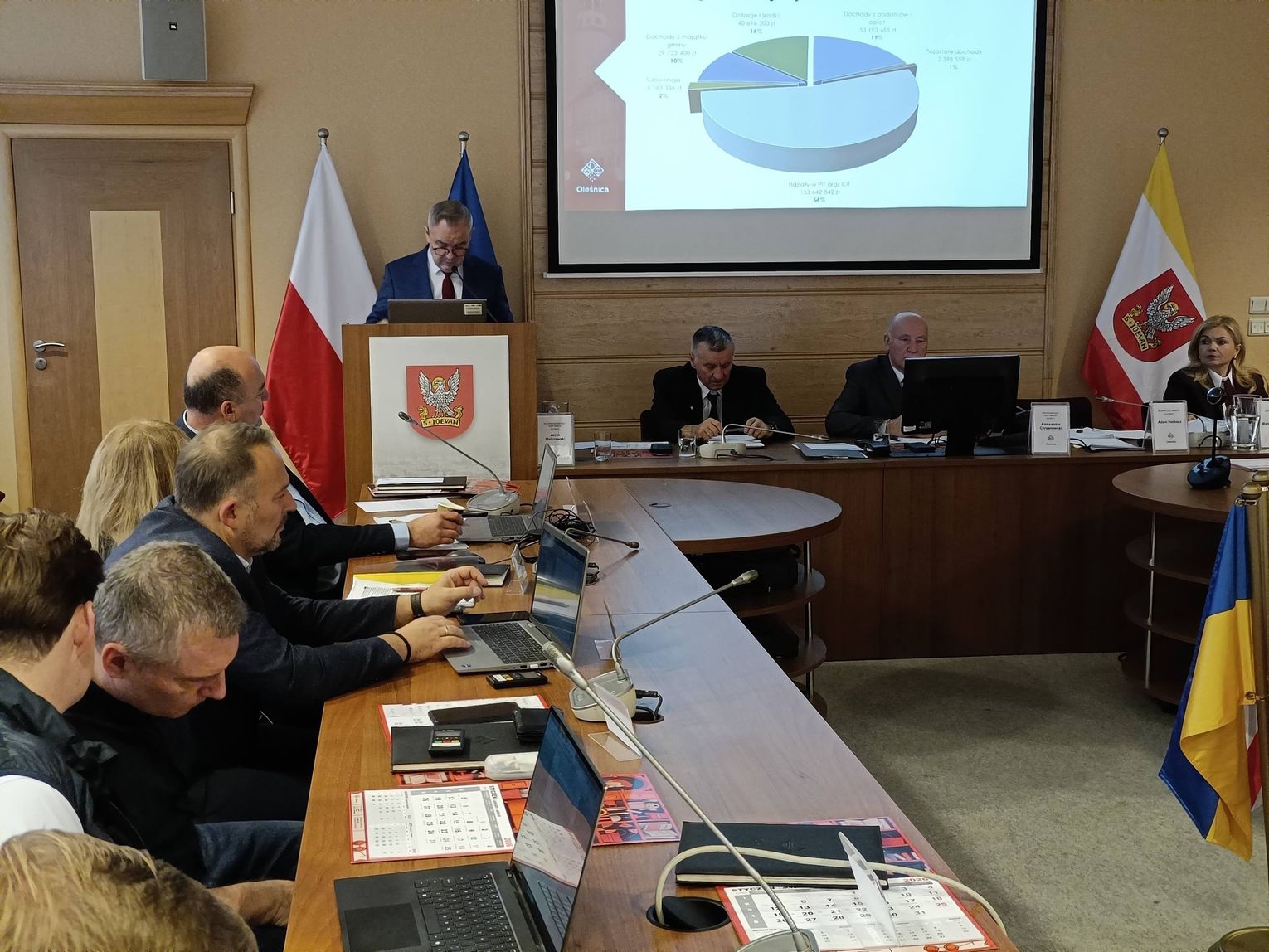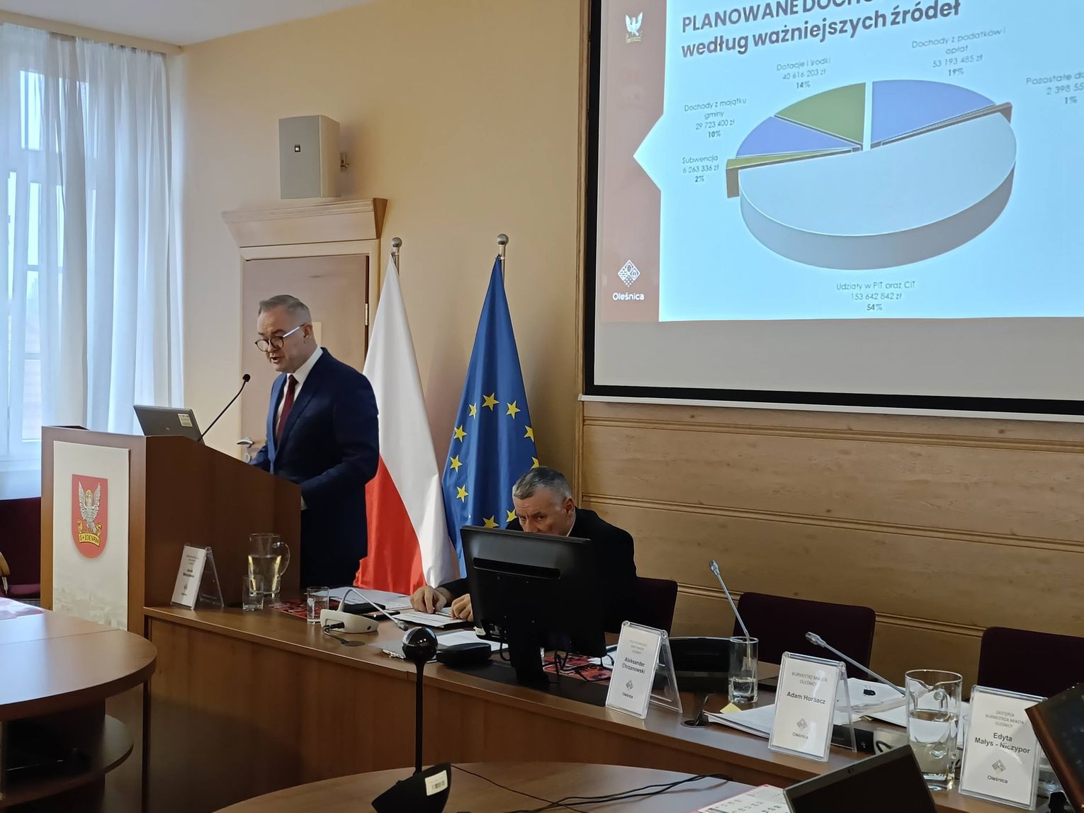 Burmistrz Oleśnicy Adam Horbacz przedstawił dzisiaj na sesji Rady Miasta projekt budżetu na 2026 rok, w którym wydatki miasta mają wynieść blisko 299 mln zł, z czego aż 57,6 mln zł przeznaczono na inwestycje. Dochody zaplanowano na poziomie 285,8 mln zł. To rekordowa kwota na zadania inwestycyjne, która ma znacząco zmienić oblicze miasta.