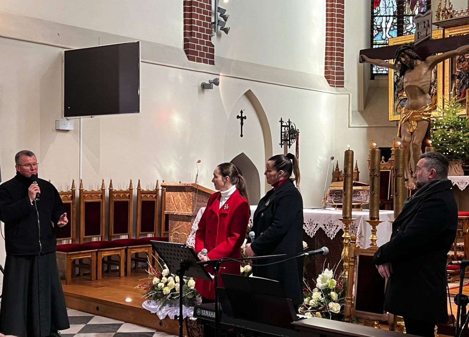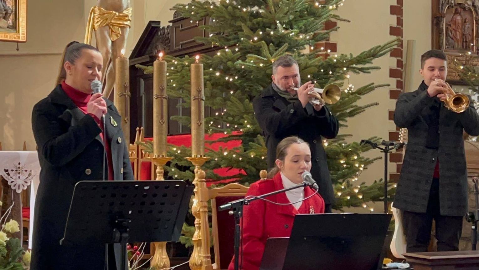 Cała czwórka wspólnie zaśpiewała tradycyjne polskie kolędy, tworząc niezapomnianą atmosferę ciepła i rodzinnej wspólnoty. Parafianie z entuzjazmem dołączyli do śpiewu, a wspólna modlitwa i Eucharystia dopełniły ten wyjątkowy wieczór.