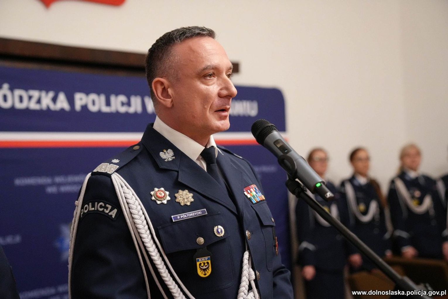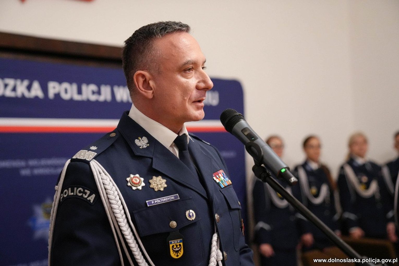 W swoim wystąpieniu, mającym miejsce w końcowej fazie uroczystości, nadinsp. Paweł Półtorzycki podziękował funkcjonariuszom odchodzącym na emeryturę za wieloletnią, wzorową służbę oraz ich zaangażowanie na rzecz bezpieczeństwa mieszkańców Dolnego Śląska. Szef dolnośląskiego garnizonu pogratulował również awansów mianowanym policjantkom i policjantom, życząc im sukcesów na nowych stanowiskach kierowniczych.