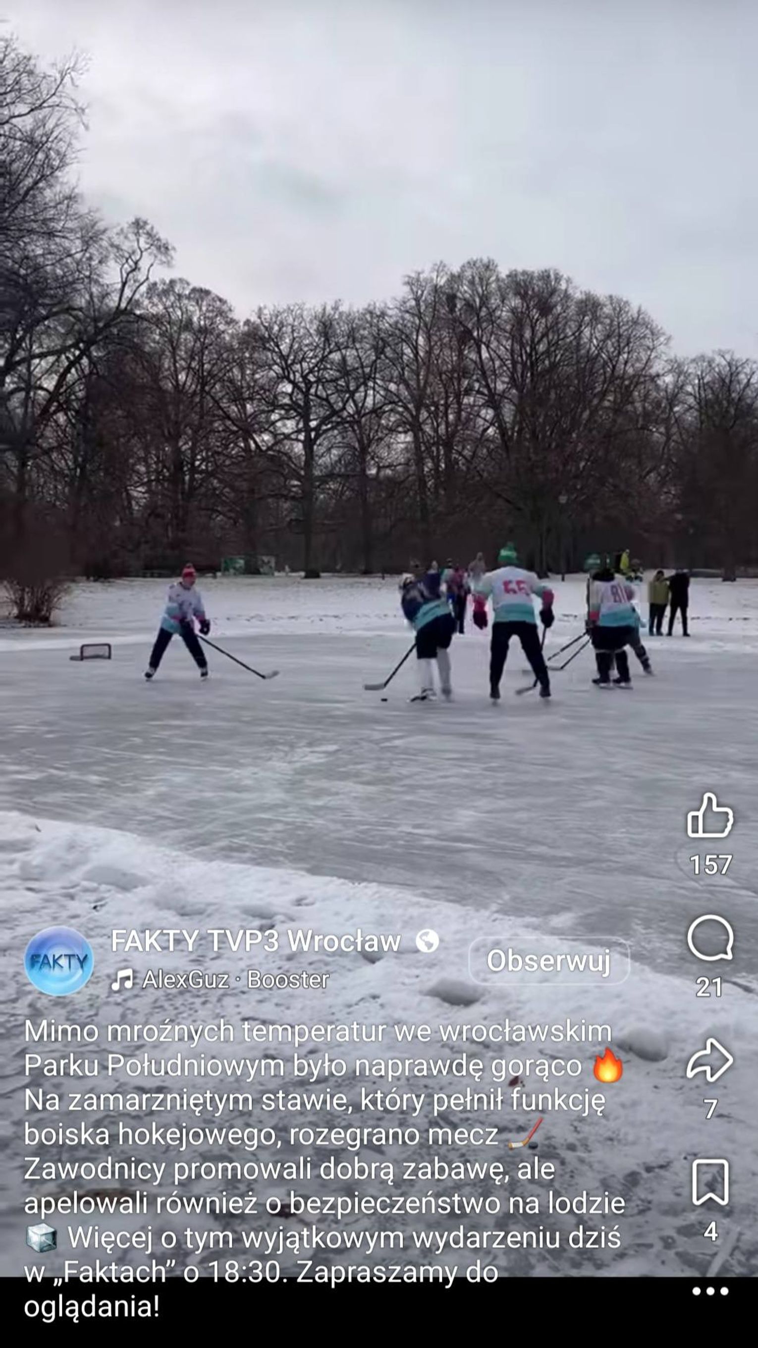 Pretekstem do komentarza było nagranie z Oleśnicy, na którym widać chłopców spacerujących po zamarzniętym stawie. Materiał wzbudził falę ostrzeżeń i alarmujących komentarzy dotyczących bezpieczeństwa dzieci. Sprawa została nagłośniona jako potencjalnie niebezpieczna sytuacja.