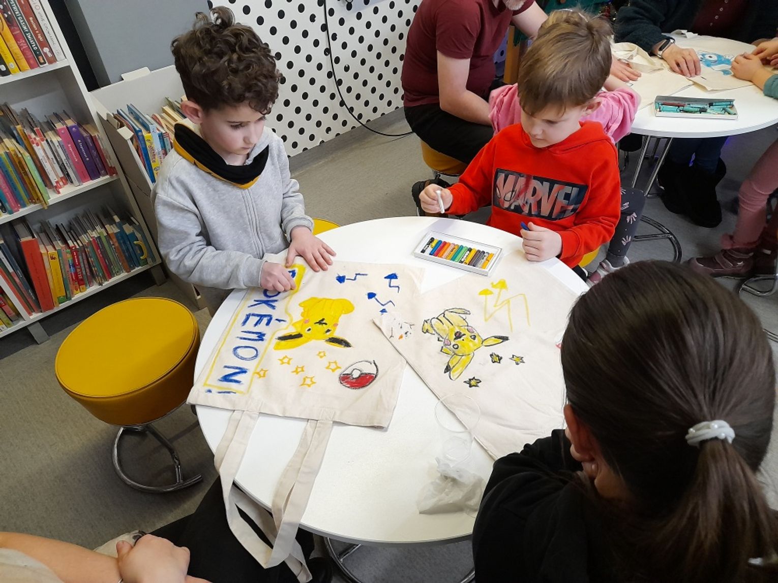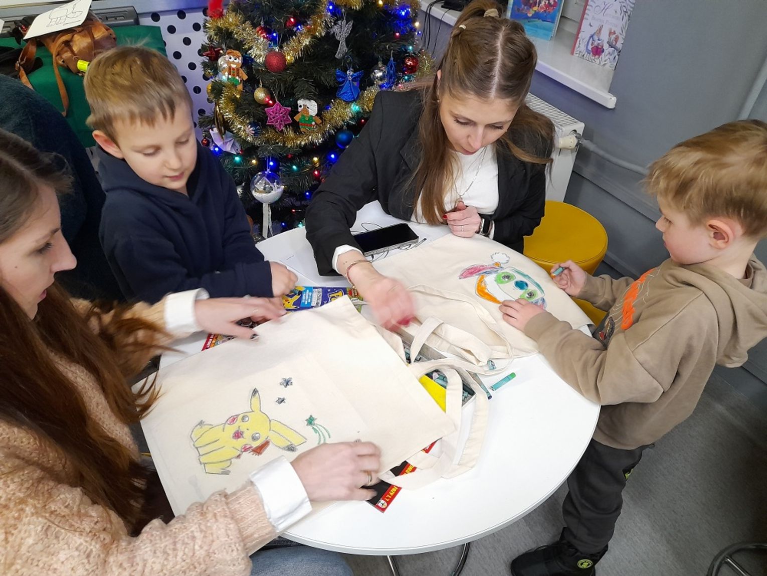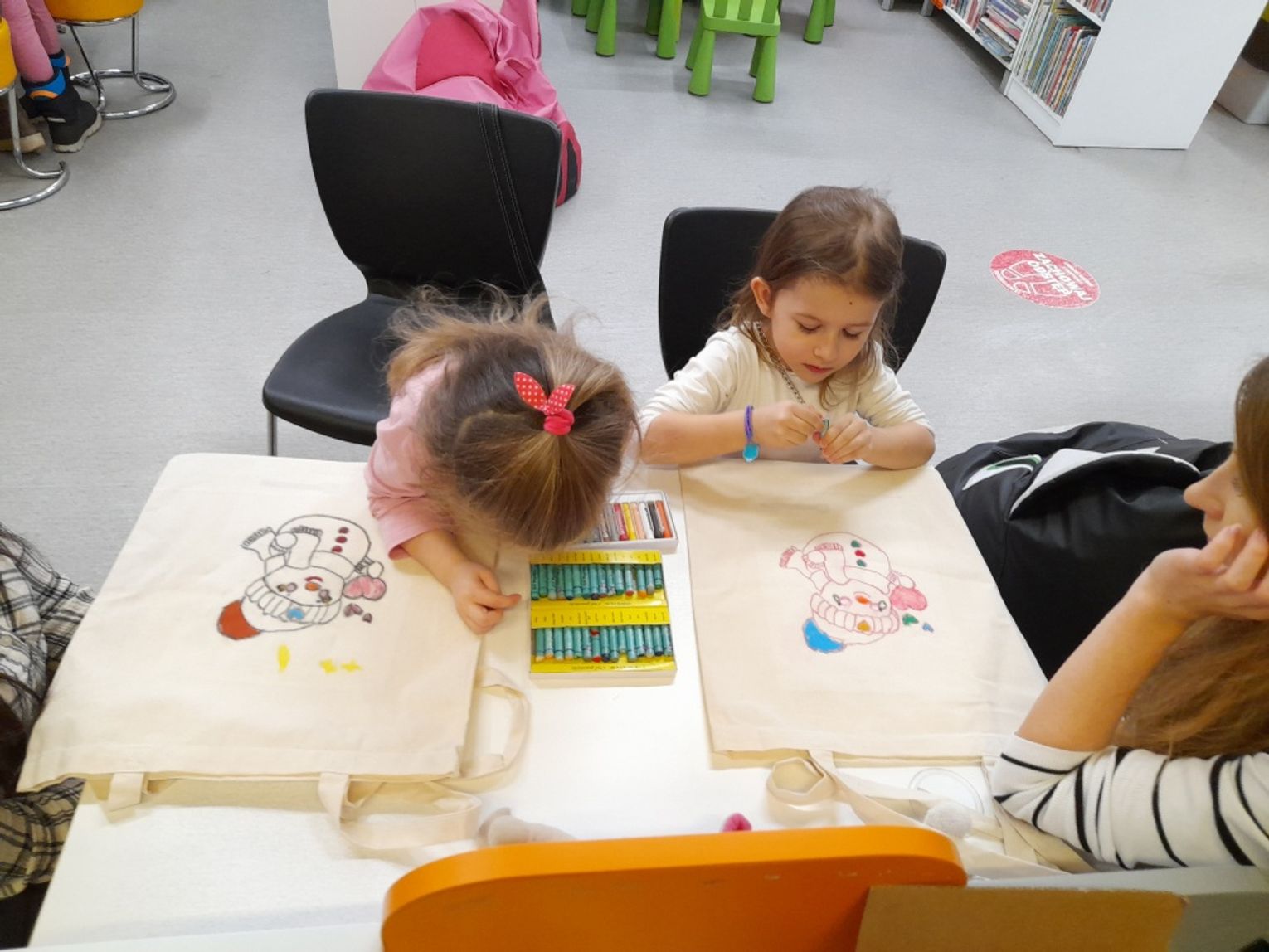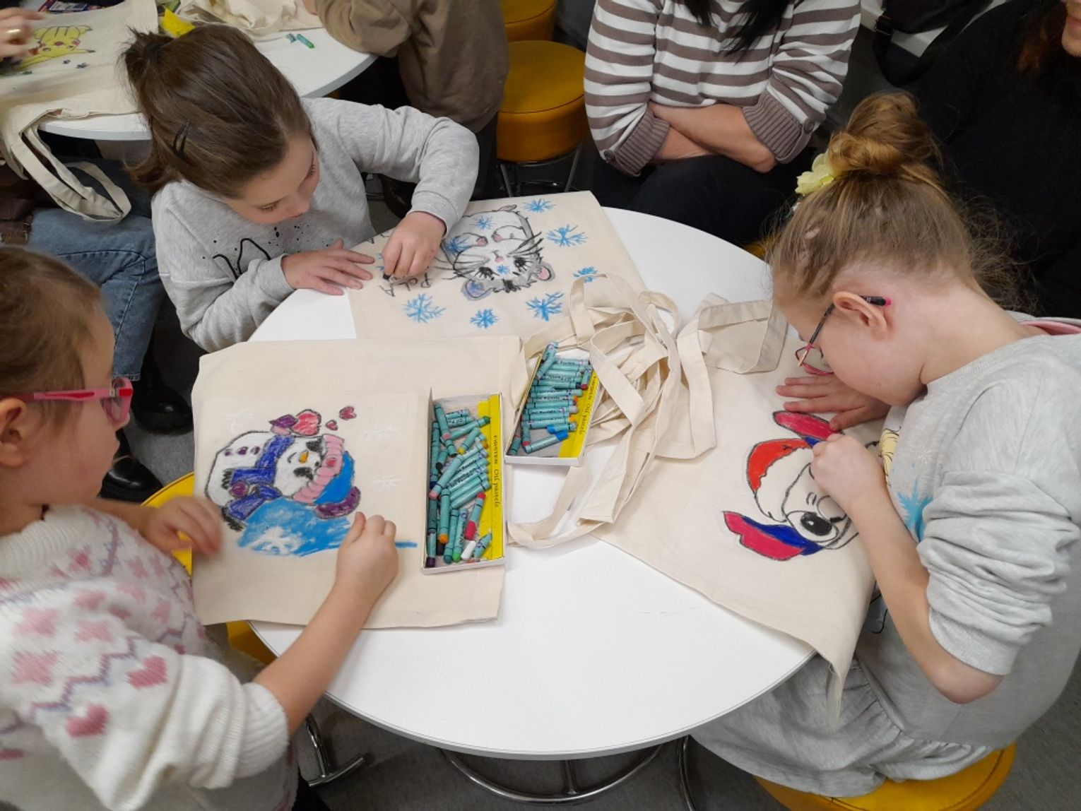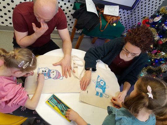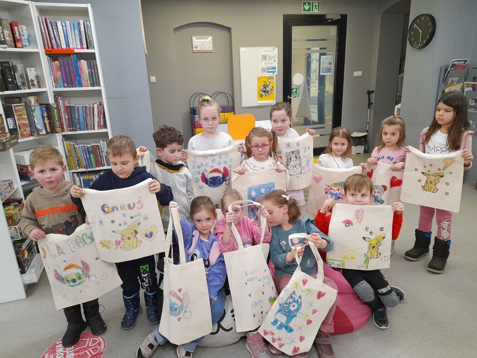 Efekty przeszły najśmielsze oczekiwania bibliotekarek. Torby zamieniły się w prawdziwe dzieła sztuki: jedne pełne kolorowych bałwanów i pingwinów, inne z Elsa i Olafem, jeszcze inne z misiami polarowymi albo własnymi zimowymi marzeniami. Najważniejsze – te torby już niedługo posłużą do noszenia wypożyczonych książek, więc będą towarzyszyć Jeżykom na co dzień.