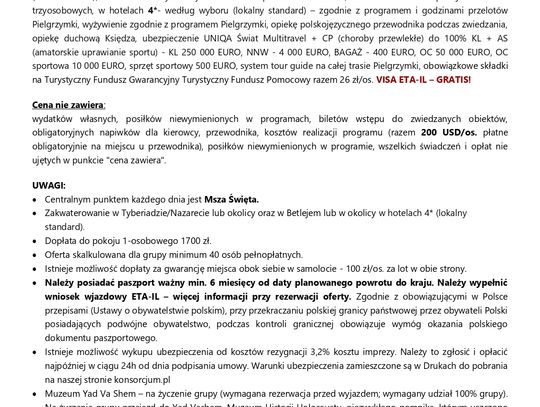 To nie jest zwykła wycieczka – to prawdziwa duchowa podróż po najważniejszych miejscach biblijnych: Jerozolima, Betlejem, Nazaret, Jezioro Galilejskie, Góra Tabor, Jordan i wiele innych.