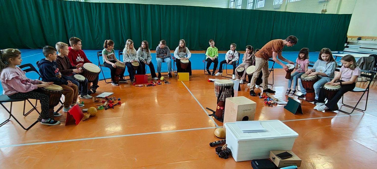 - energetycznych warsztatów gry na bębnach afrykańskich prowadzonych przez Marka Patyka,