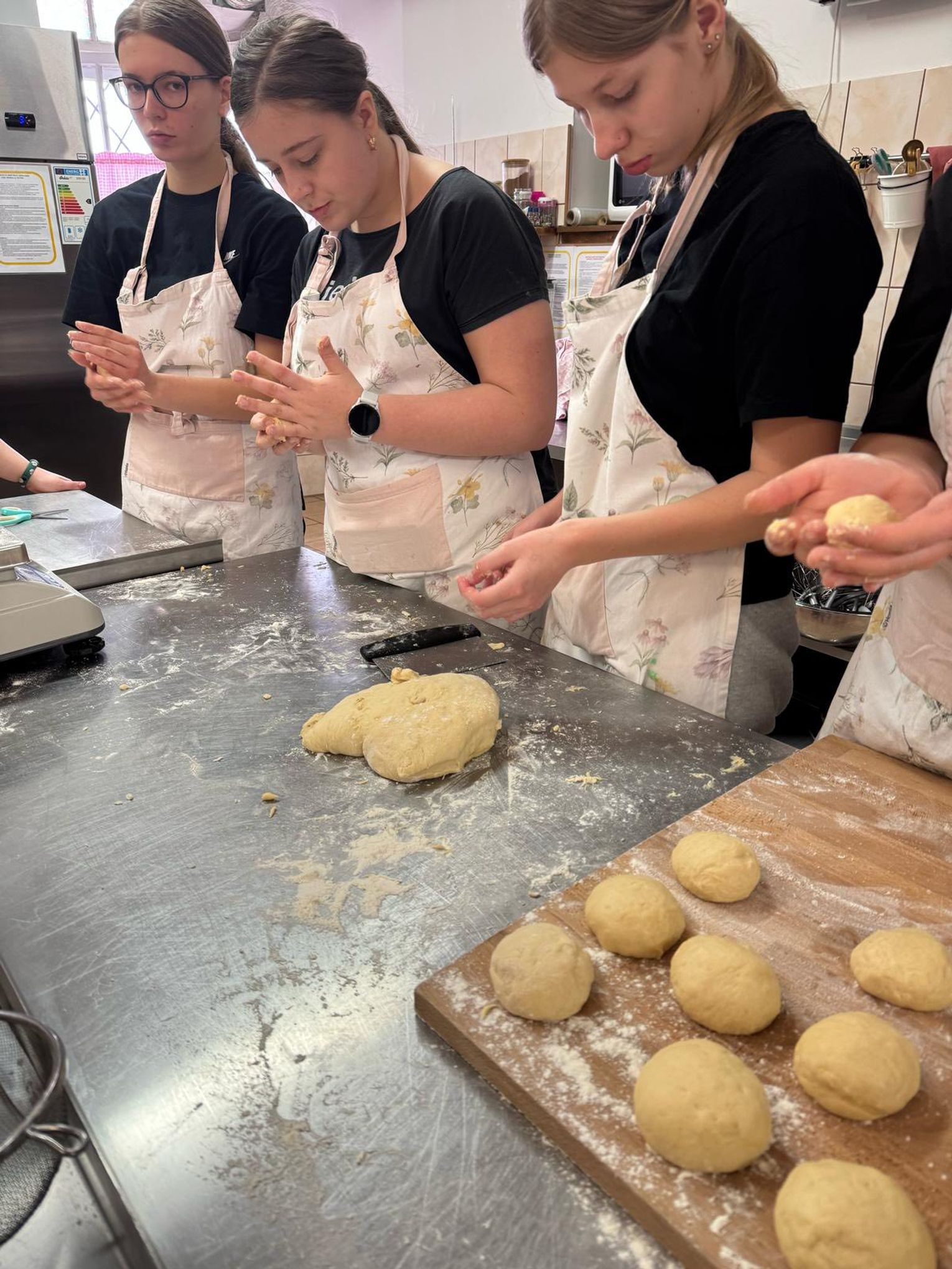 Podczas praktyk zawodowych powstają prawdziwe cuda: złociste, puszyste pączki (pewnie z różą lub ulubionym nadzieniem), delikatne różyczki z ciasta oraz chrupiące chrusty (czyli klasyczne faworki), które kuszą już samym wyglądem i aromatem.