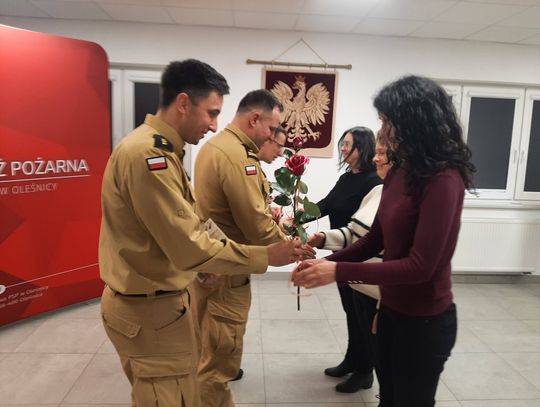 Komendant Powiatowy PSP w Oleśnicy osobiście wręczył symbolicczne bukiety kwiatów oraz gorące podziękowania wszystkim pracownikom cywilnym komendy – tym, którzy na co dzień dbają o sprawne funkcjonowanie jednostki „od zaplecza”.