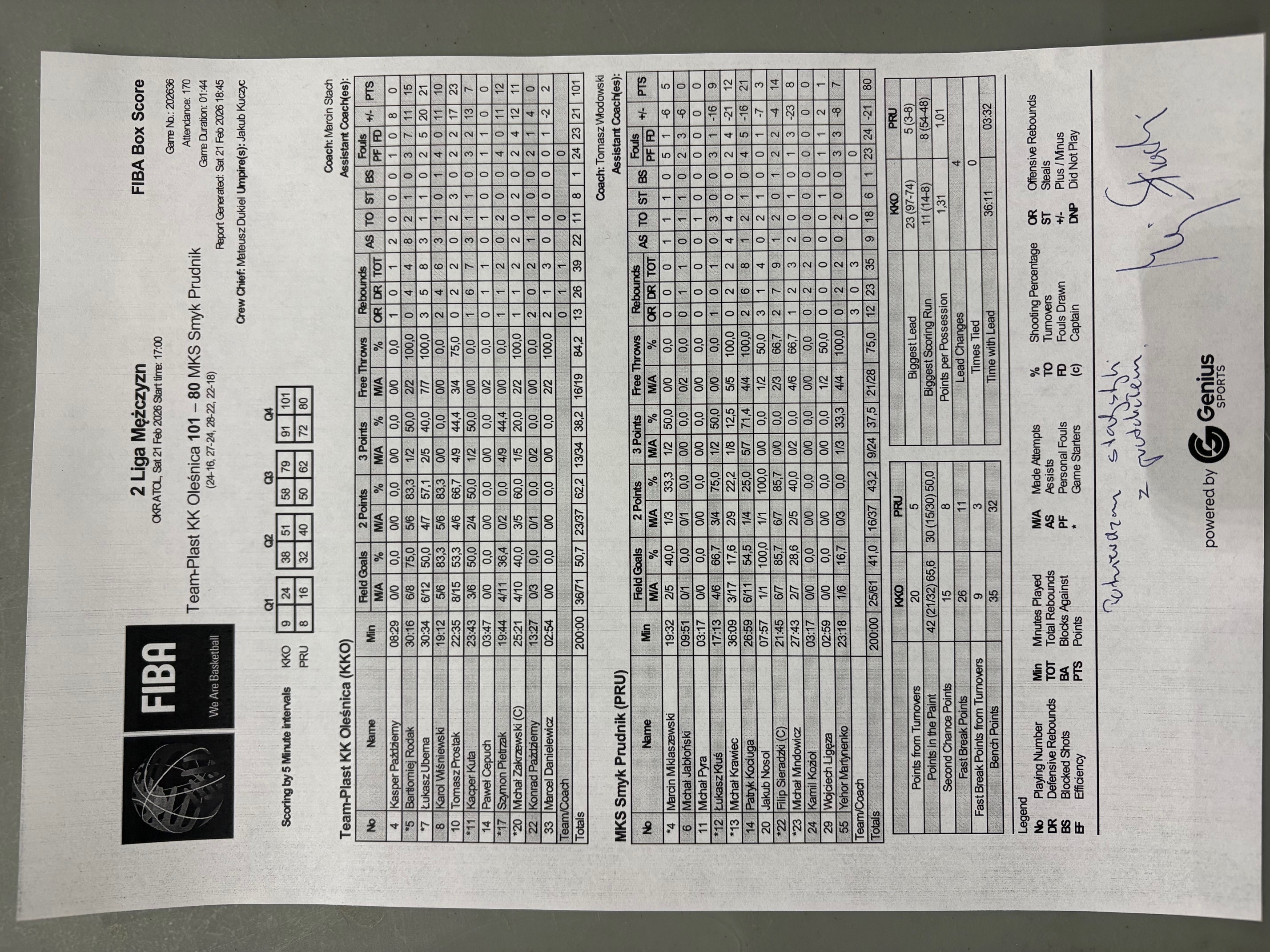 Około 200 widzów w hali Atol a w Oleśnicy było świadkami efektywnej wygranej gospodarzy. Team-Plast KK Oleśnica rozjechał MKS Smyk Prudnik aż 101:80. To 14. zwycięstwo Oleśniczan w tym sezonie.