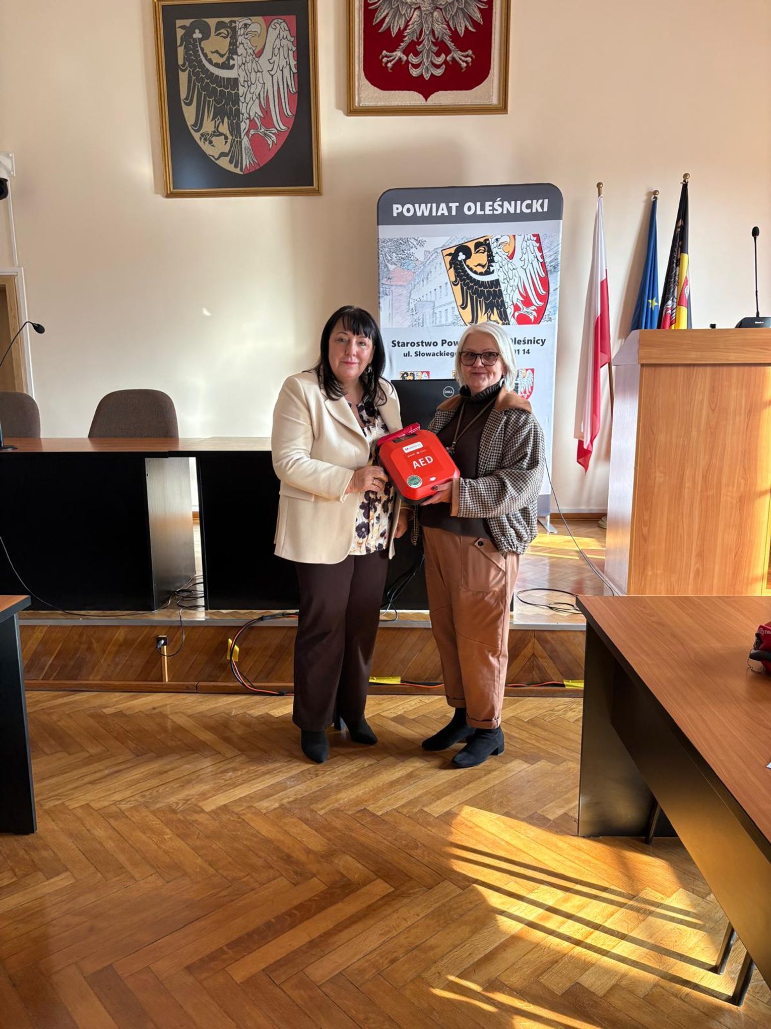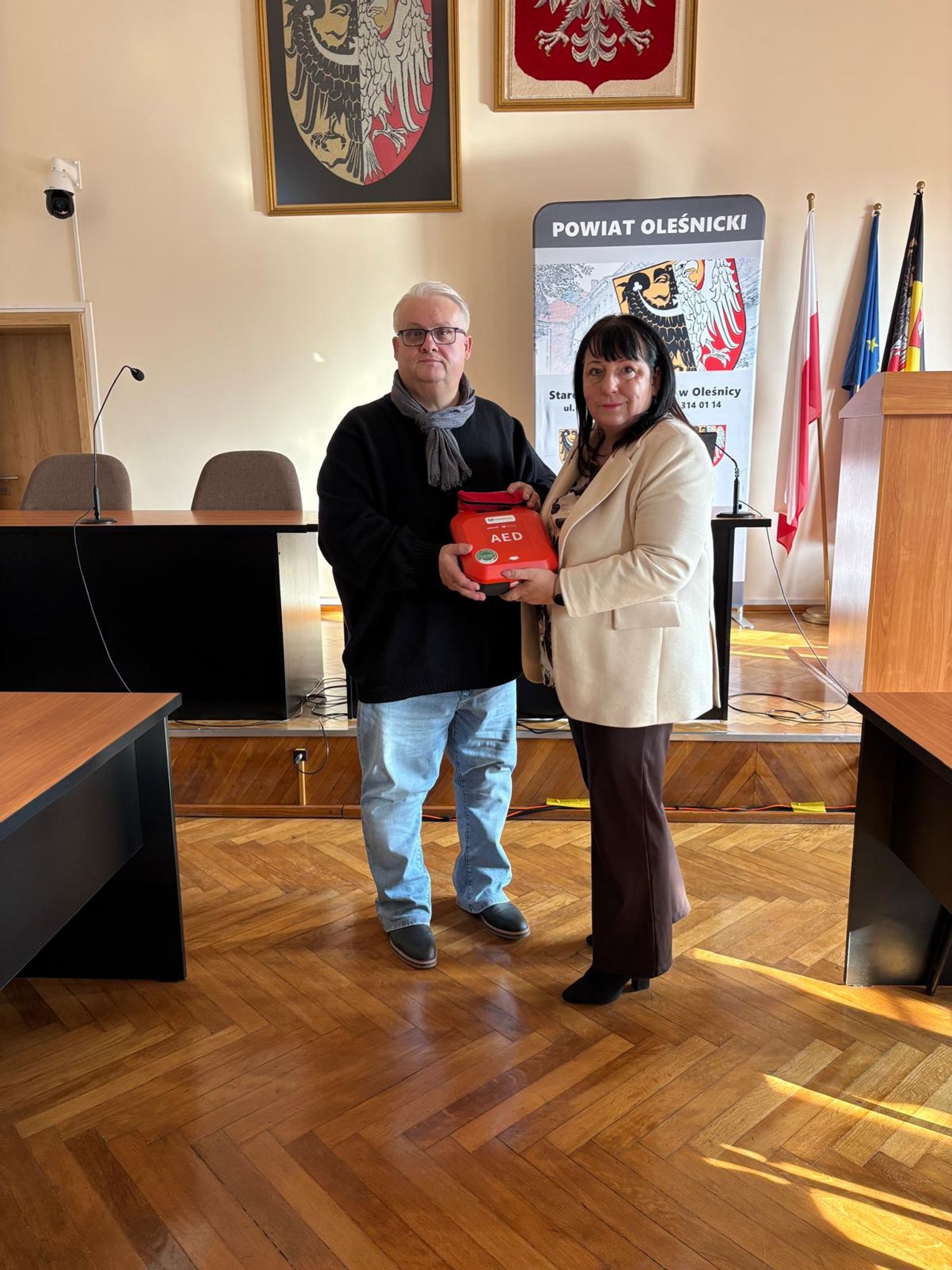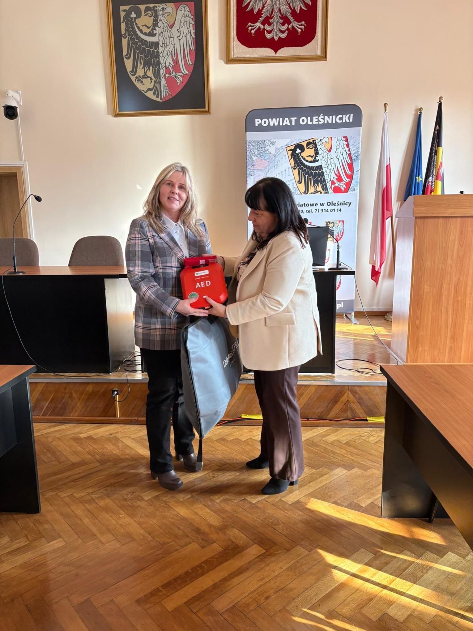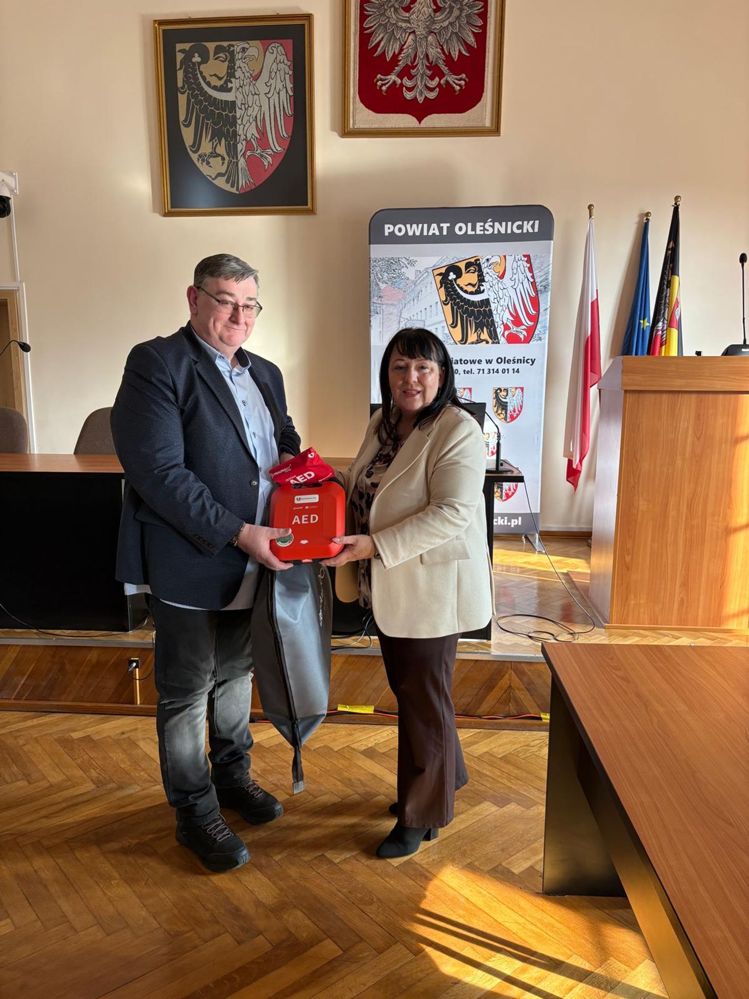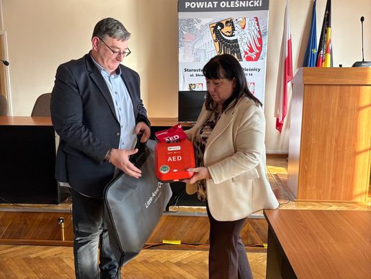 W ramach Programu Ochrony Ludności i Obrony Cywilnej, dzisiaj zostały przekazane defibrylatory oraz fantomy dla szkół i placówek prowadzonych przez Powiat Oleśnicki. Sprzęt wręczyła starosta Wioletta Efinowicz, a odbiorcami byli dyrektorzy poszczególnych szkół, które otrzymały nowe narzędzia do nauki i praktycznego zastosowania pierwszej pomocy.