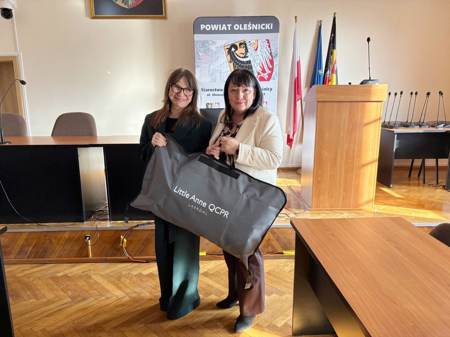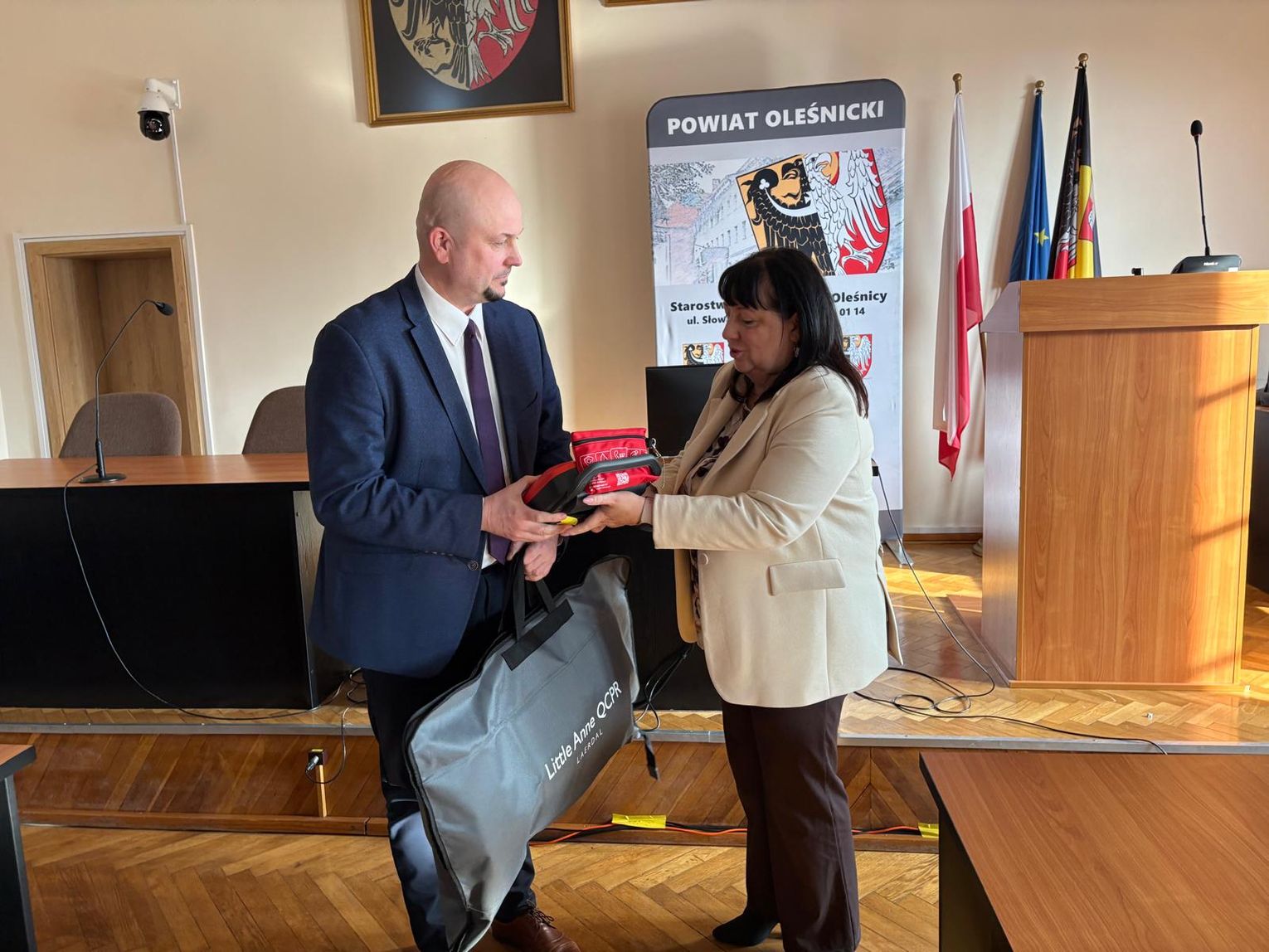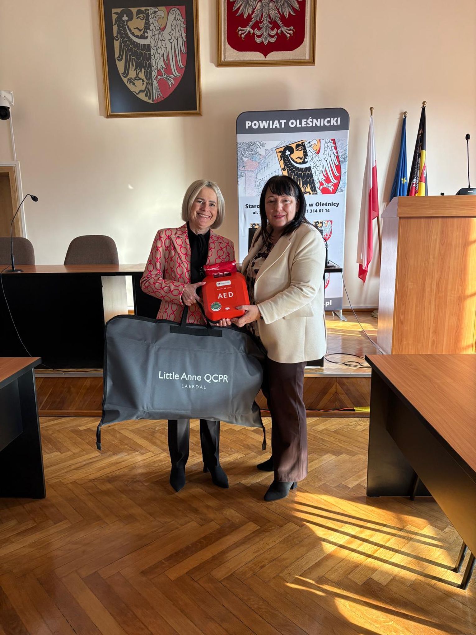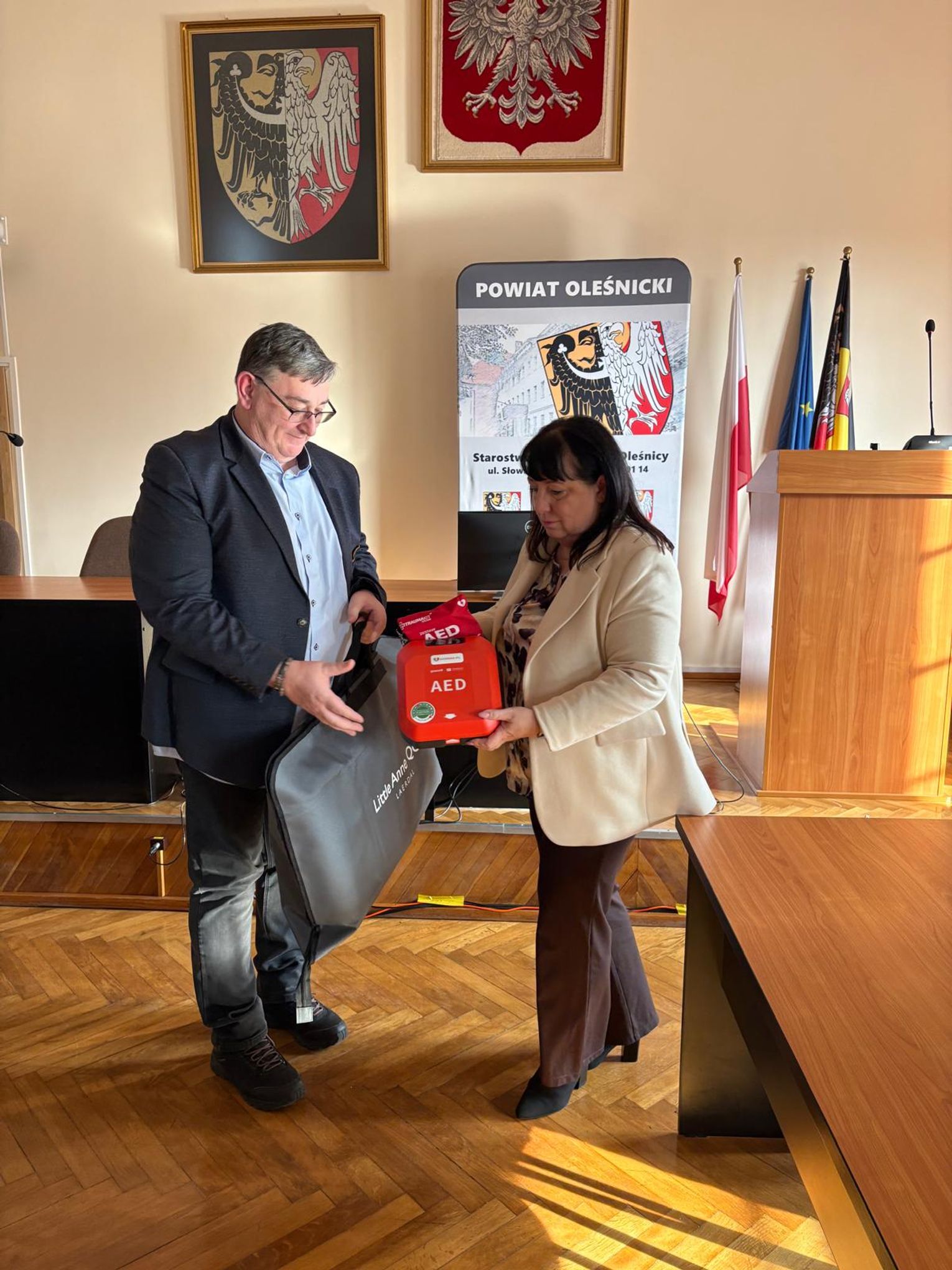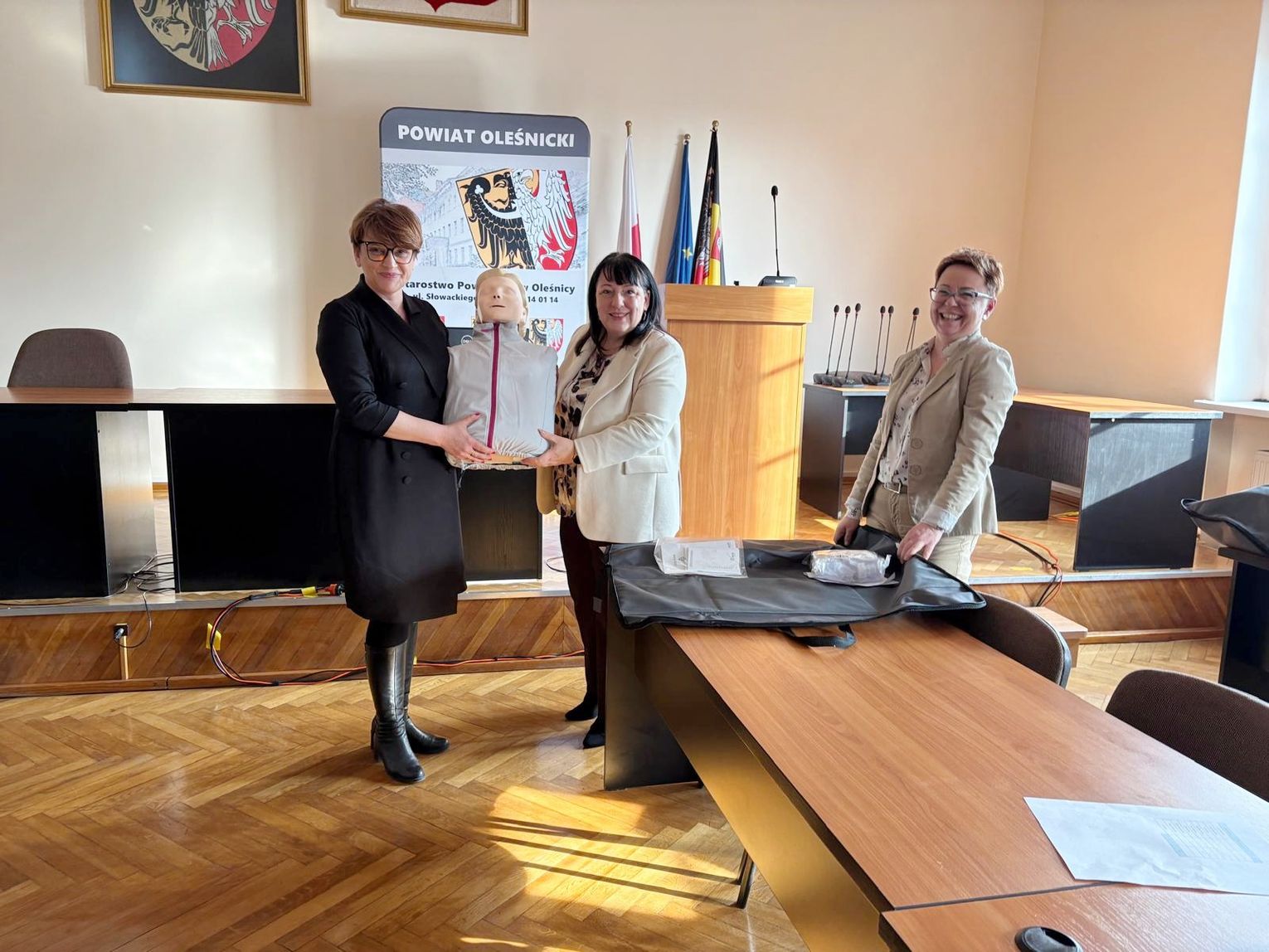 W ramach Programu Ochrony Ludności i Obrony Cywilnej, dzisiaj zostały przekazane defibrylatory oraz fantomy dla szkół i placówek prowadzonych przez Powiat Oleśnicki. Sprzęt wręczyła starosta Wioletta Efinowicz, a odbiorcami byli dyrektorzy poszczególnych szkół, które otrzymały nowe narzędzia do nauki i praktycznego zastosowania pierwszej pomocy.