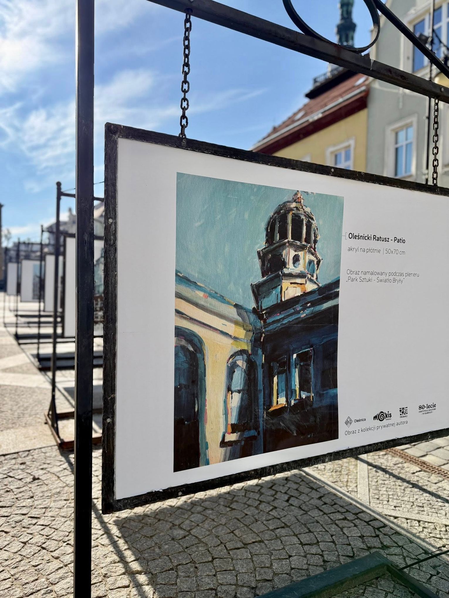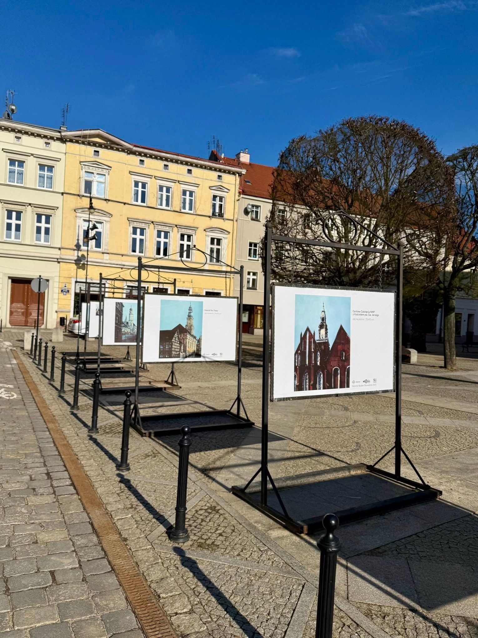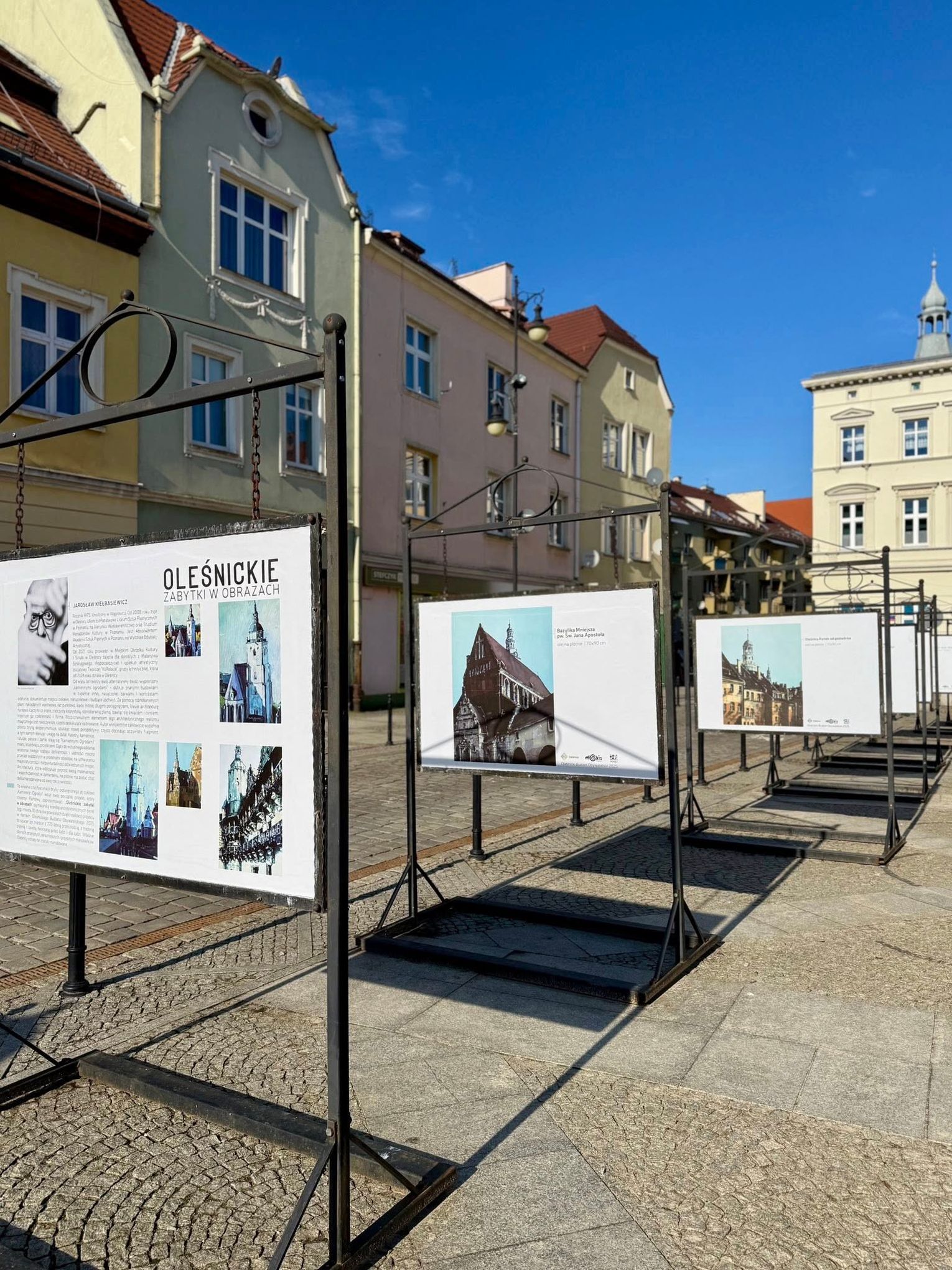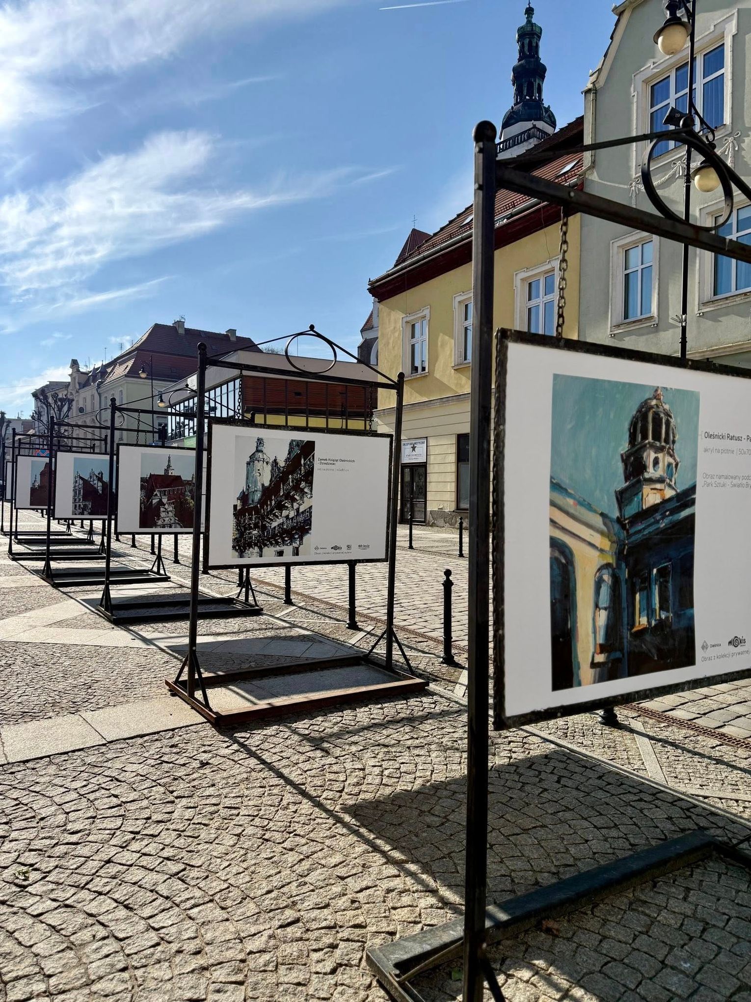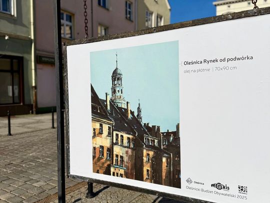 W słonecznym, już niemal wiosennym, otoczeniu oleśnickiego Rynku od dziś dostępna jest plenerowa wystawa wieńcząca projekt zrealizowany dzięki Oleśnickiemu Budżetowi Obywatelskiemu 2025. Prezentowane prace to reprodukcje obrazów z cyklu „Oleśnickie Zabytki w Obrazach” autorstwa lokalnego artysty Jarosława Kiełbasiewicza.