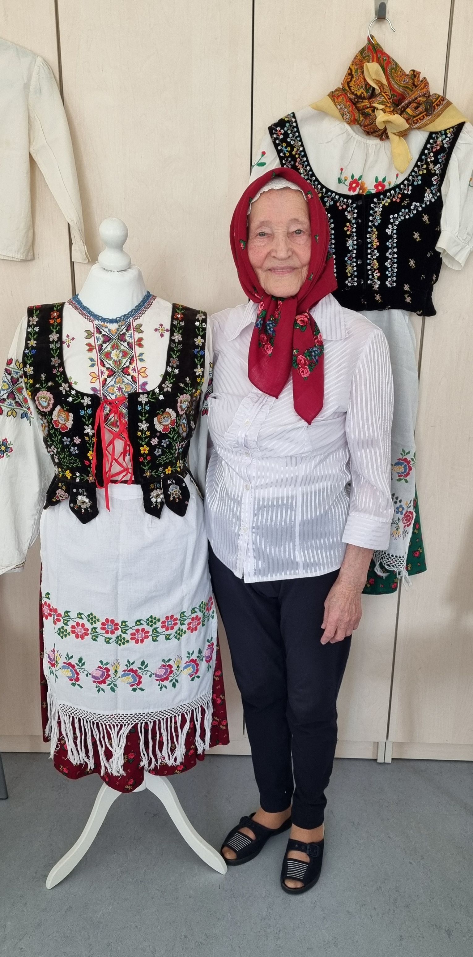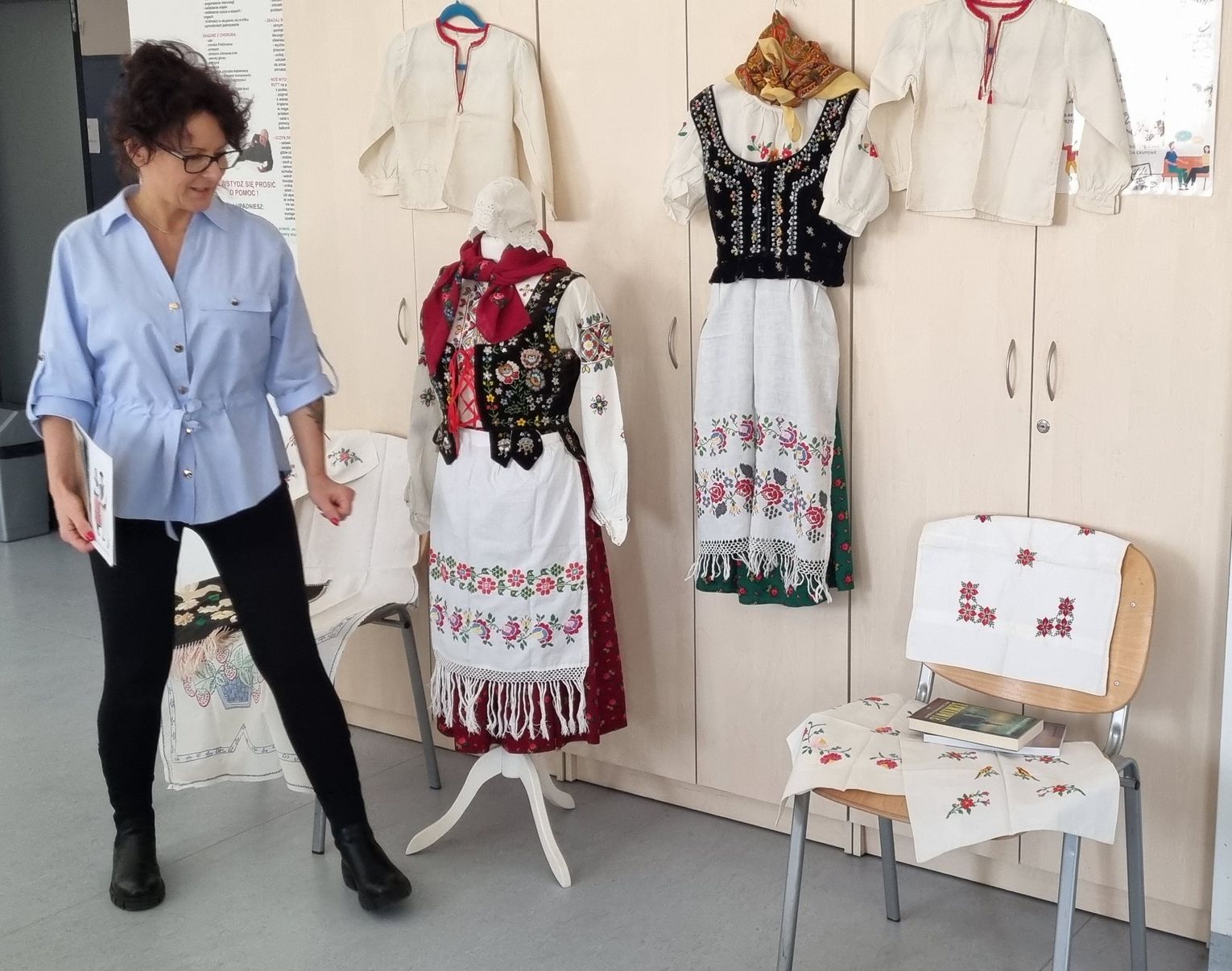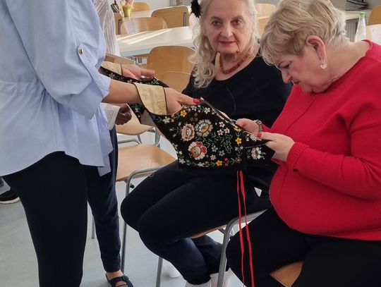 Największe emocje wzbudziła jednak część poświęcona kulturze materialnej. Uczestnicy mieli niepowtarzalną okazję obejrzeć z bliska oryginalne, ponad 100-letnie łemkowskie stroje kobiece: