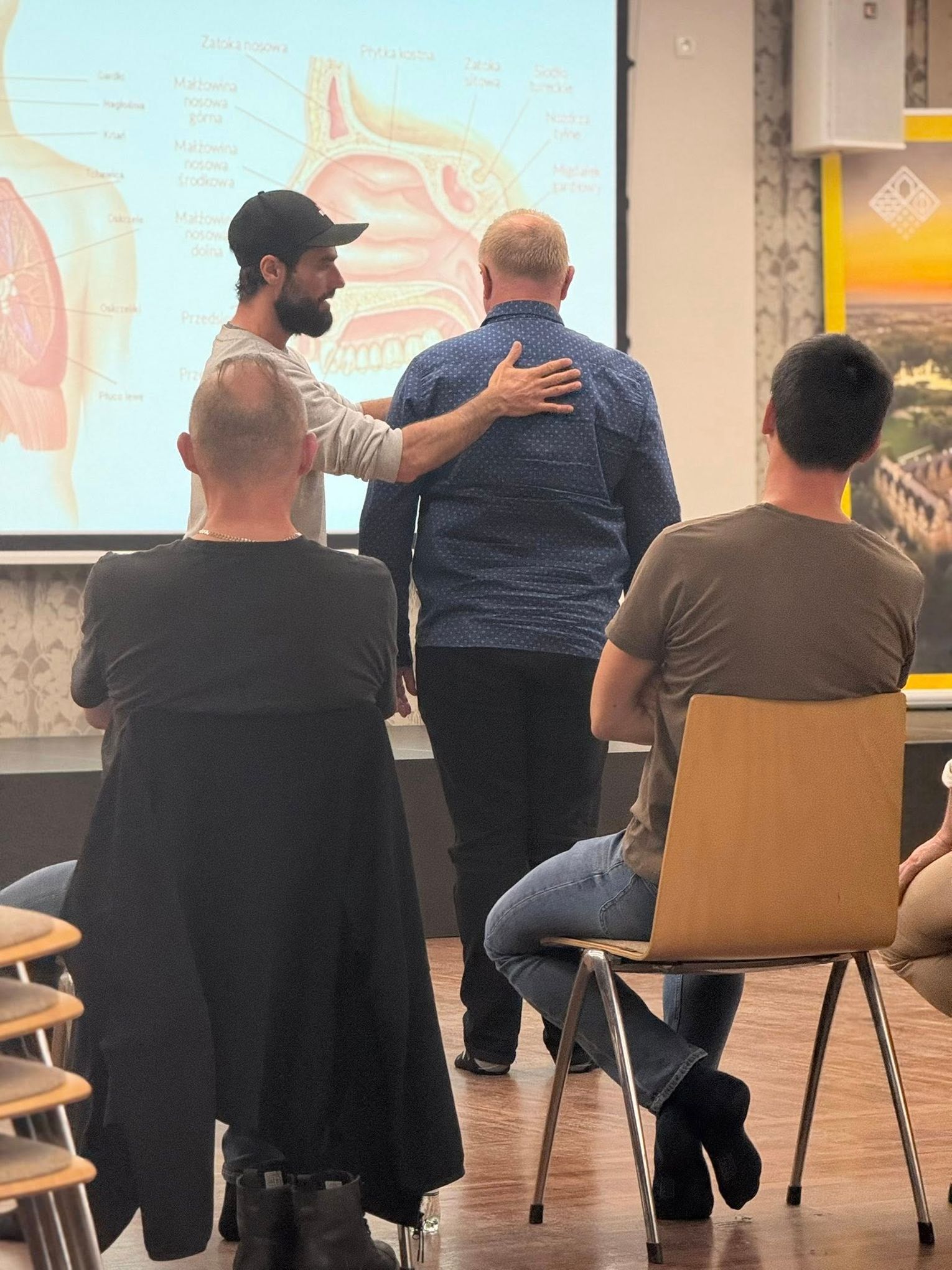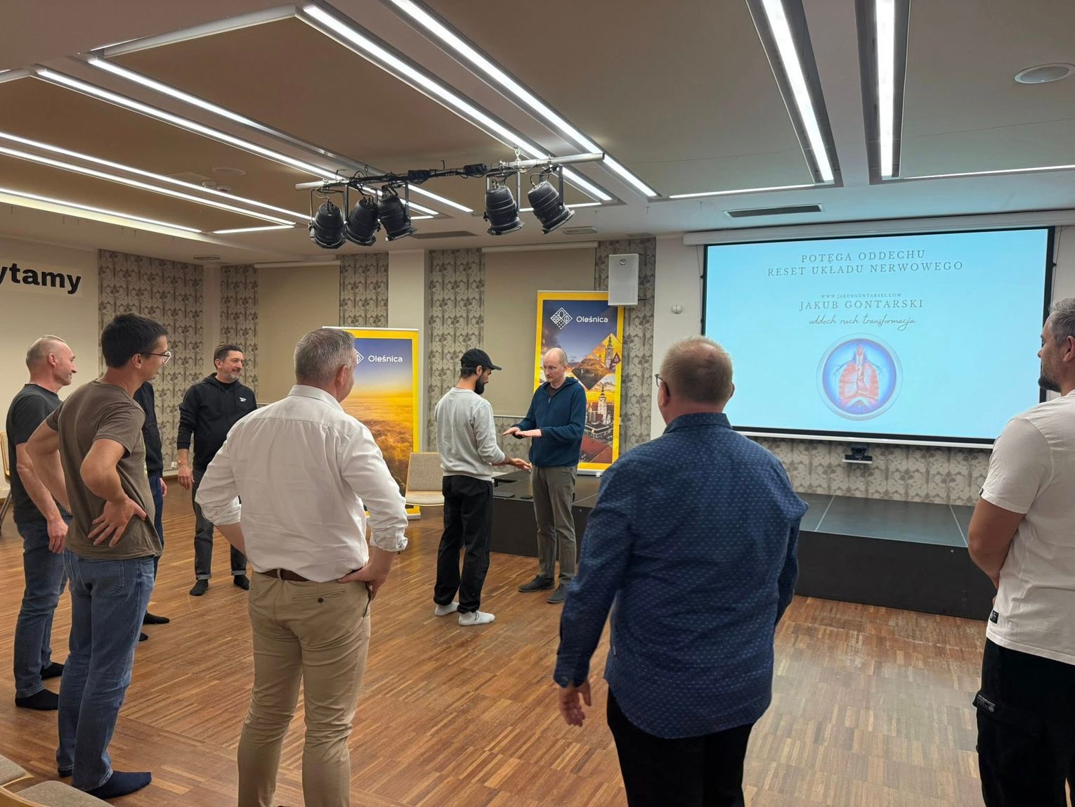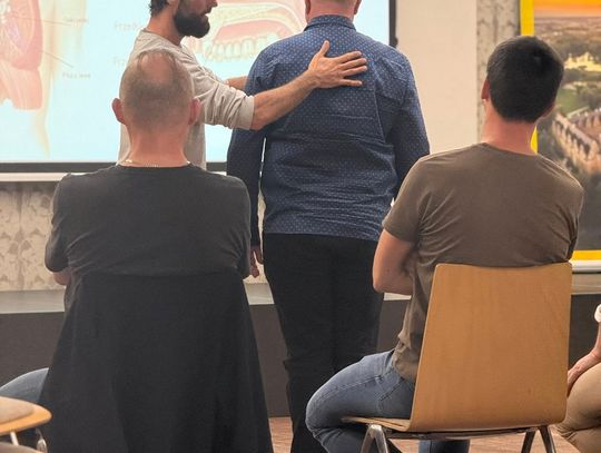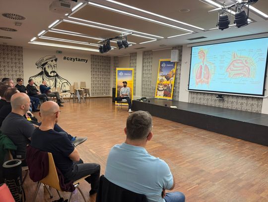 Uczestnicy spotkali się z certyfikowanym terapeutą i trenerem świadomego oddechu, Jakubem Gontarskim z Instytutu Oddechu i Ciała. Celem spotkania było nauczenie mężczyzn prawidłowych wzorców oddechowych oraz metod redukcji stresu.