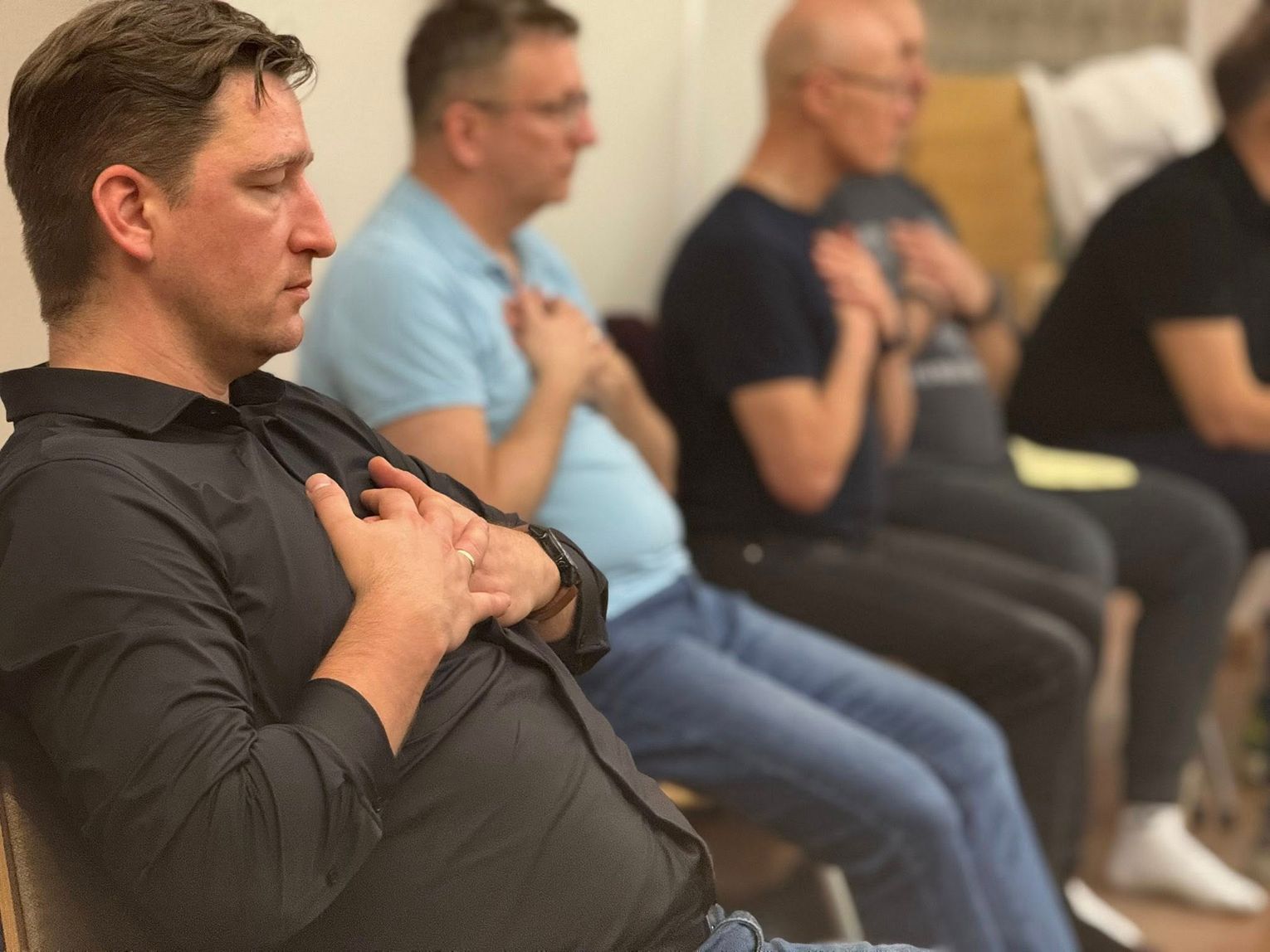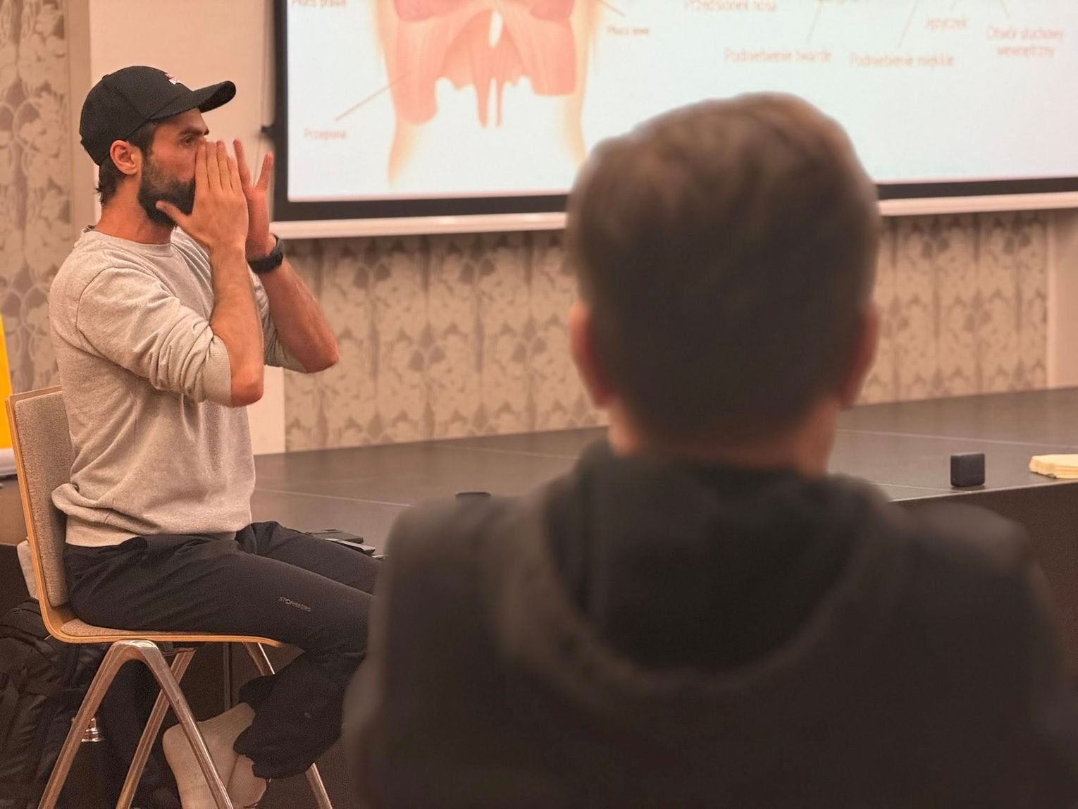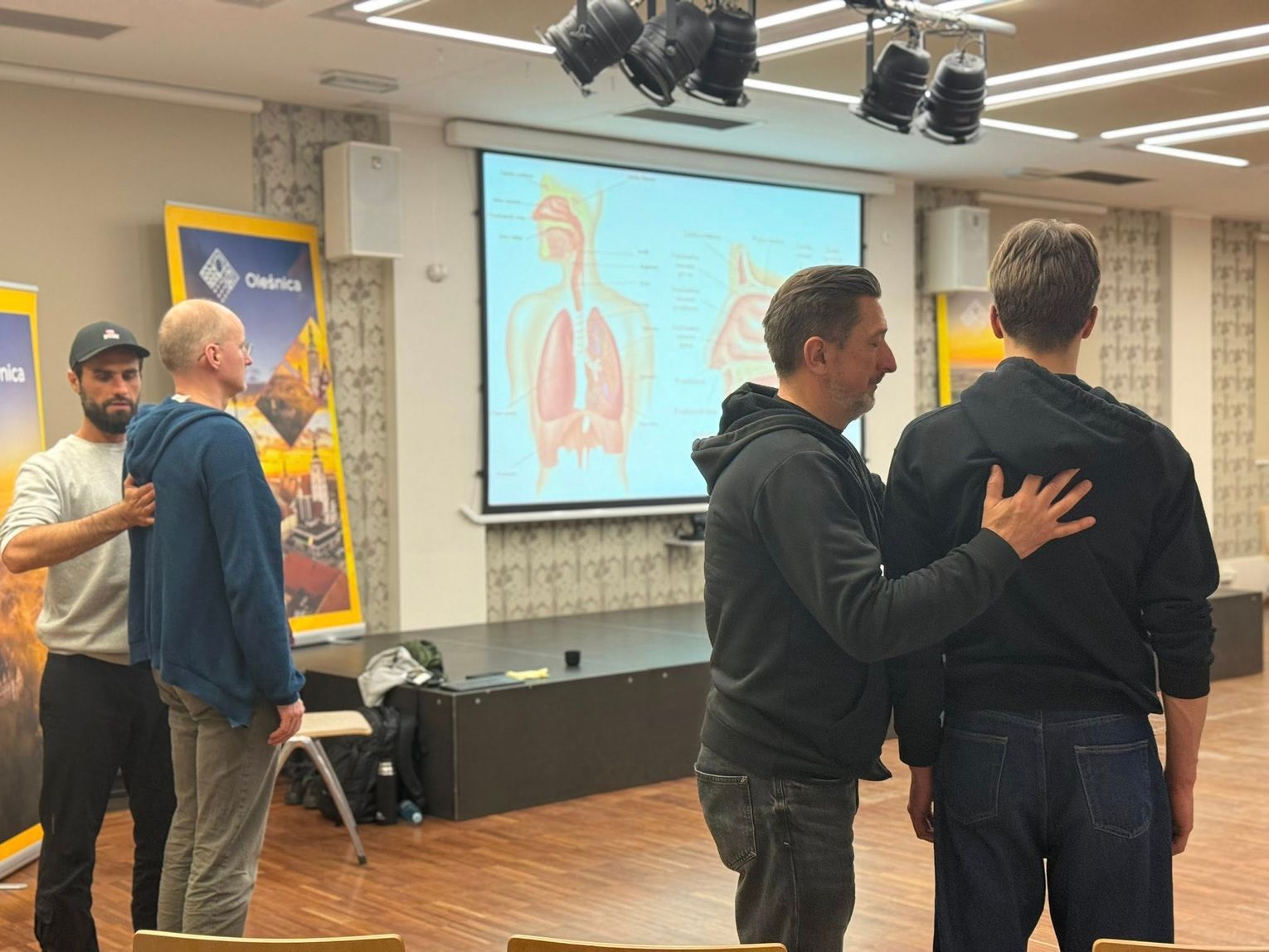 Uczestnicy spotkali się z certyfikowanym terapeutą i trenerem świadomego oddechu, Jakubem Gontarskim z Instytutu Oddechu i Ciała. Celem spotkania było nauczenie mężczyzn prawidłowych wzorców oddechowych oraz metod redukcji stresu.