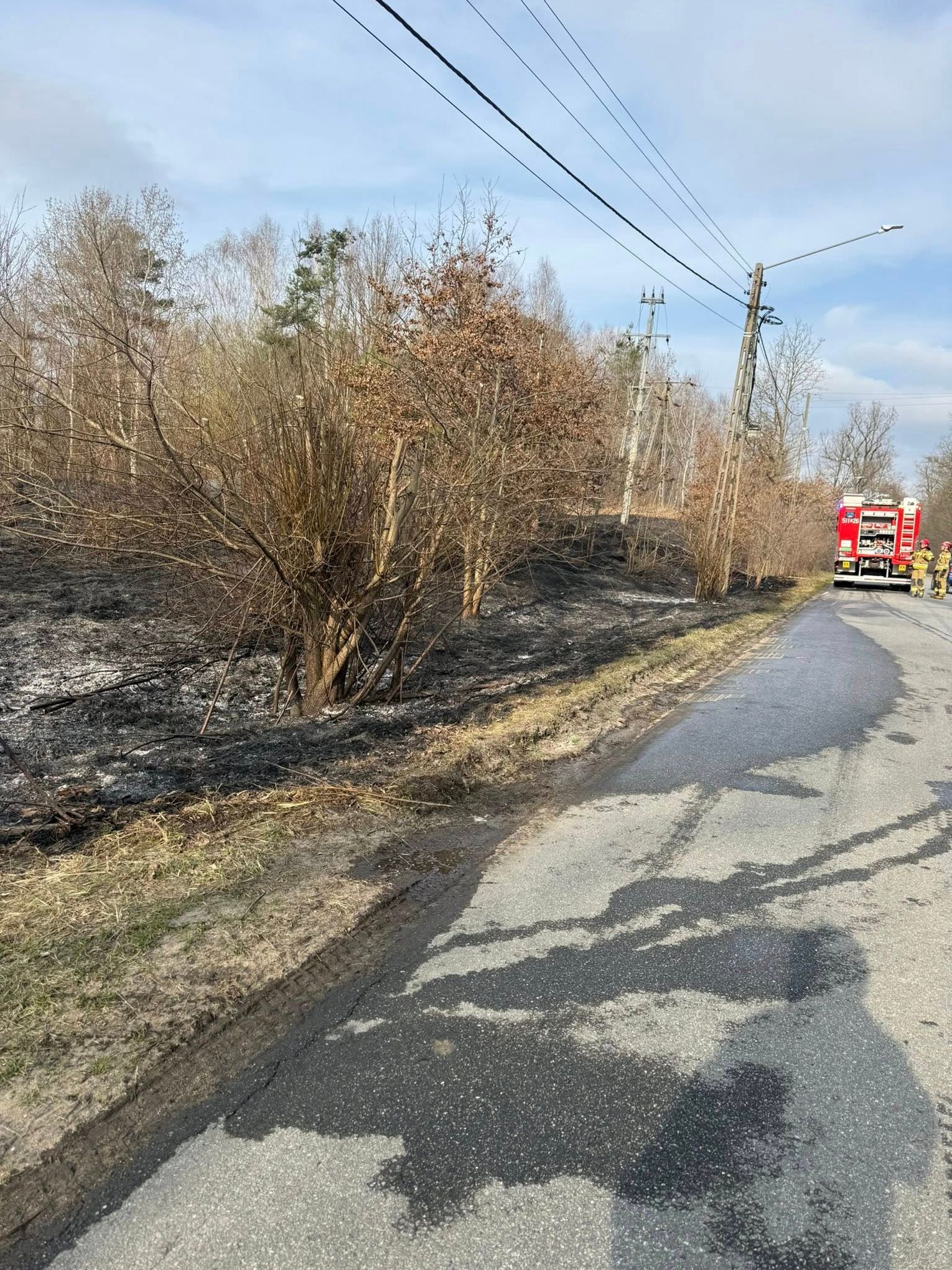 Dzięki sprawnej współpracy wszystkich służb udało się opanować ogień i zapobiec rozprzestrzenieniu pożaru na zabudowania mieszkalne.