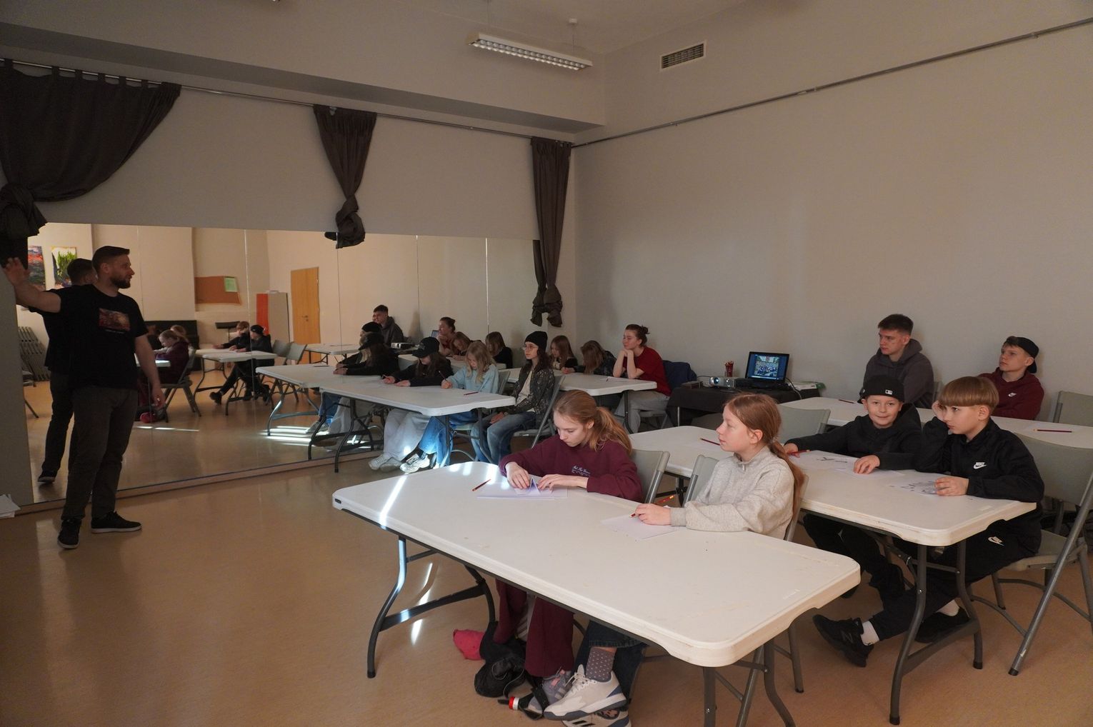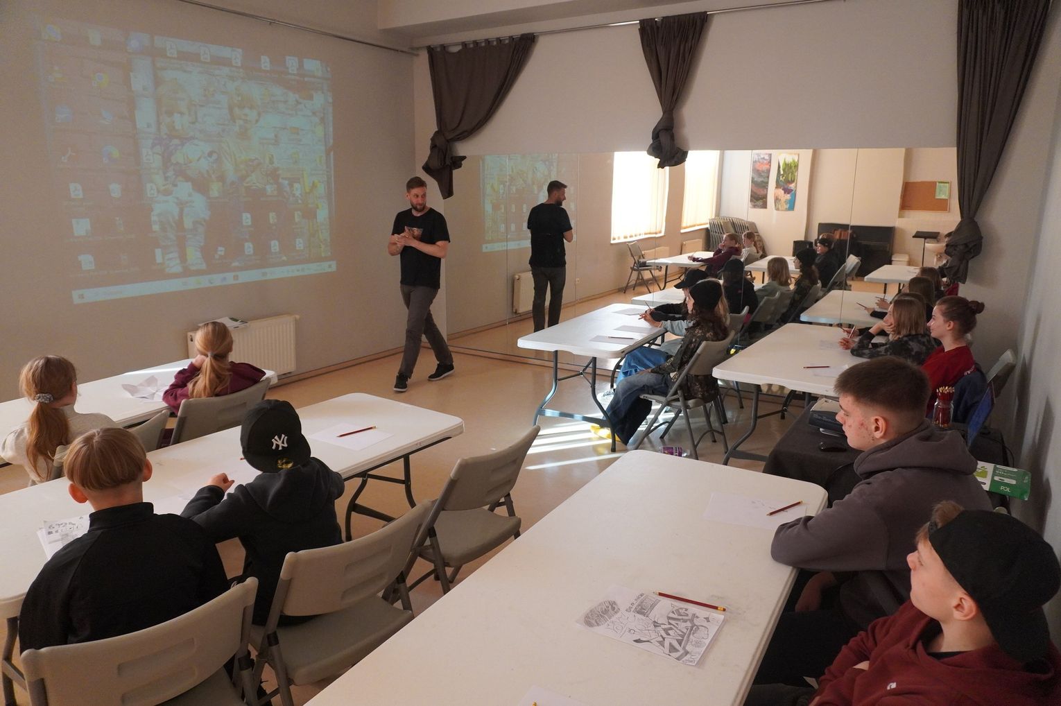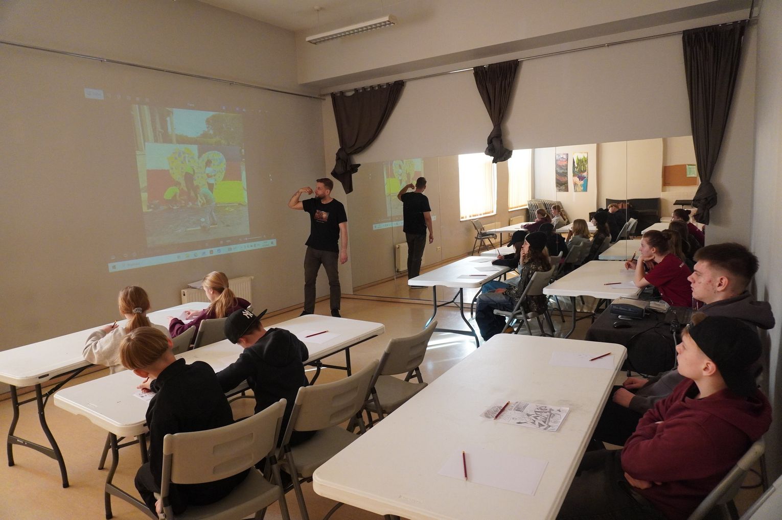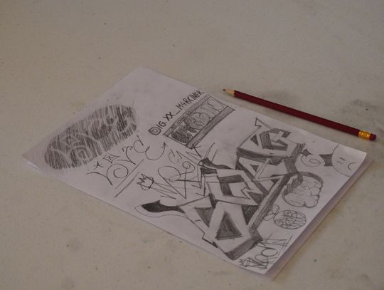W części praktycznej młodzież wykonała pierwsze szkice inspirowane wybranym stylem. Na zakończenie wspólnie omówiono prace i rozmawiano o tym, czym różni się graffiti artystyczne od wandalizmu.