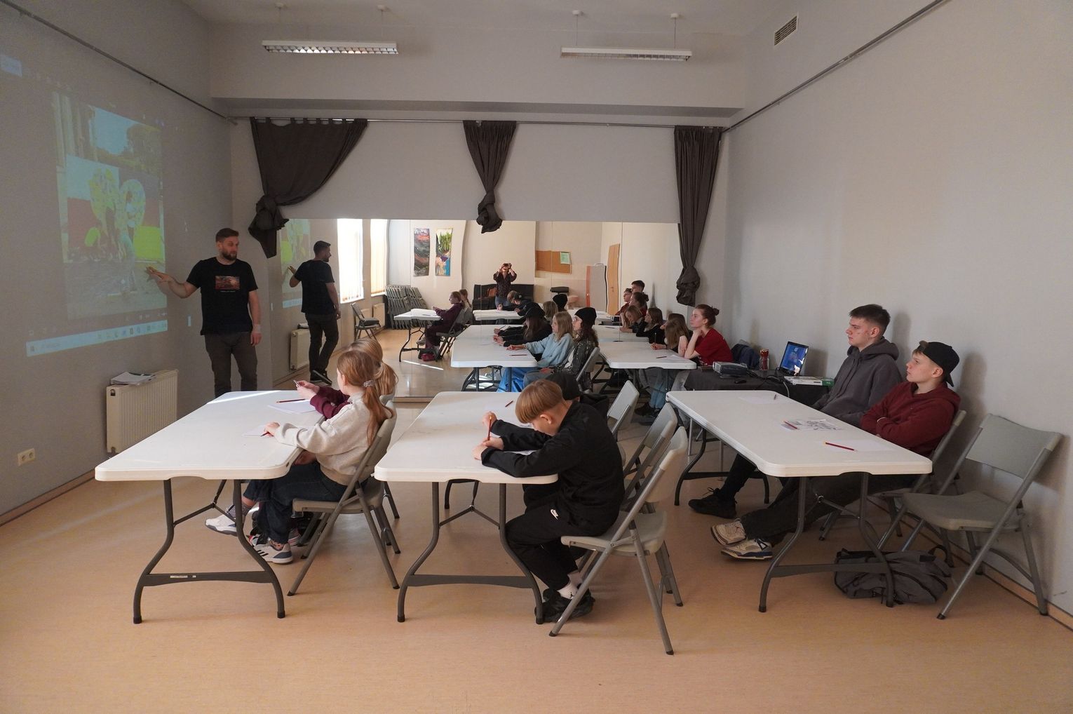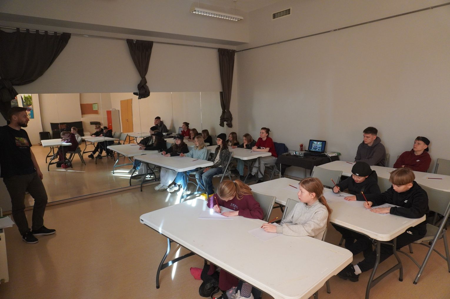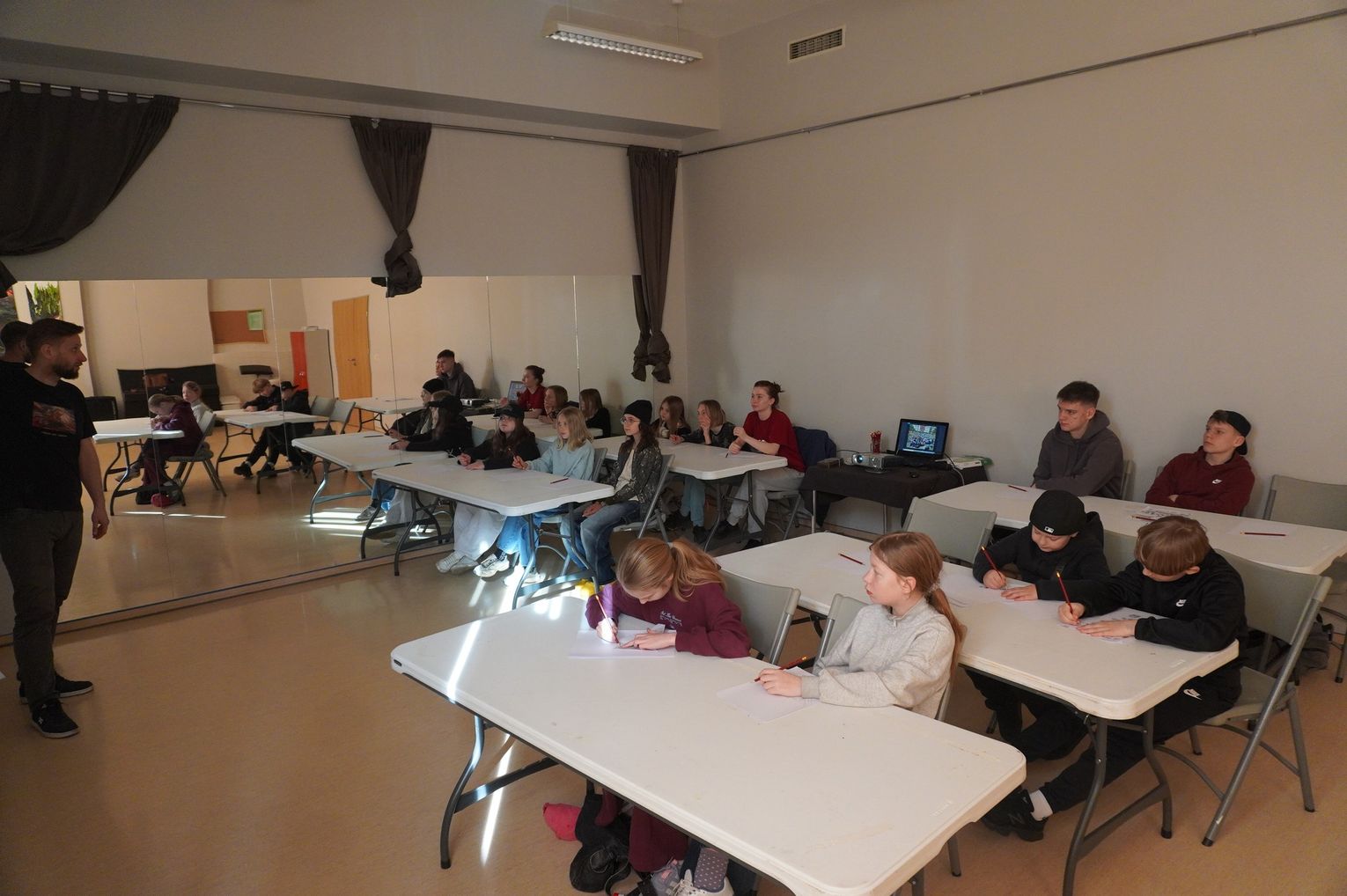 W części praktycznej młodzież wykonała pierwsze szkice inspirowane wybranym stylem. Na zakończenie wspólnie omówiono prace i rozmawiano o tym, czym różni się graffiti artystyczne od wandalizmu.