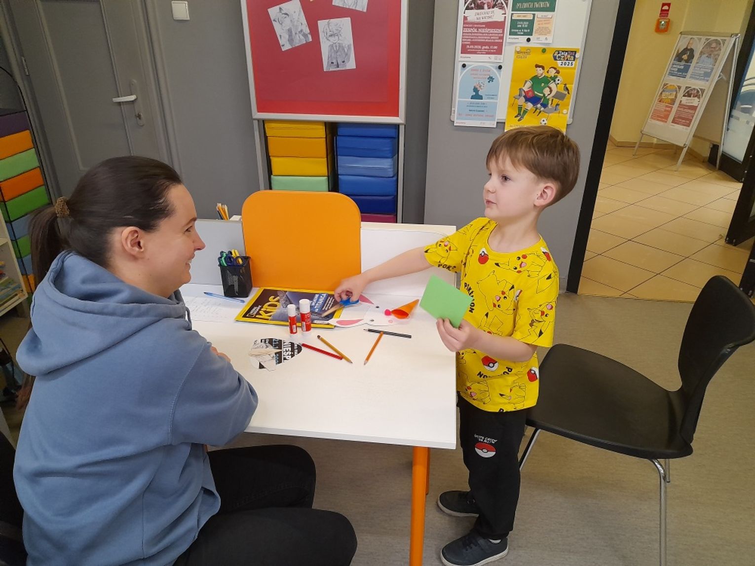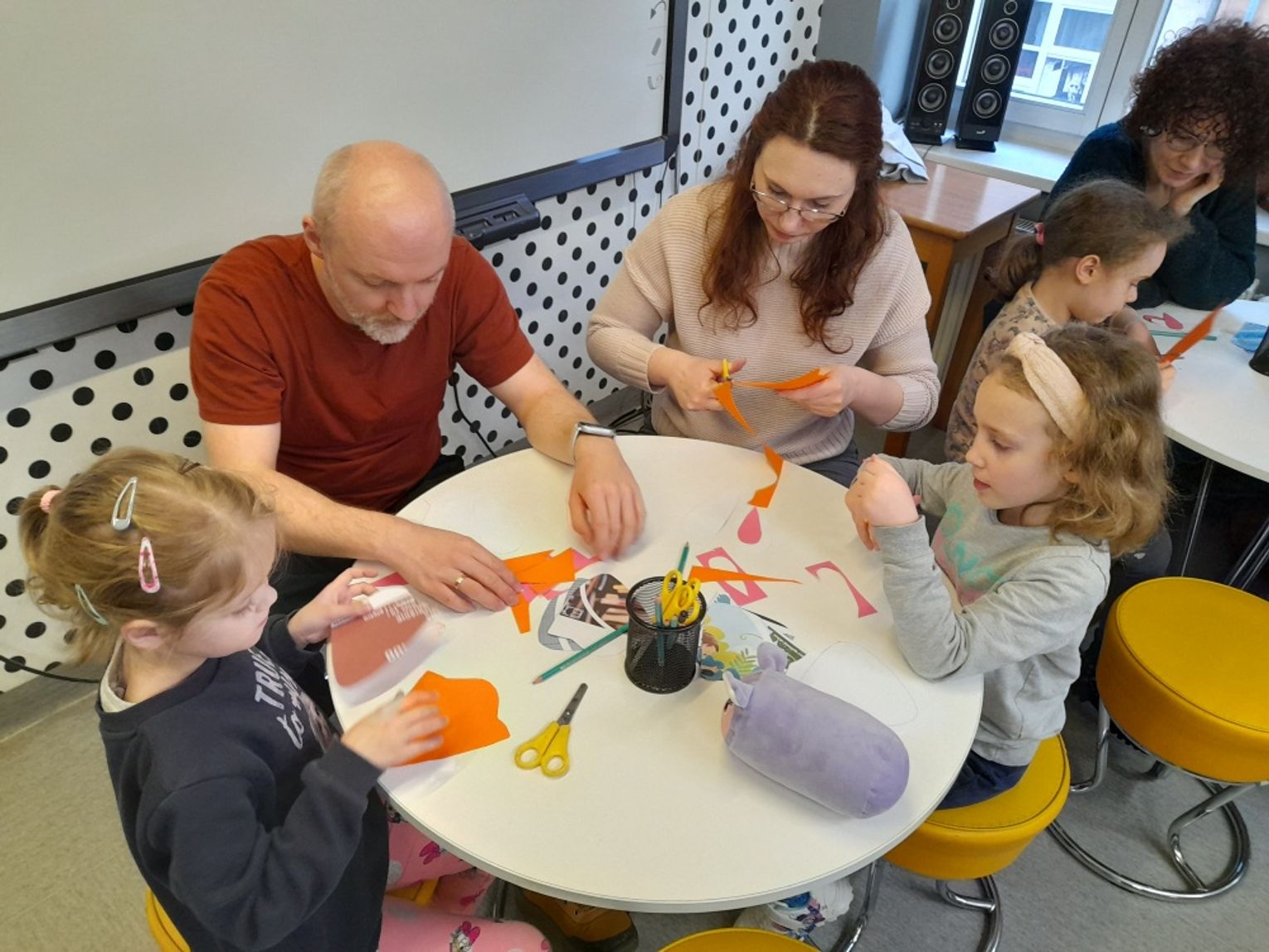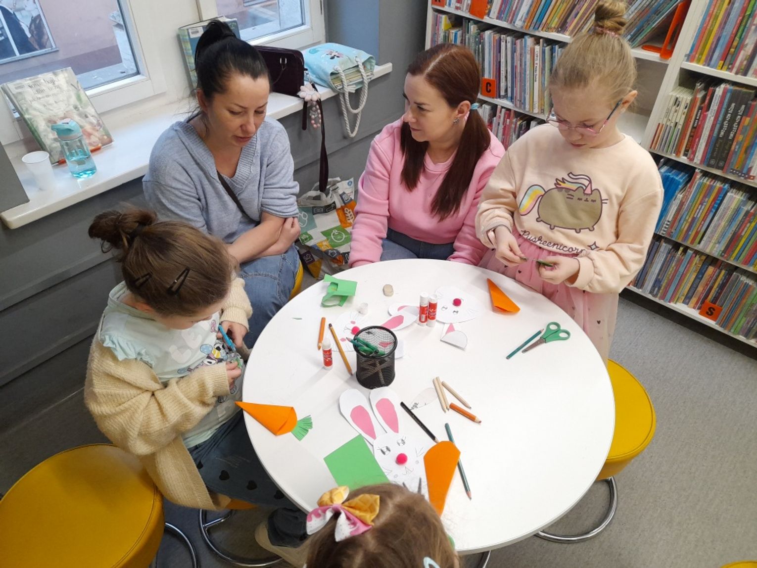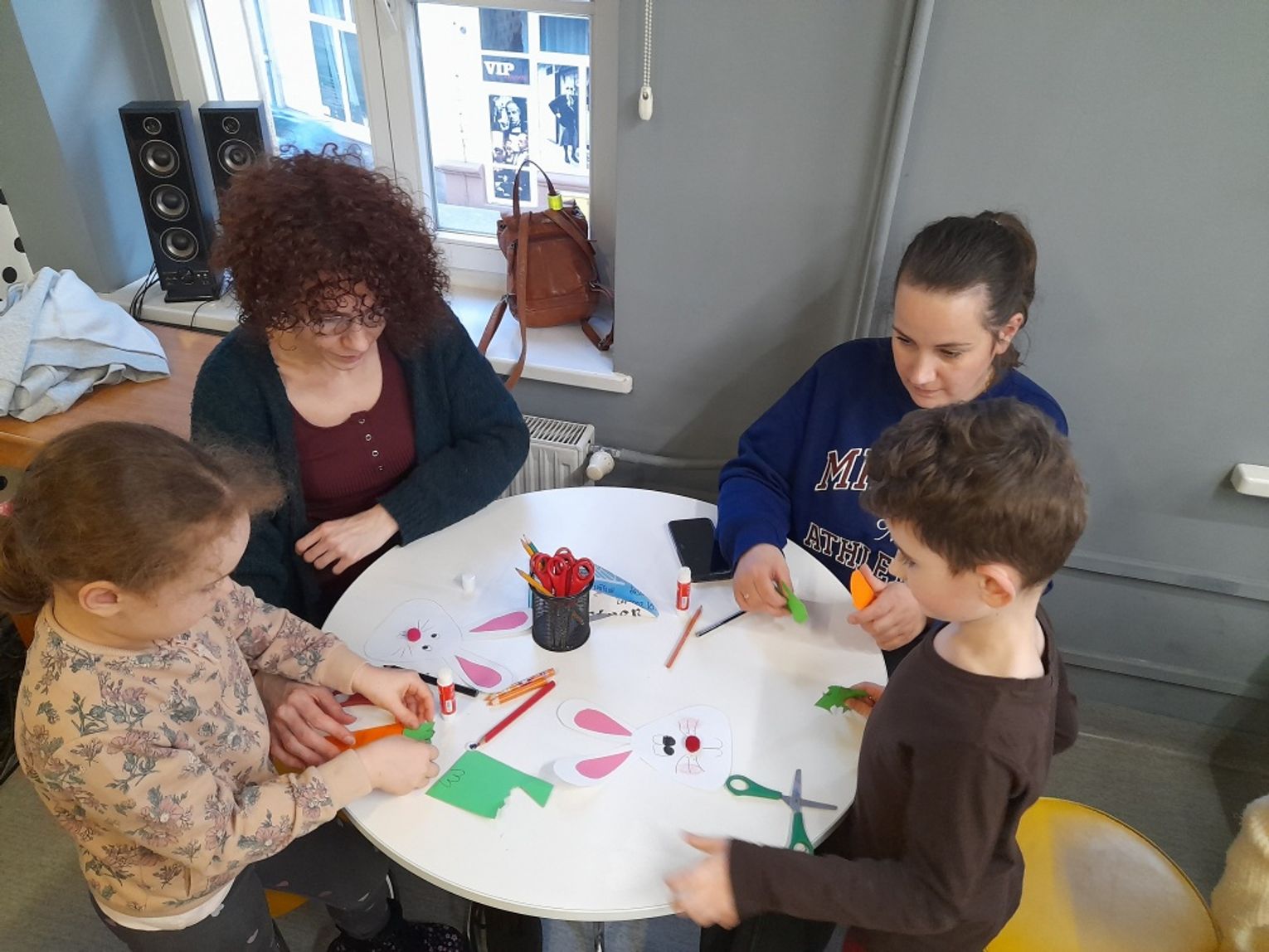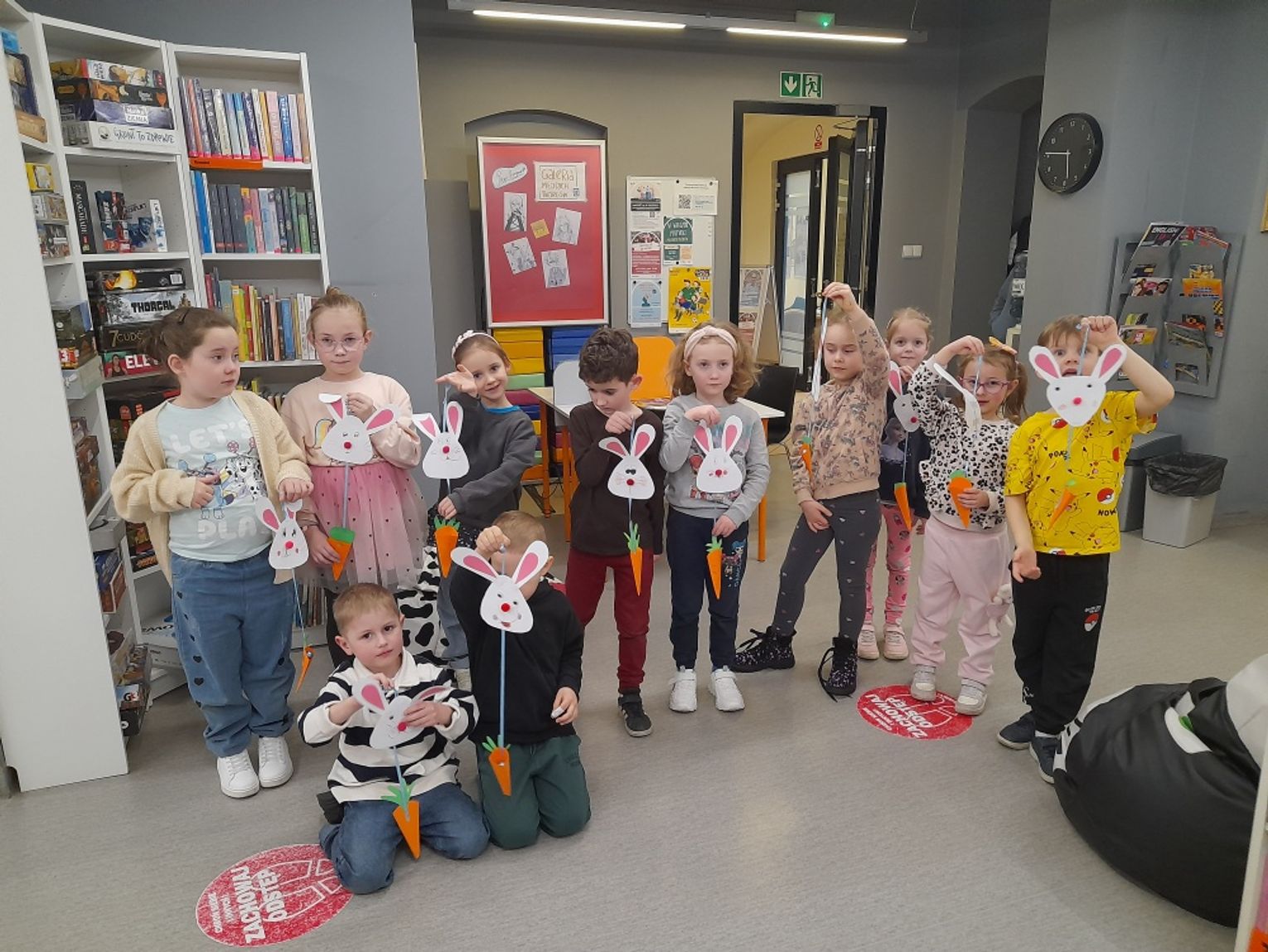 Spotkanie zakończyła praca plastyczna – uczestnicy przygotowali papierowe zajączki z marchewkową kieszonką na kolorowe jajeczko, która sprawiła dzieciom wiele radości i wprowadziła je w świąteczny nastrój.