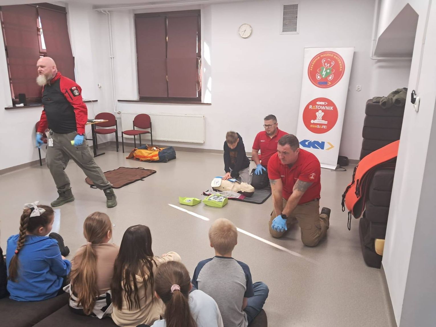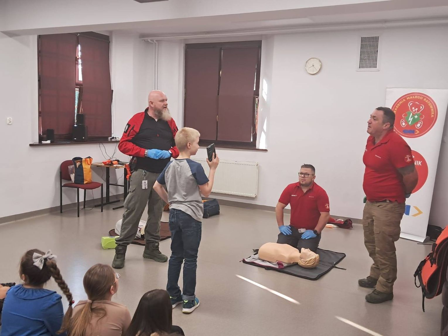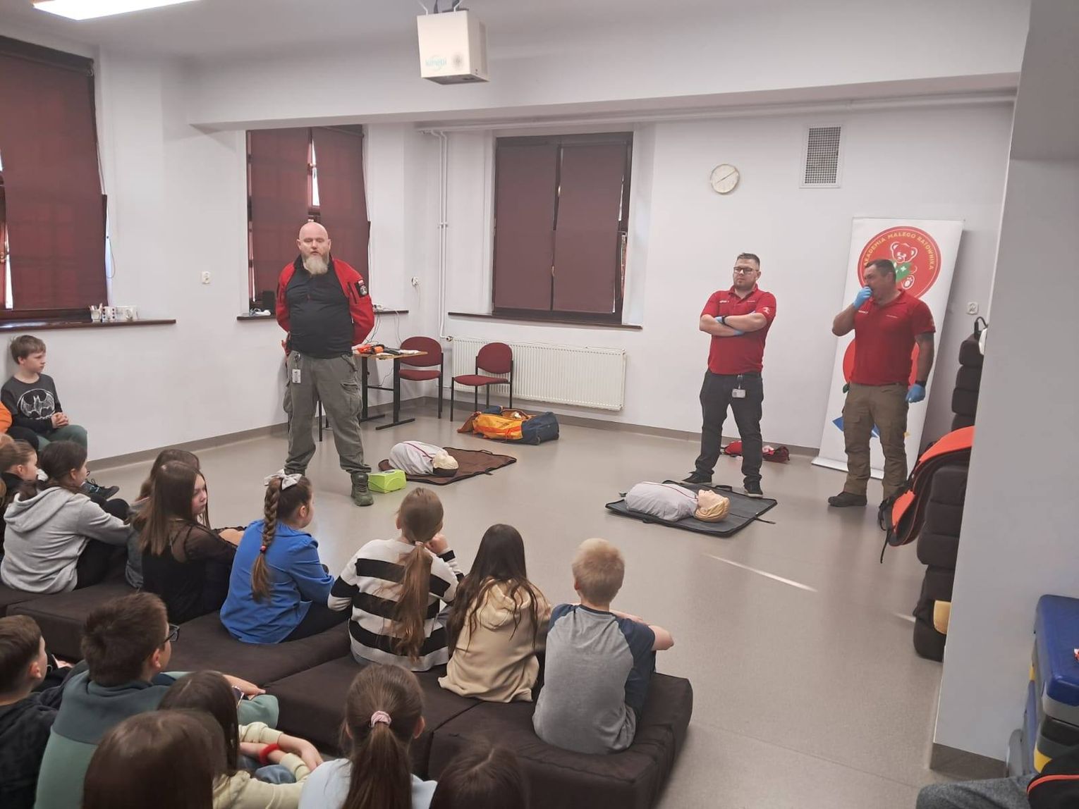 Spotkanie okazało się bardzo wartościowe i praktyczne, pozwalając dzieciom w przystępny sposób zdobyć umiejętności niezbędne w sytuacjach zagrożenia życia. Organizacja warsztatów nie byłaby możliwa bez wsparcia Pana Piotra, taty Ignacego, któremu szkoła serdecznie dziękuje.