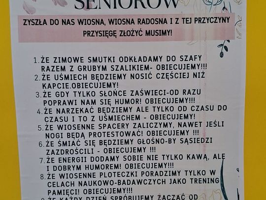 Seniorzy z Dzienny Dom Senior+ w Oleśnicy powitali wiosnę w wyjątkowy sposób – z uśmiechami na twarzach i w pięknych, kolorowych strojach. W trakcie wiosennego spotkania powstał nawet „Traktat – Wiosenna Obietnica Seniorów”, który podkreśla radość i energię uczestników.