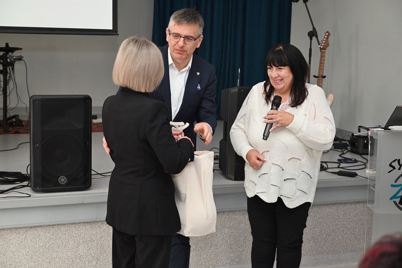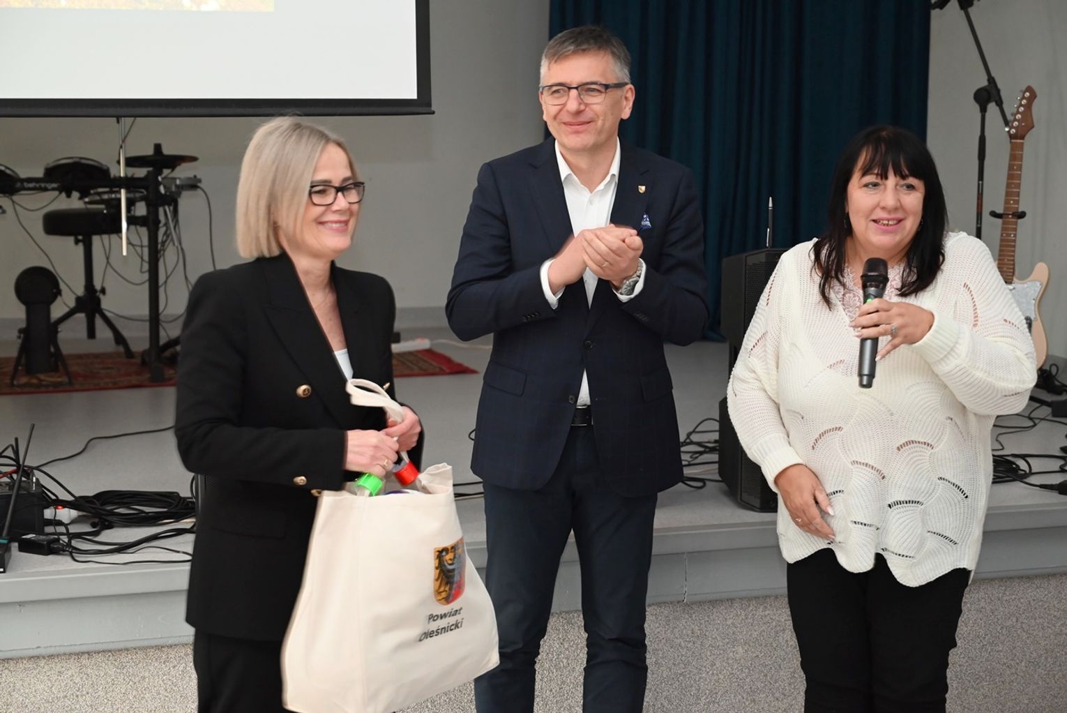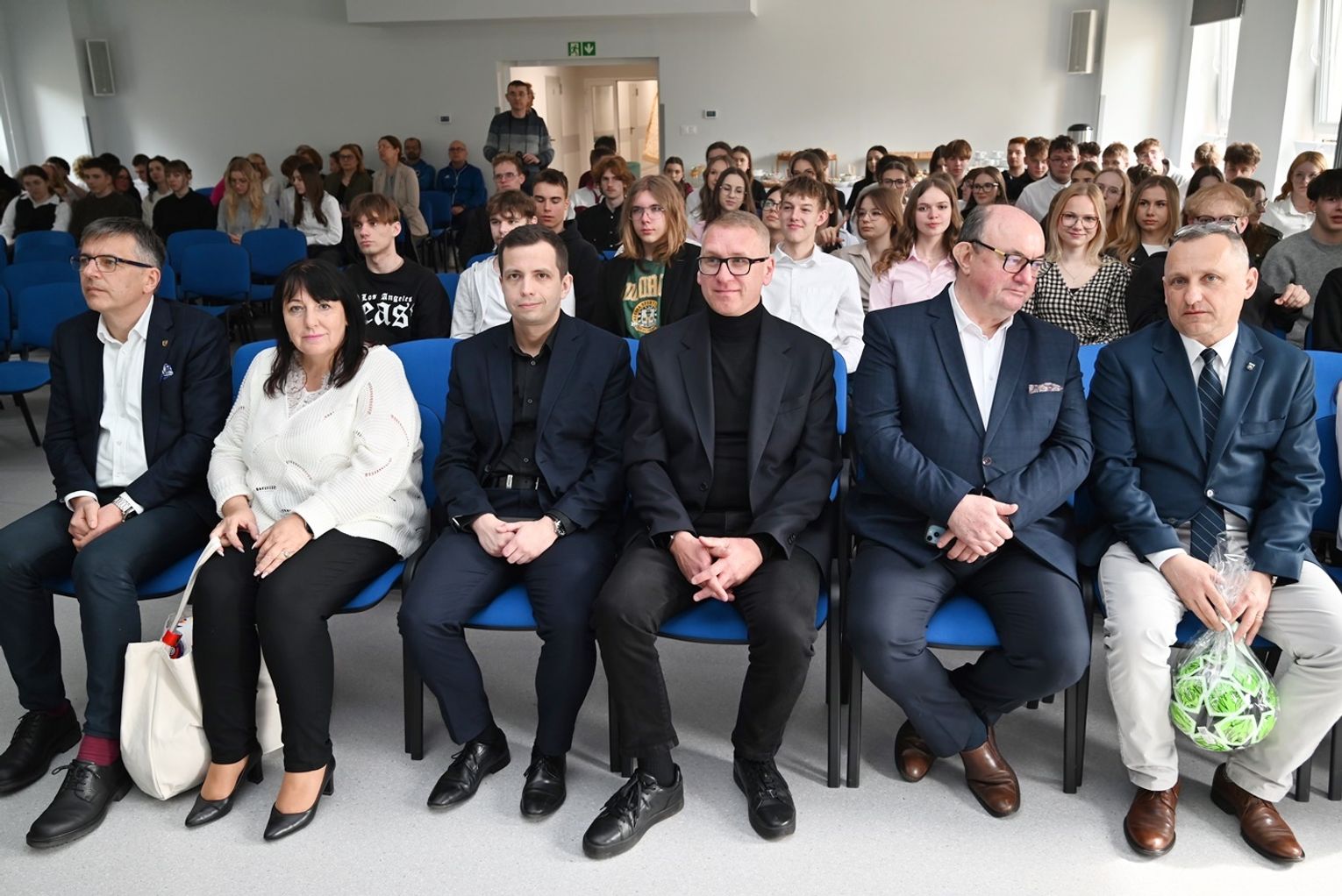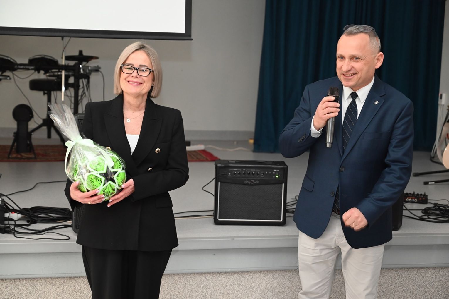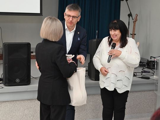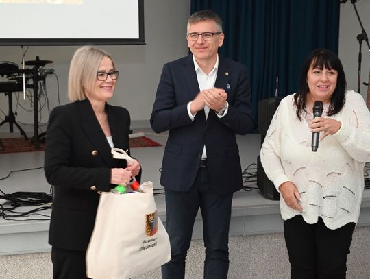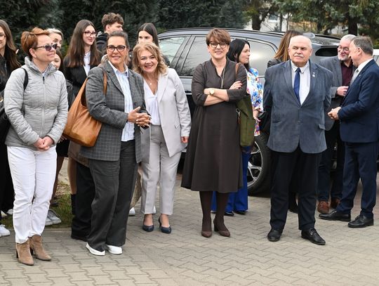– „Dofinansowanie nigdy nie pojawia się automatycznie. Za każdym takim projektem stoi praca wielu ludzi” – podkreśliła dyrektor Mazurek. Starosta Efinowicz przekazała szkołom sprzęt sportowy z życzeniem, by był często używany.