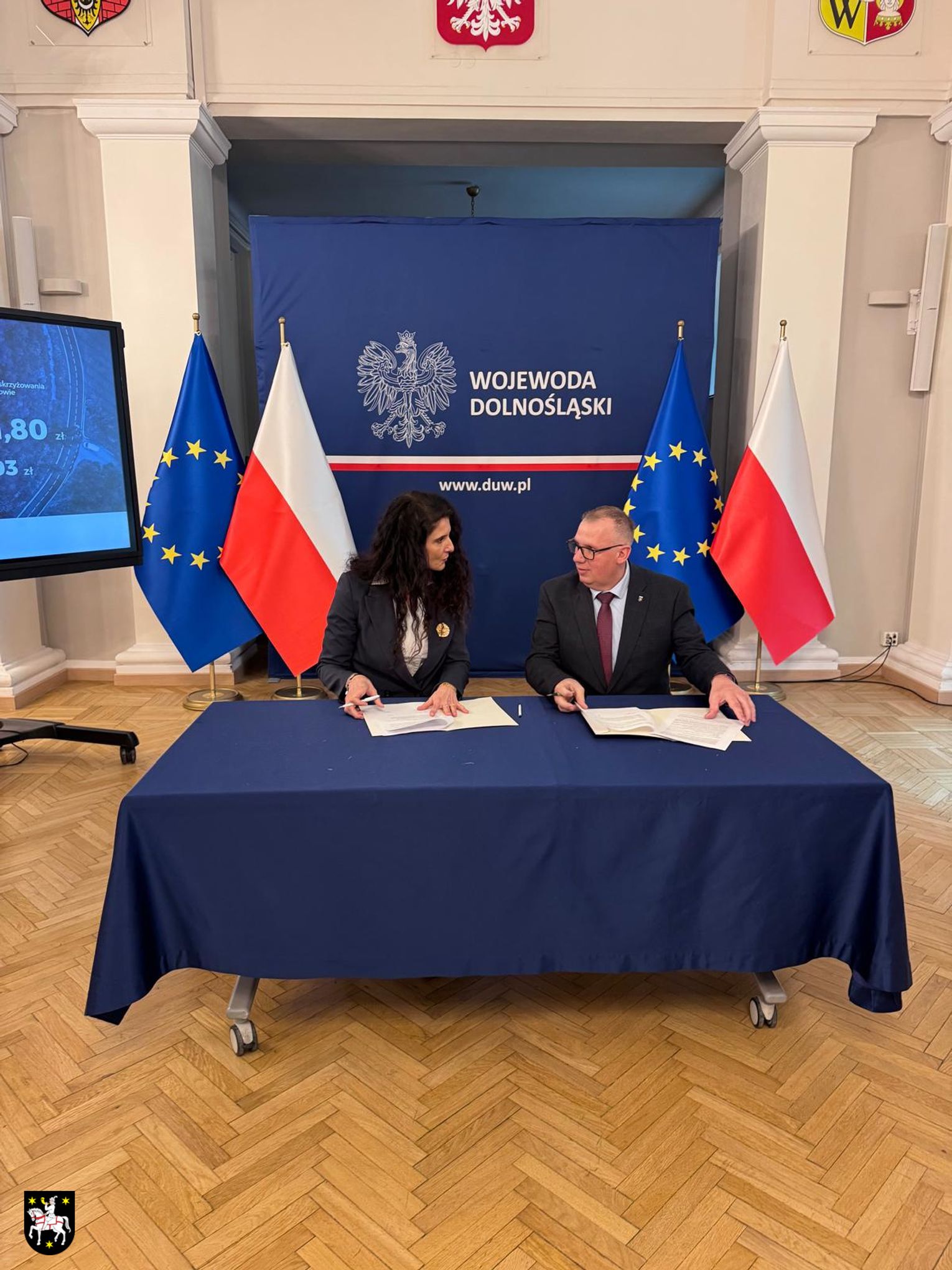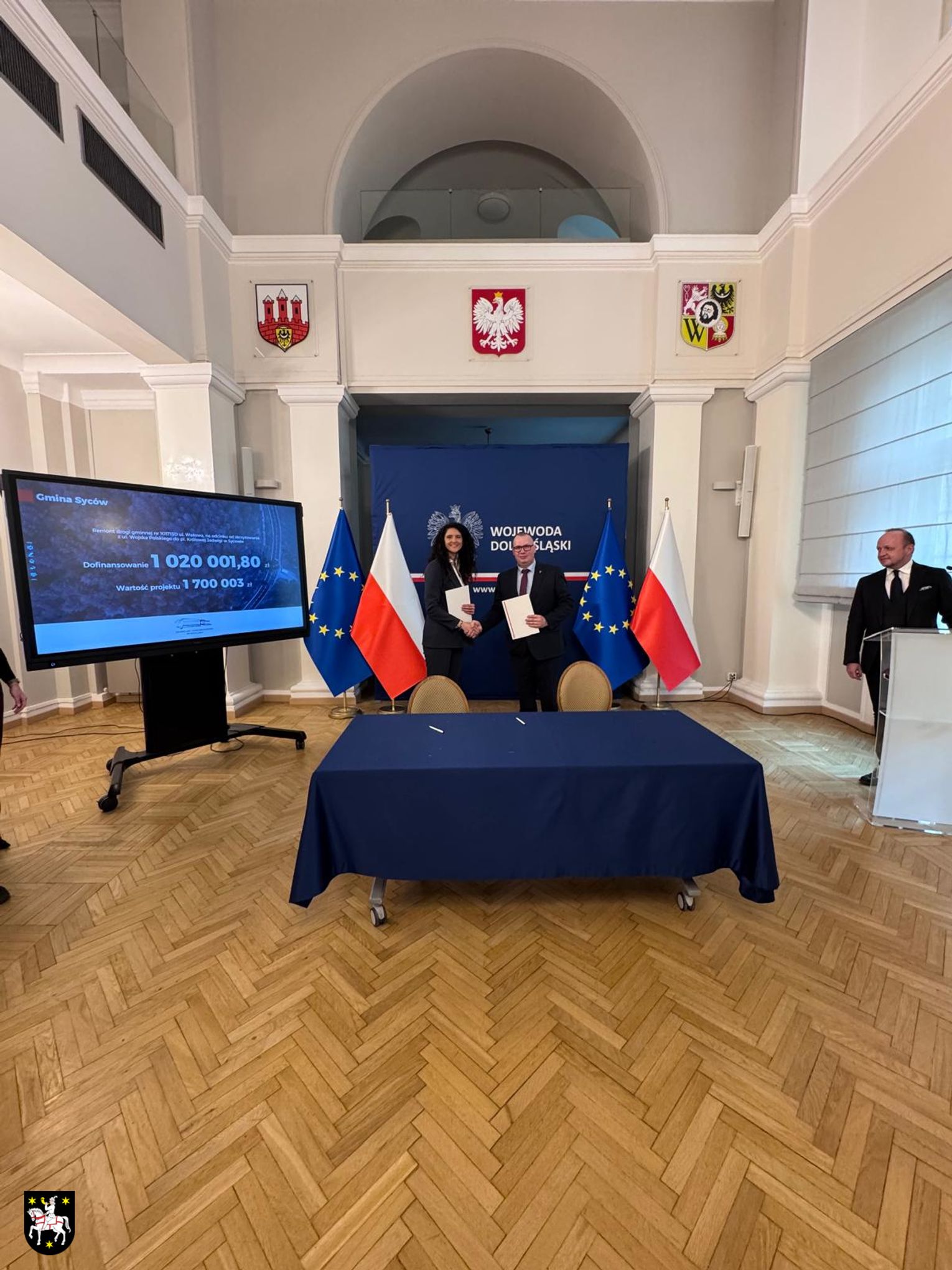 Dziś burmistrz Sycowa Łukasz Kuźmicz podpisał we Wrocławiu umowę z wojewodą dolnośląską Anną Żabską na dofinansowanie modernizacji ul. Wałowej ze środków Państwowego Funduszu Rozwoju Dróg.