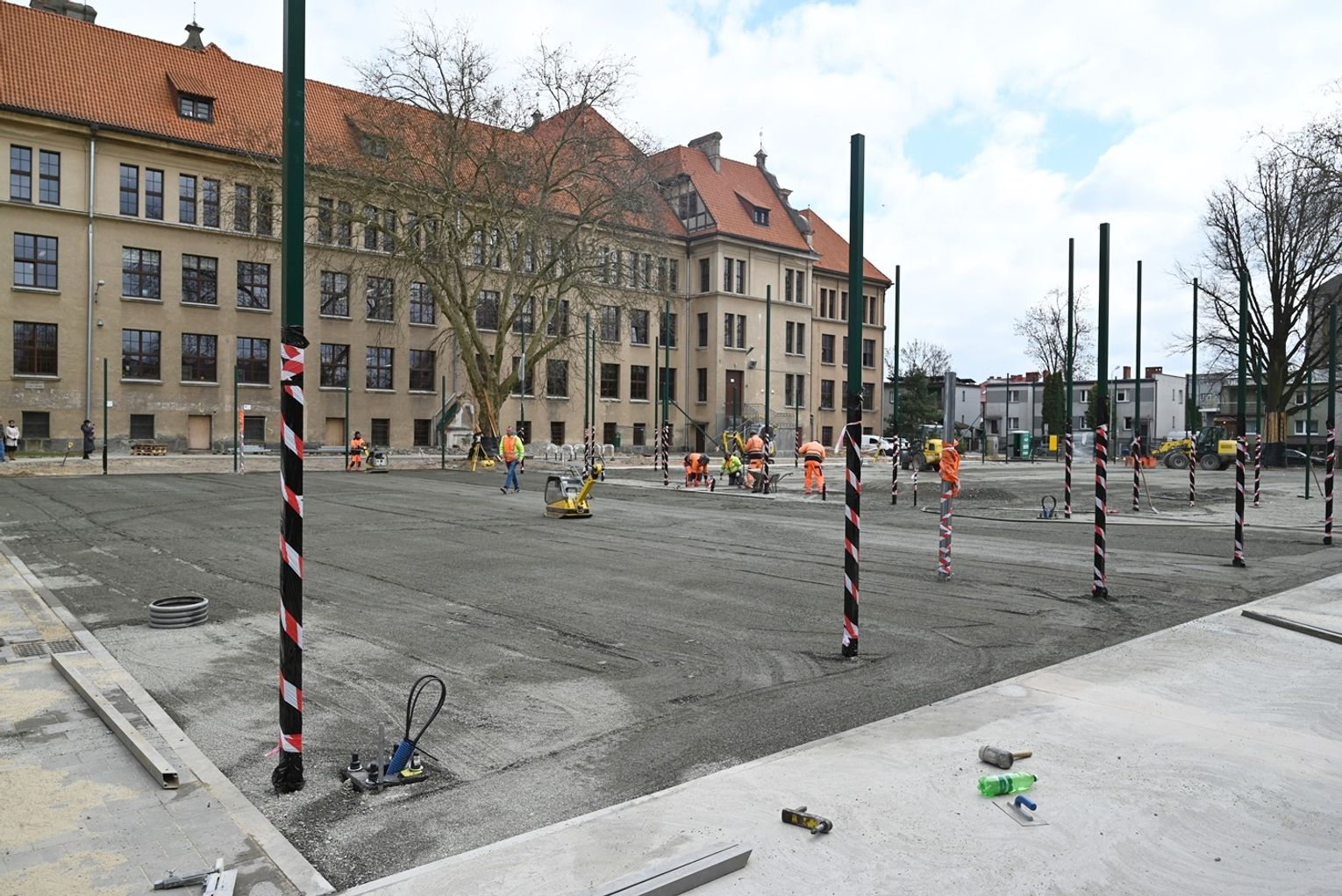 Prace przy przebudowie kompleksu sportowego przy Szkole Podstawowej nr 7 im. Jana Pawła II i I Liceum Ogólnokształcącym im. Juliusza Słowackiego idą pełną parą. To jedna z najważniejszych inwestycji sportowych ostatnich lat w powiecie oleśnickim.