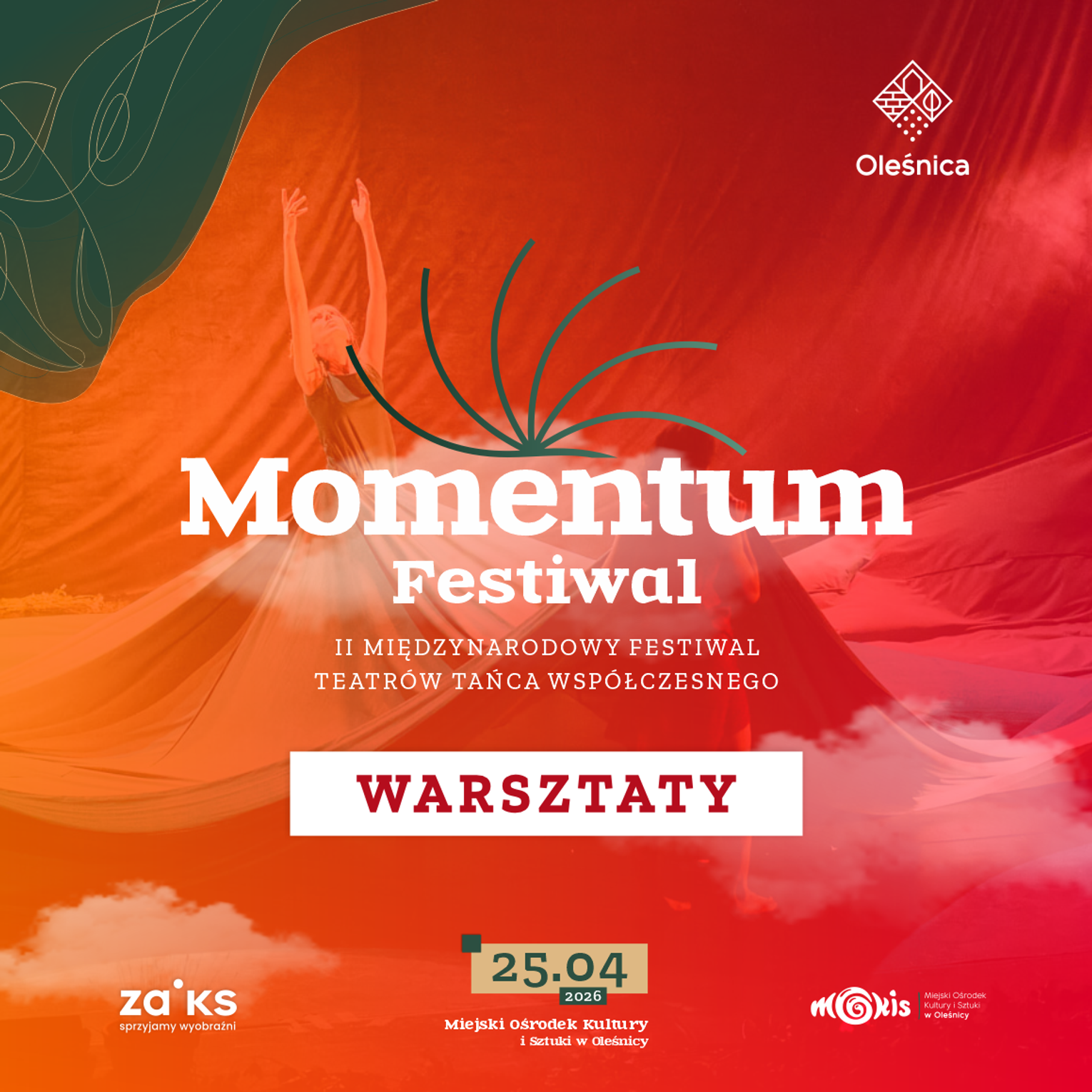 Miejski Ośrodek Kultury i Sztuki w Oleśnicy zaprasza młodzież i dorosłych na bezpłatne warsztaty tańca współczesnego, które odbędą się w ramach II Międzynarodowego Festiwalu Teatrów Tańca MOMENTUM 2026.