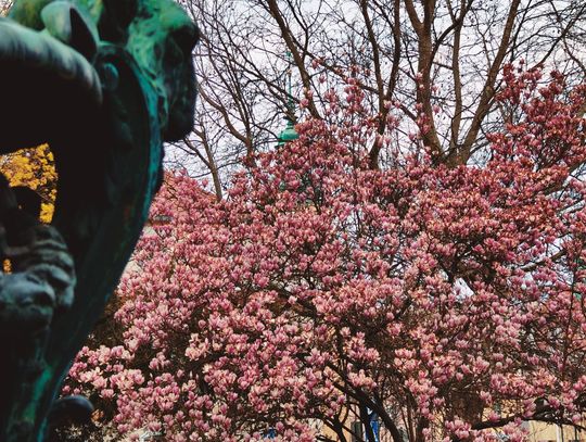 Szczególną uwagę przyciąga właśnie teraz magnolia, która rozkwitła w pełnej krasie. To idealny moment, by zatrzymać się na chwilę, zrobić zdjęcie i nacieszyć oczy jej pięknem.