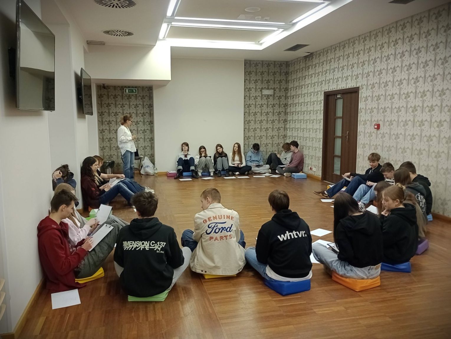 Tematem przewodnim warsztatu były relacje i ich rola w odczuwaniu poziomu szczęścia w życiu. Uczestnicy na osiach czasu swoich nastoletnich żyć zaznaczali punkty, w których doświadczyli czegoś pozytywnego, co wyryło się w ich pamięci jako bardzo ważne wspomnienie.